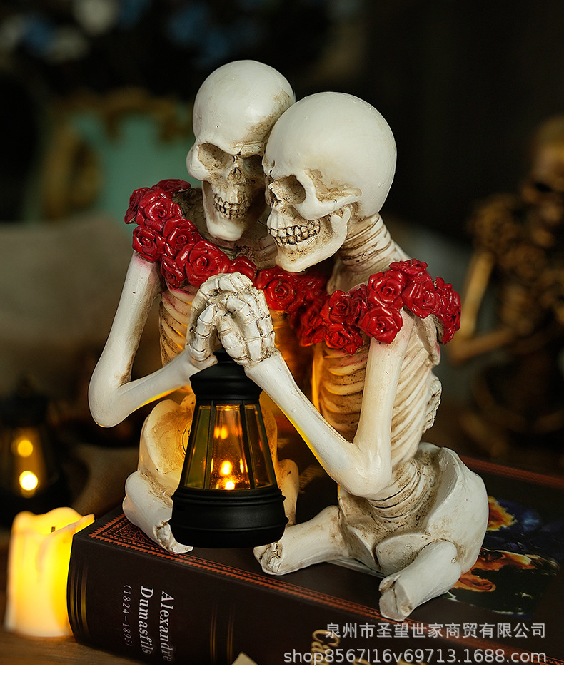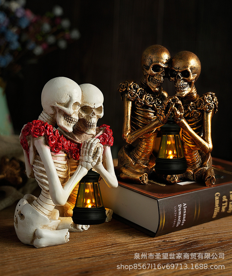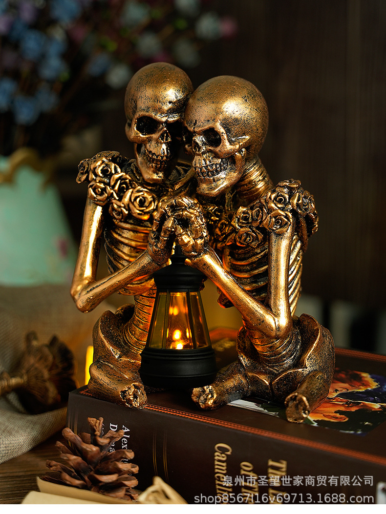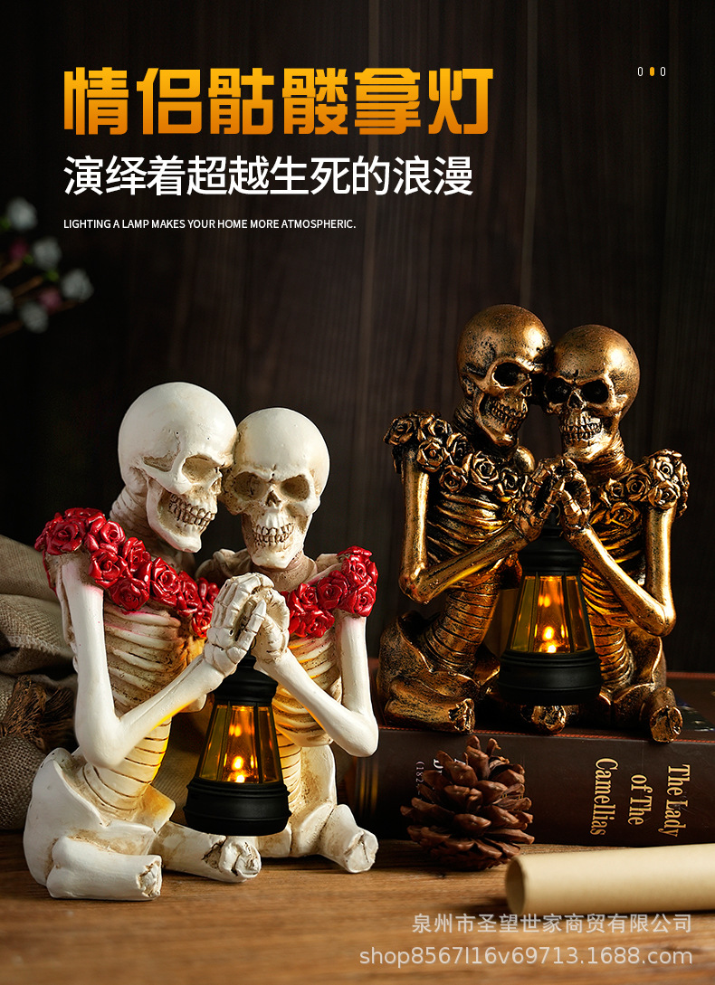 万圣节创意复古哥特式骷髅拿灯浪漫情侣人物场景爆款布置道具装饰