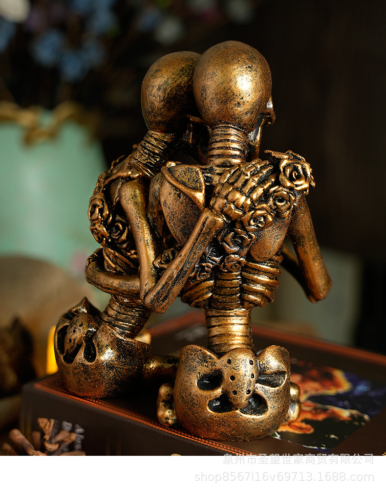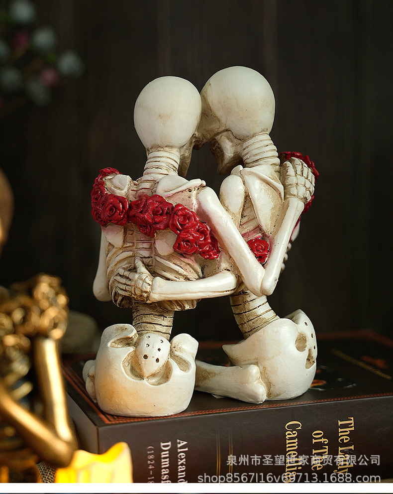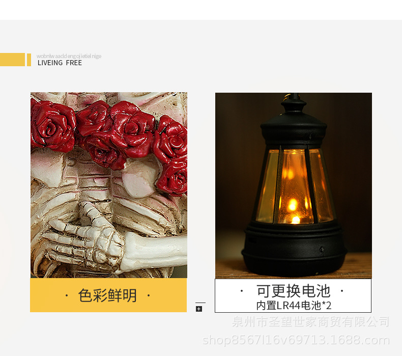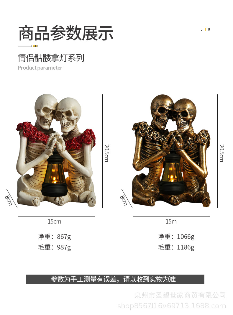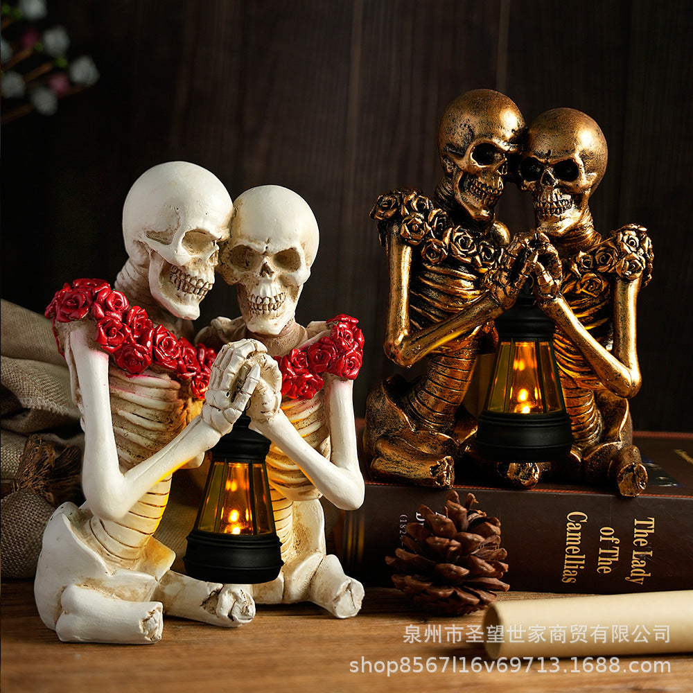万圣节创意复古哥特式骷髅拿灯浪漫情侣人物场景爆款布置道具装饰