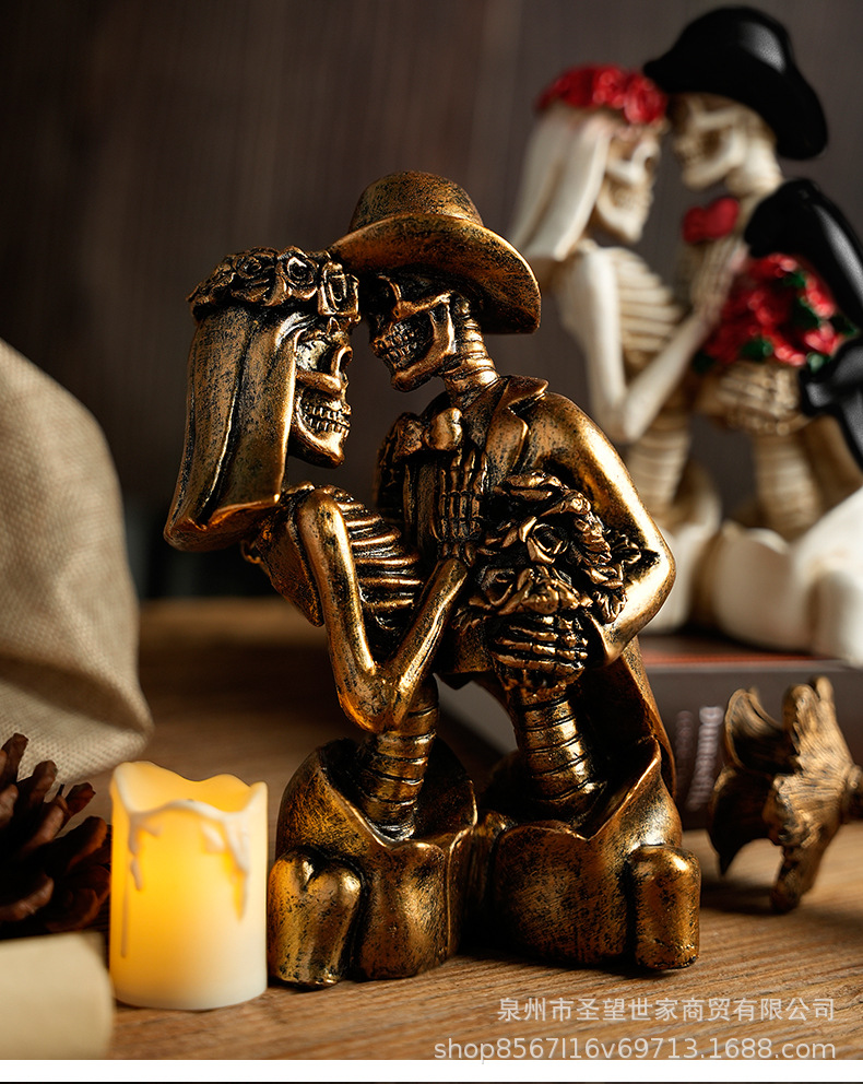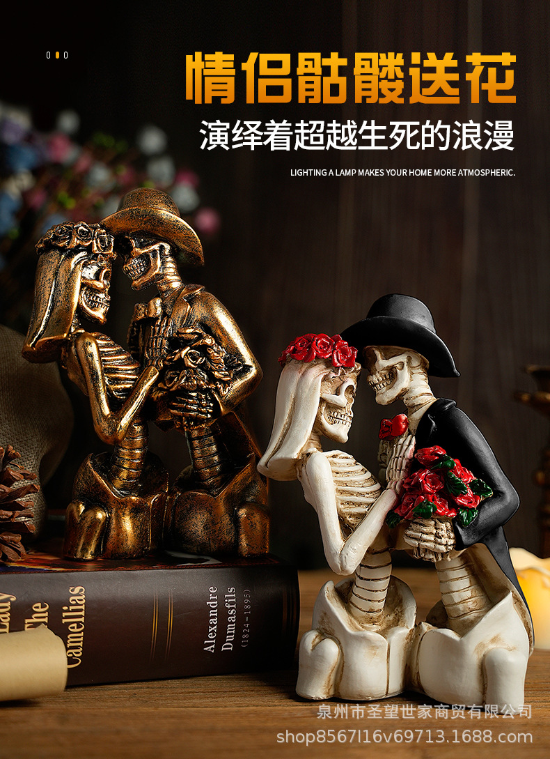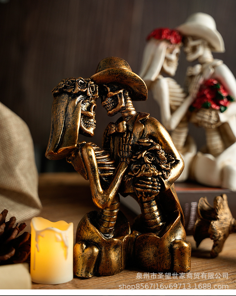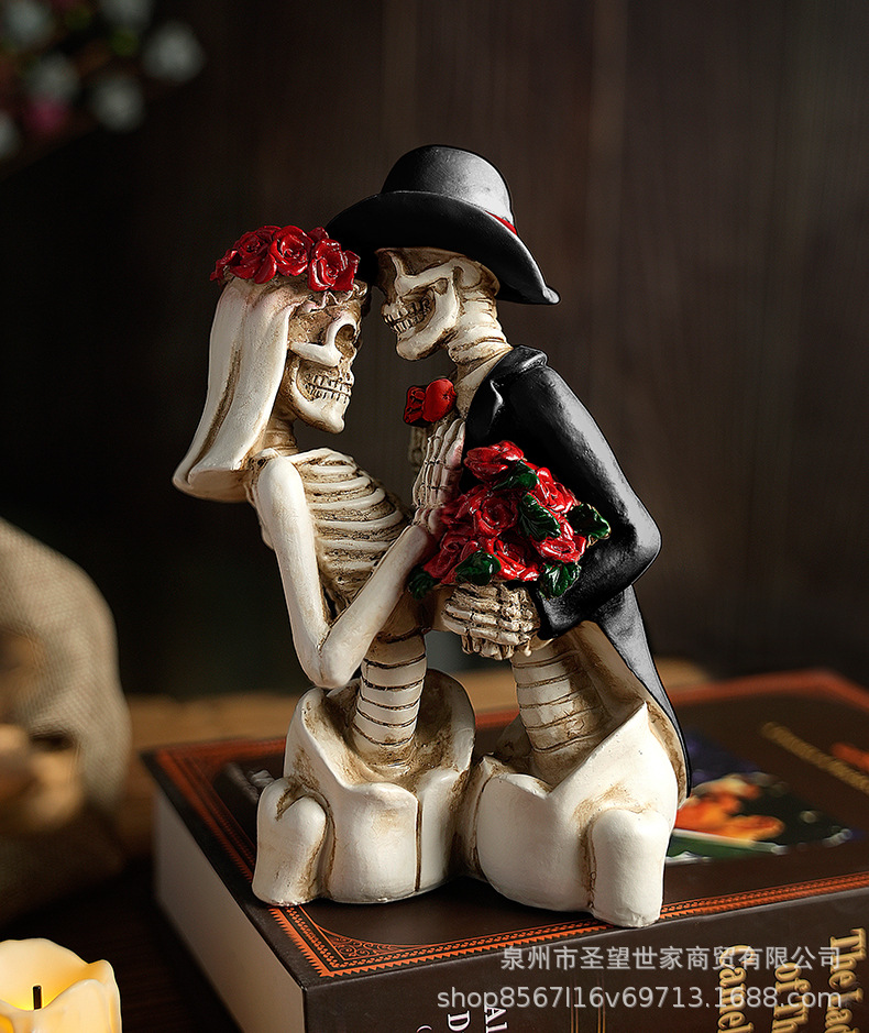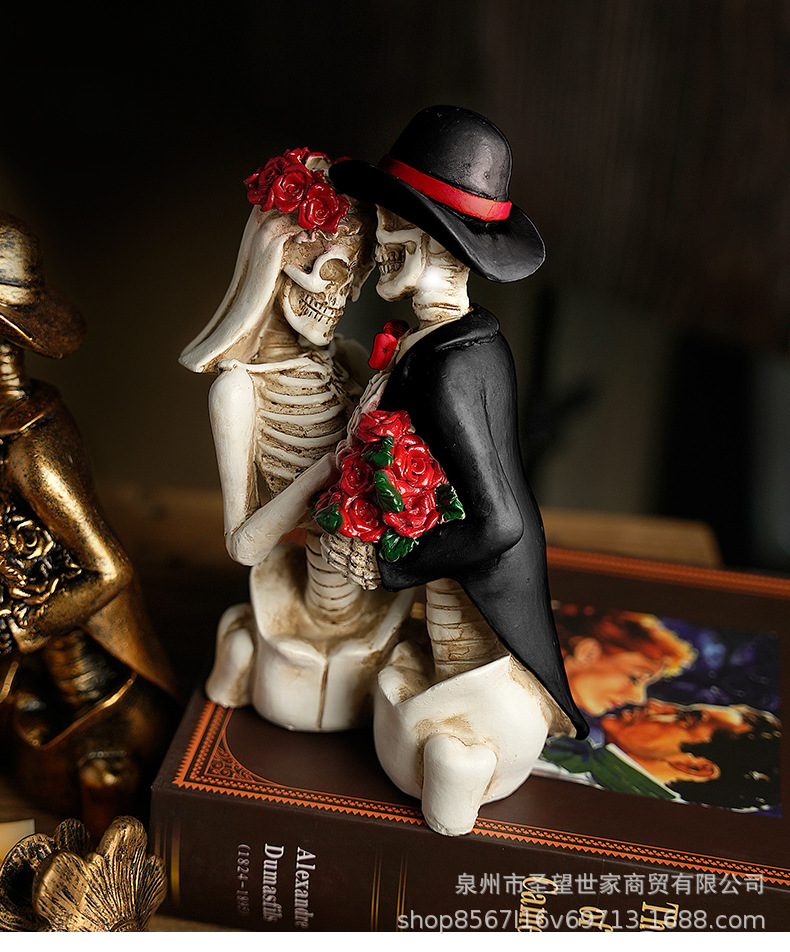 万圣节创意复古哥特式骷髅送花浪漫情侣人物场景爆款布置道具装饰