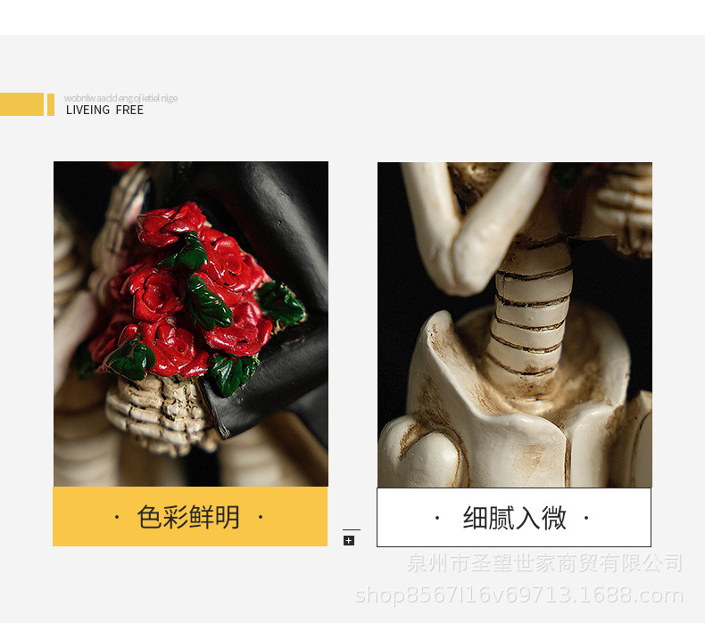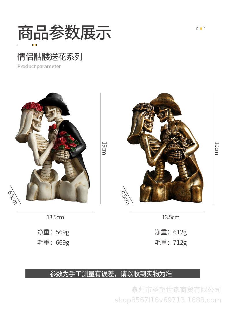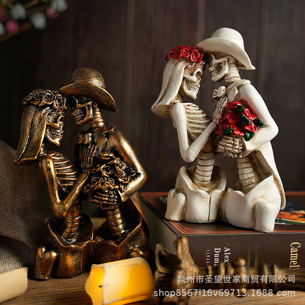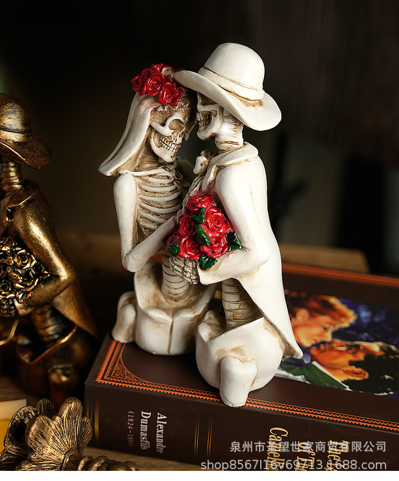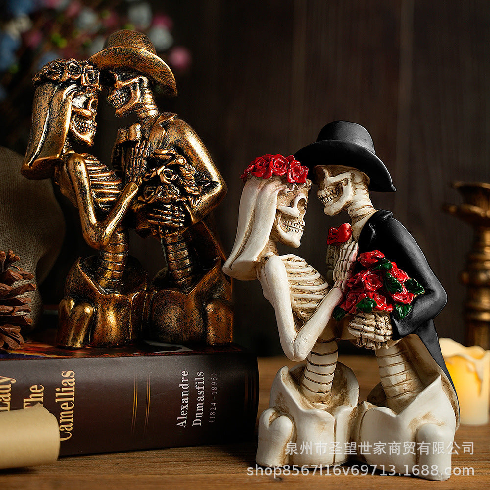 万圣节创意复古哥特式骷髅送花浪漫情侣人物场景爆款布置道具装饰