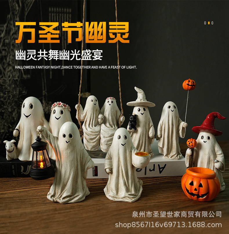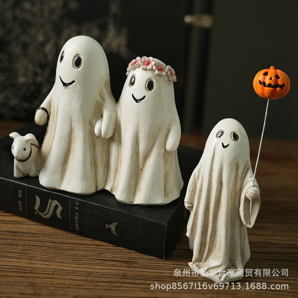万圣节幽灵遛狗摆件创意家居场景布置活动道具装饰摆件骷髅派对