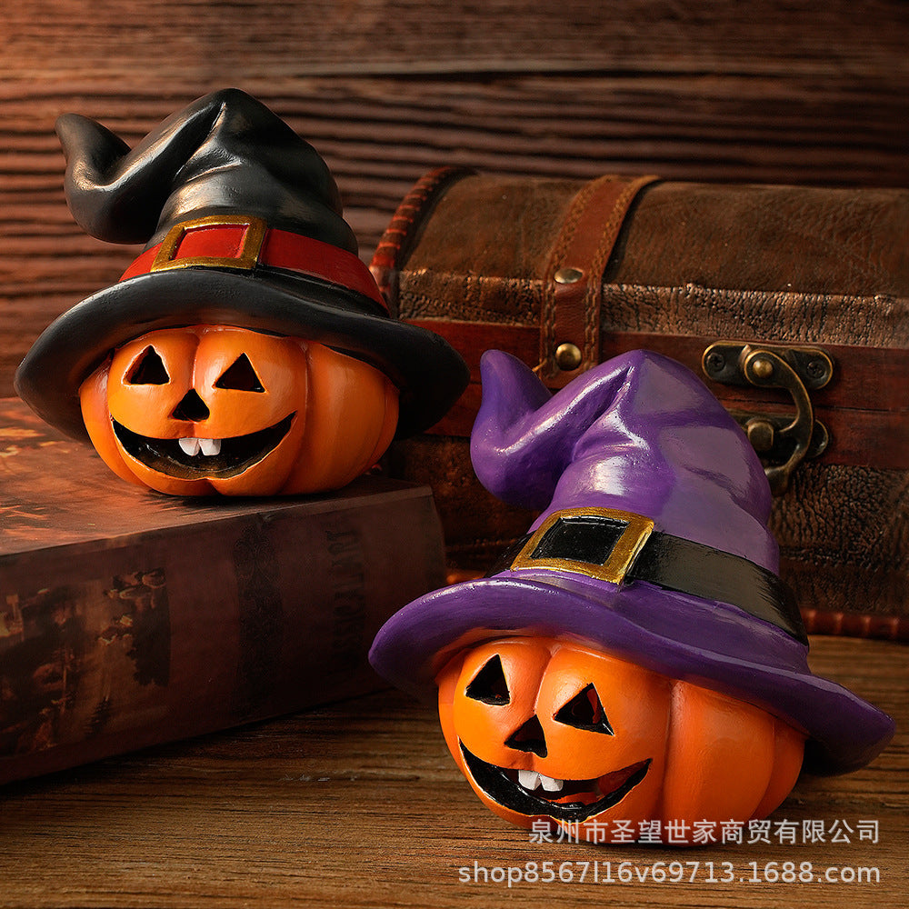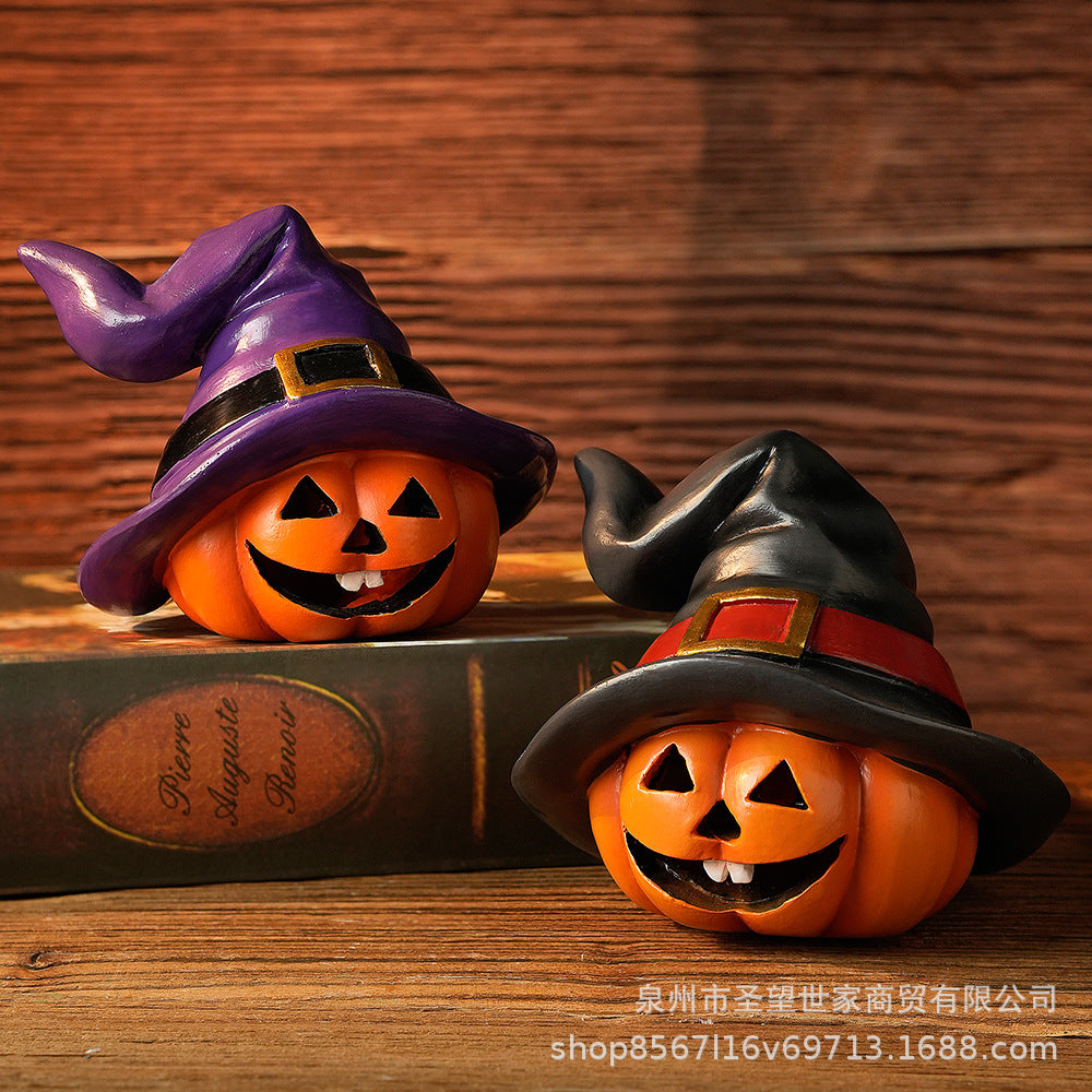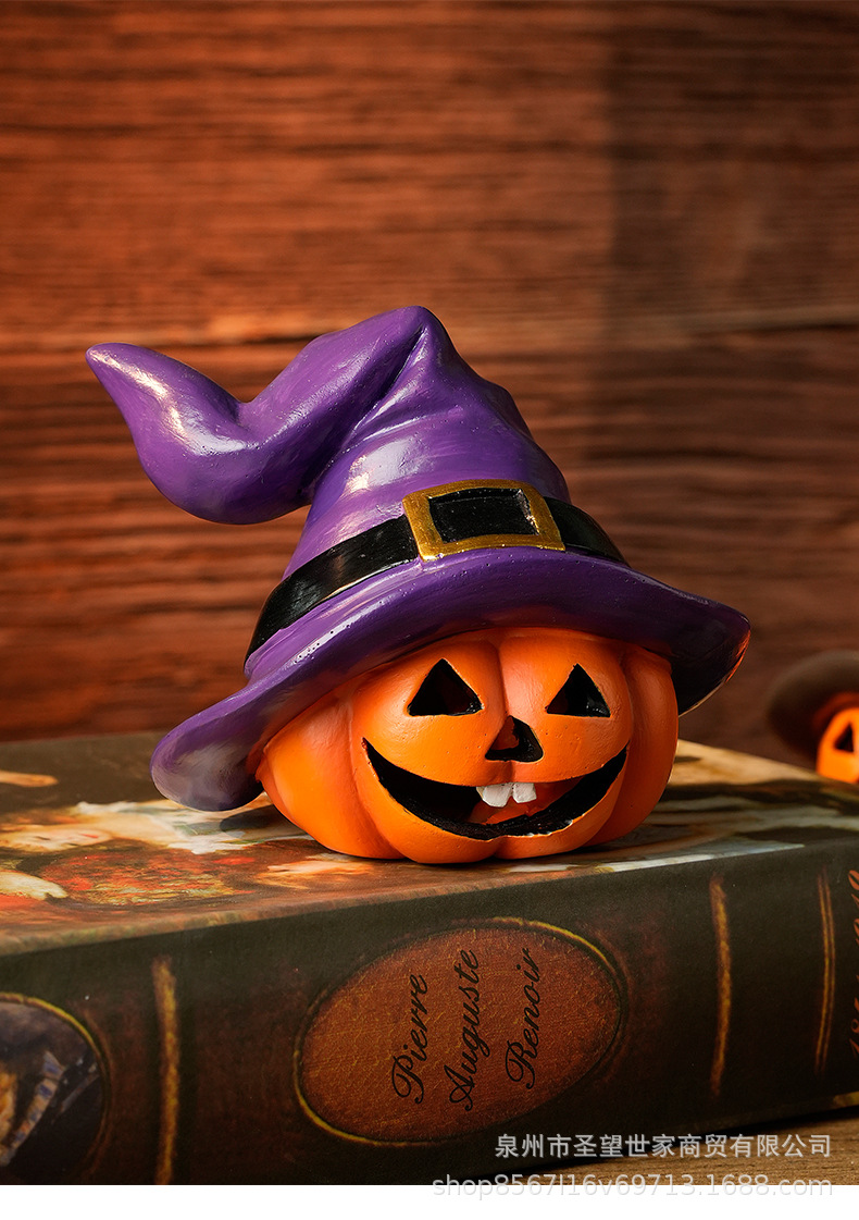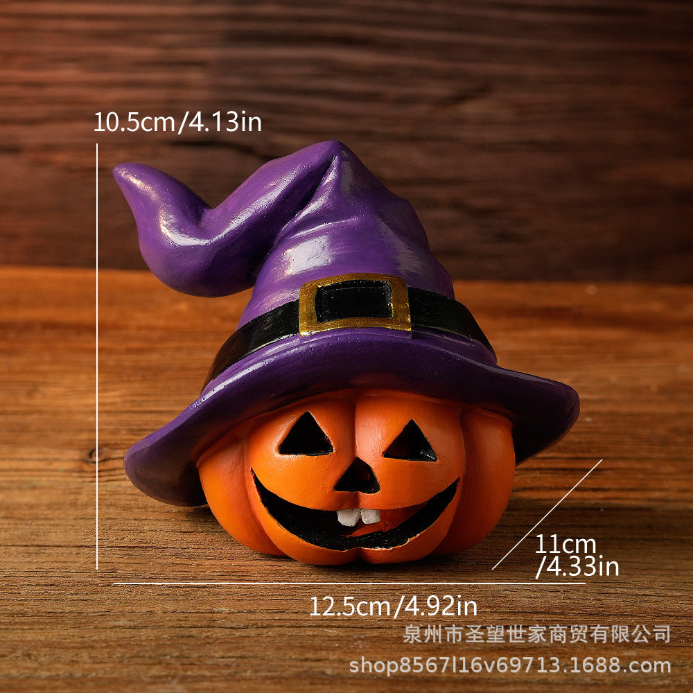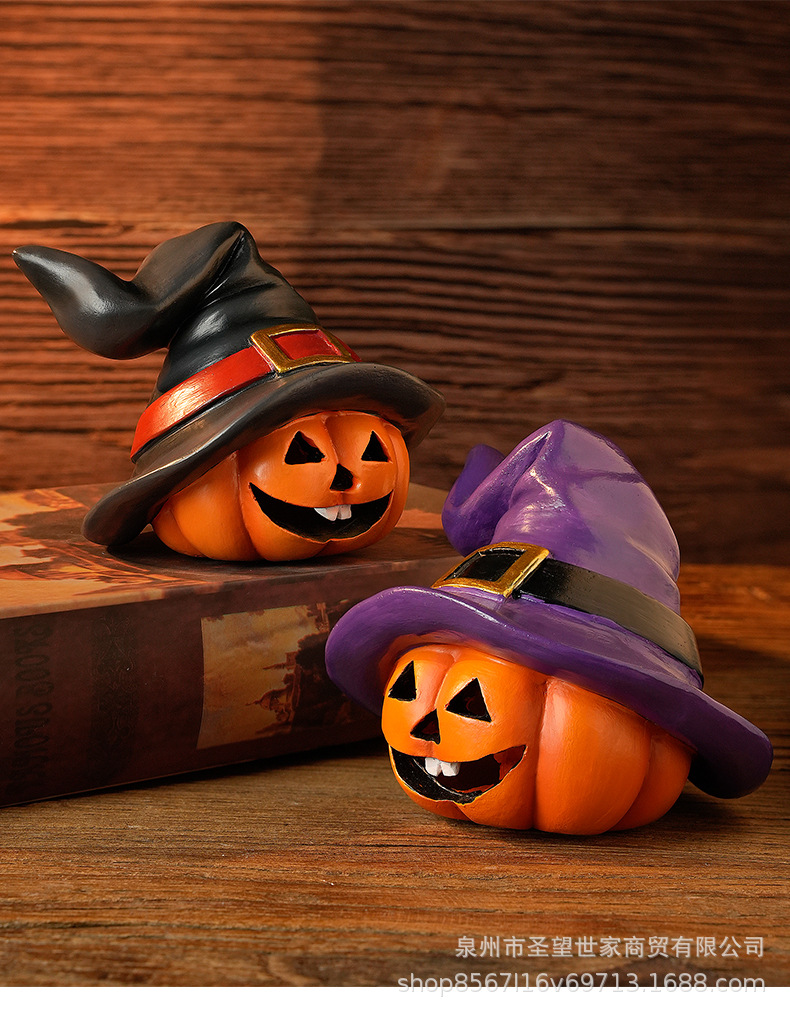 万圣节跨境南瓜戴巫婆帽圣诞节日鬼节派对拍摄道具装饰树脂小摆件