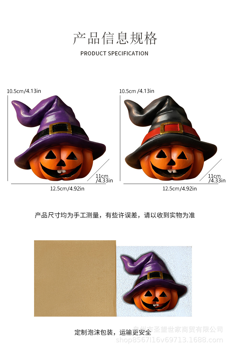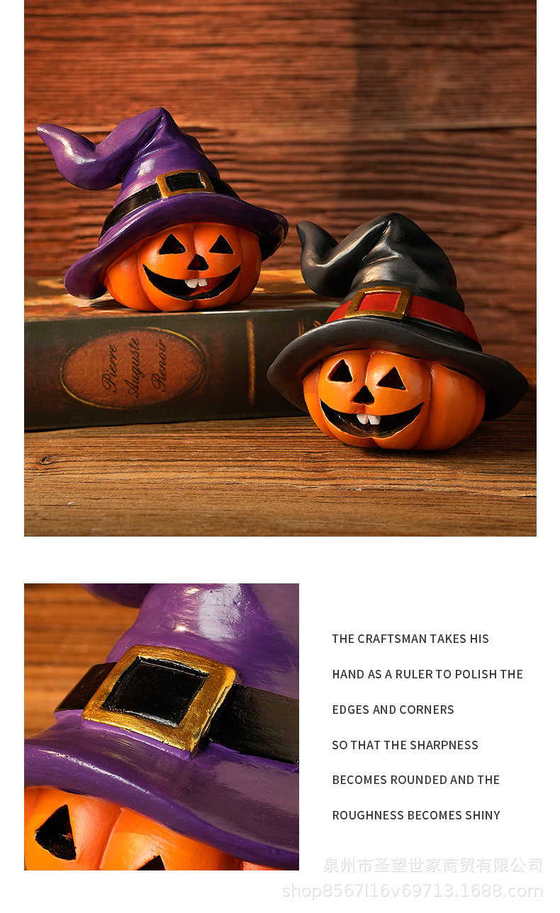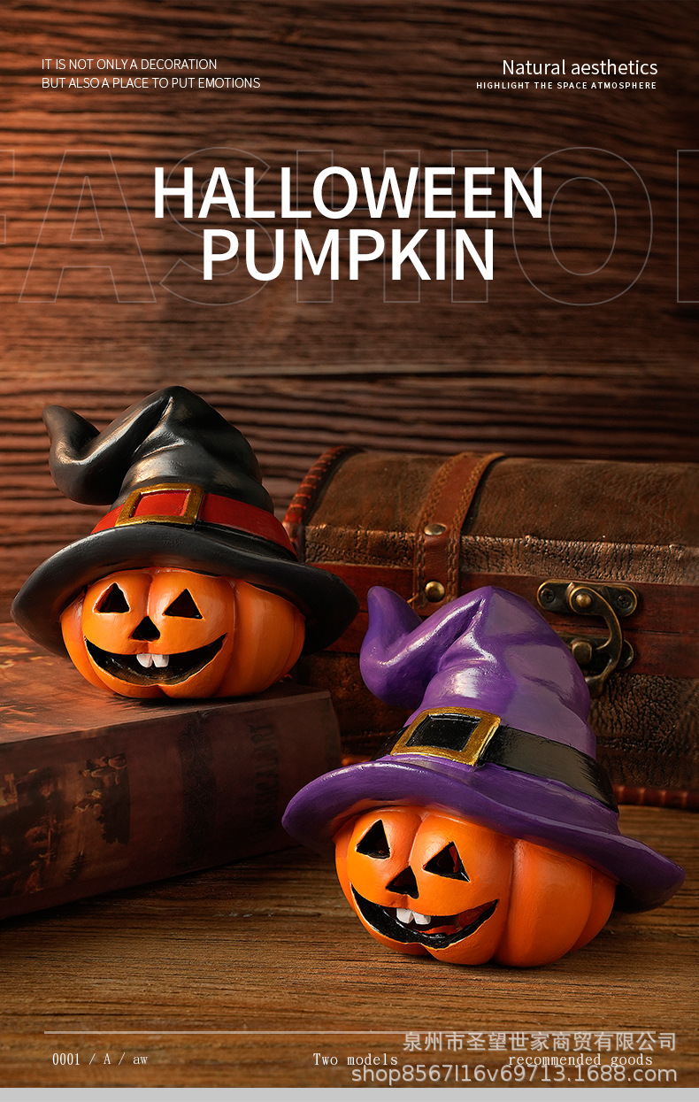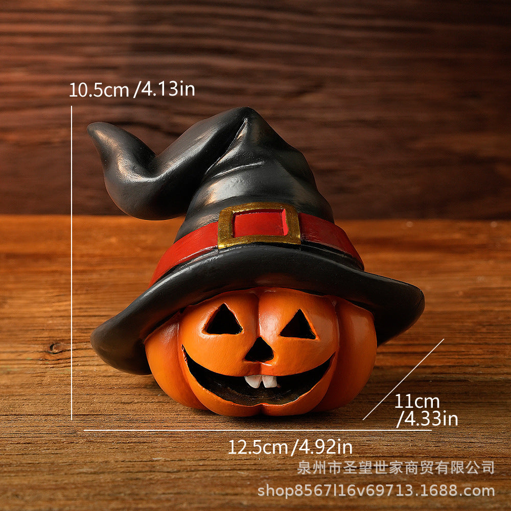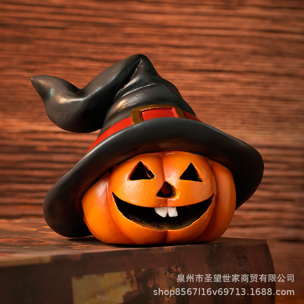 万圣节跨境南瓜戴巫婆帽圣诞节日鬼节派对拍摄道具装饰树脂小摆件