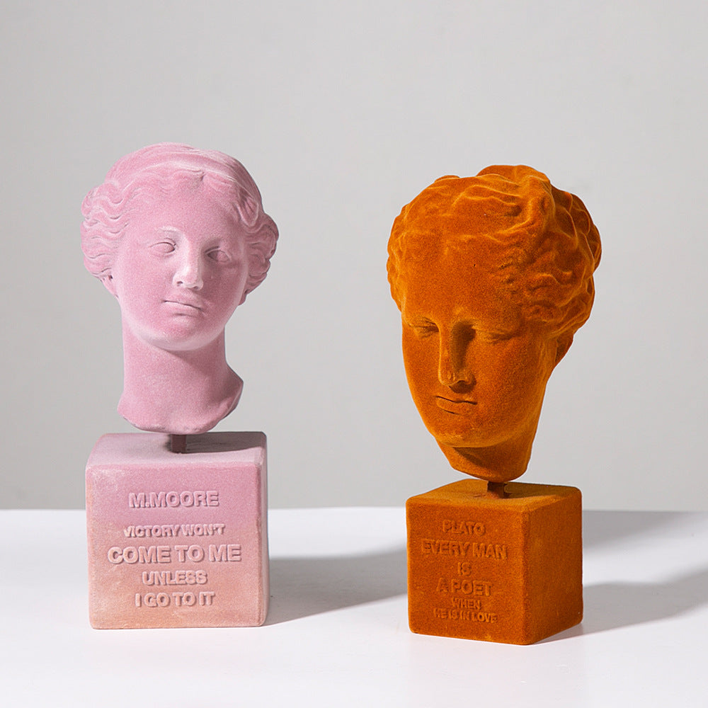 北欧简约彩色植绒海吉娅人像树脂工艺摆件书房客厅家居装饰摆件