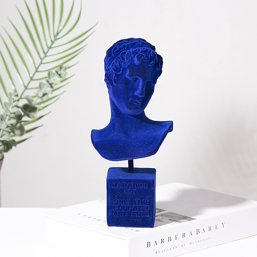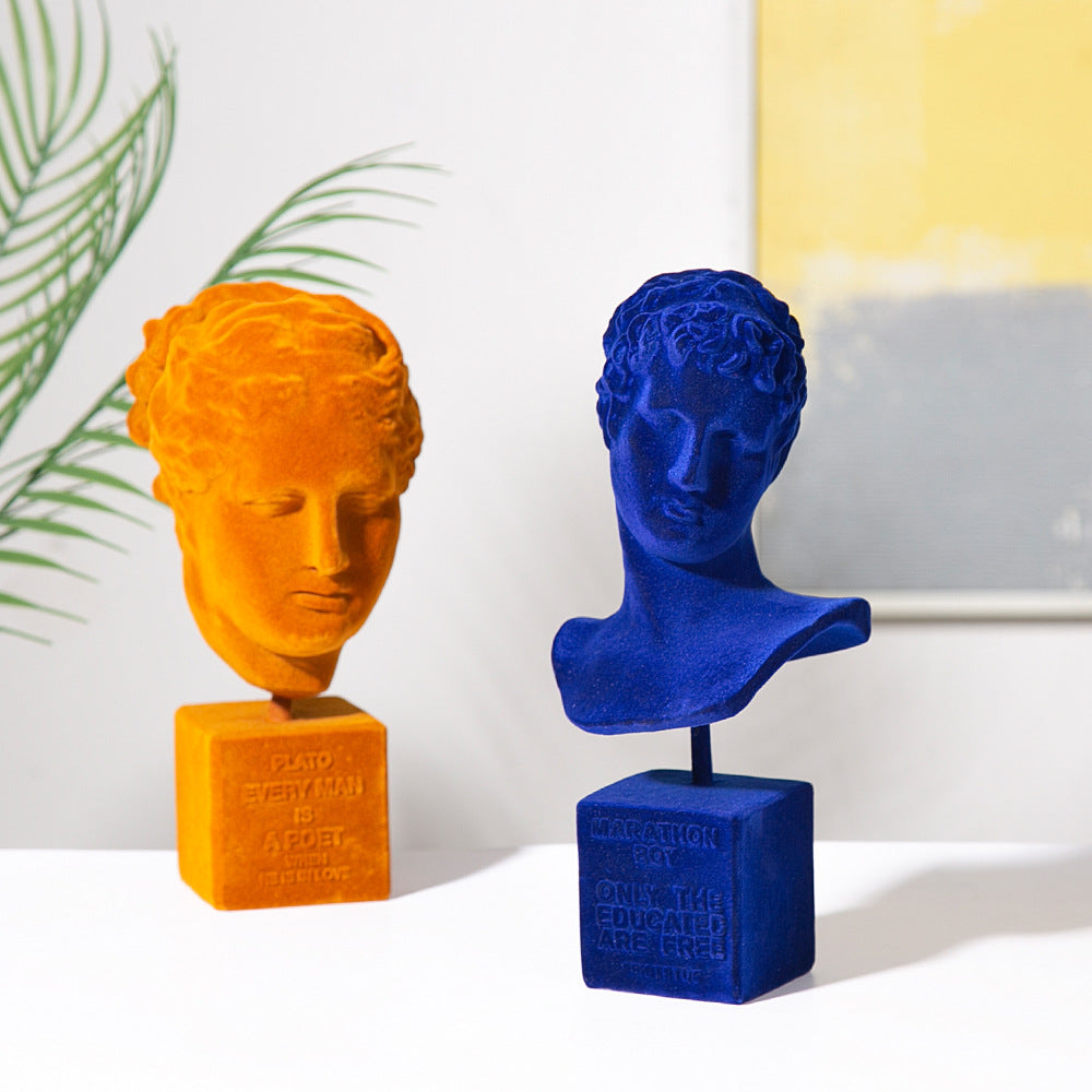 北欧简约彩色植绒赫尔墨斯人像树脂工艺摆件书房客厅家居装饰摆件