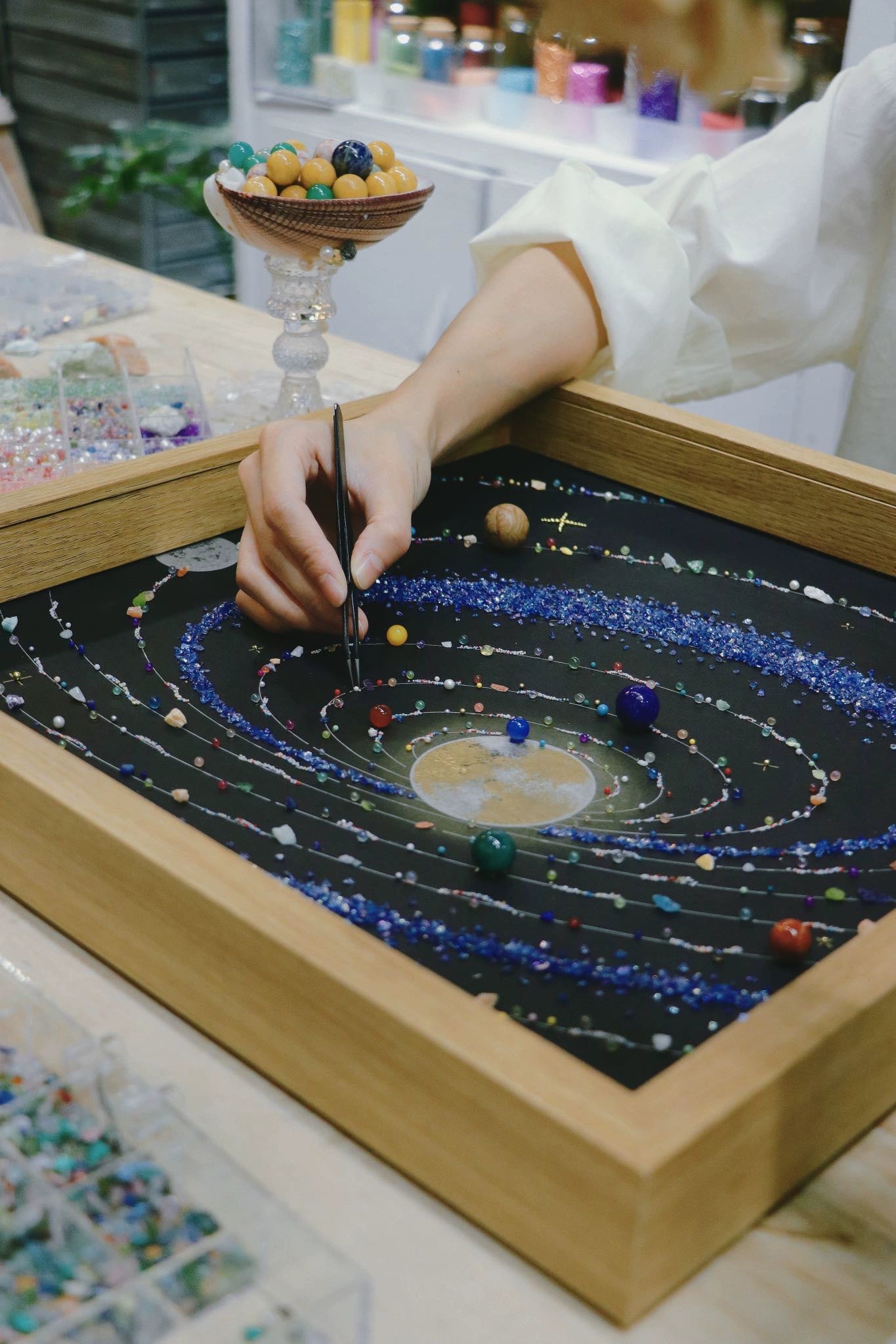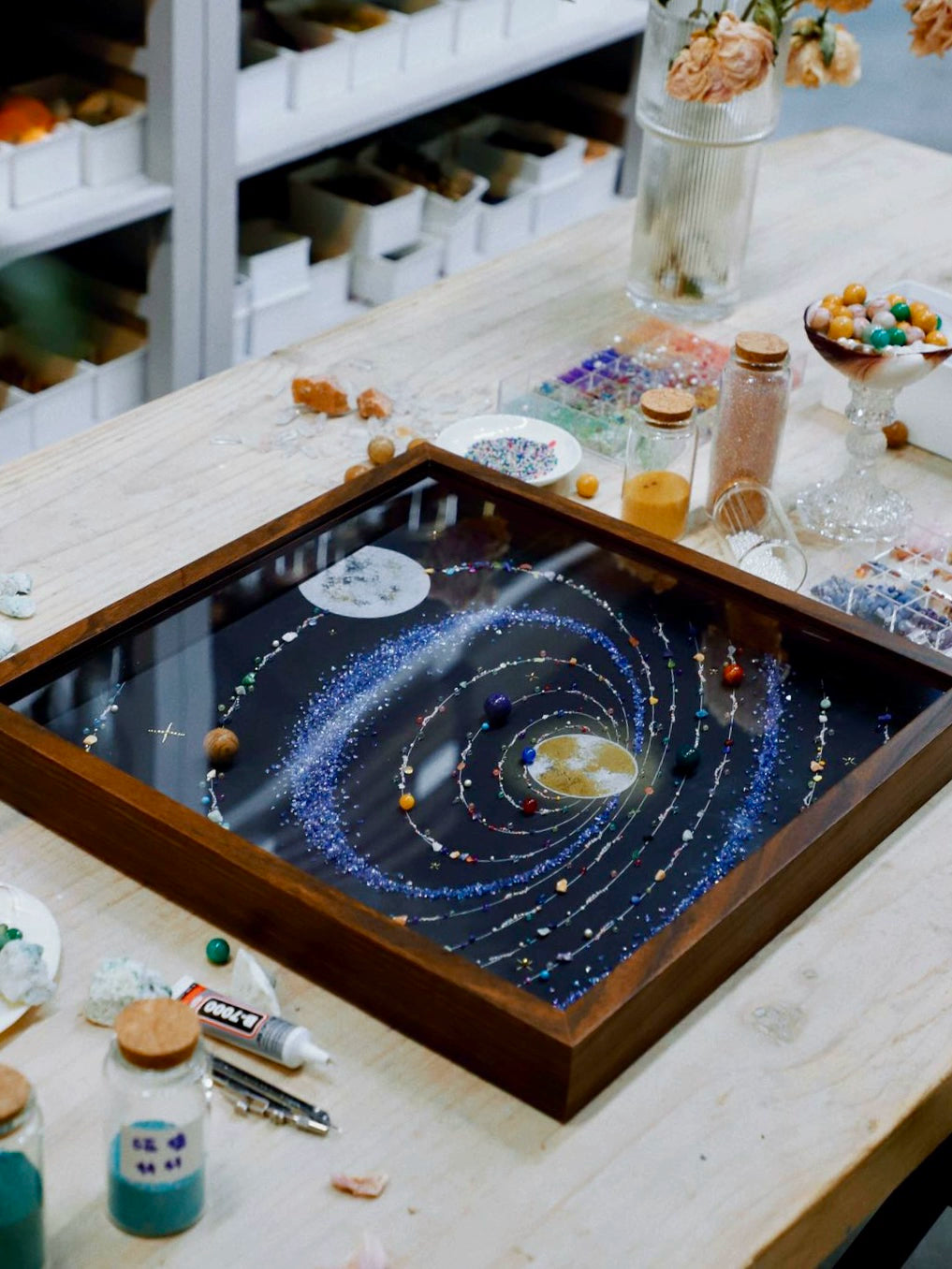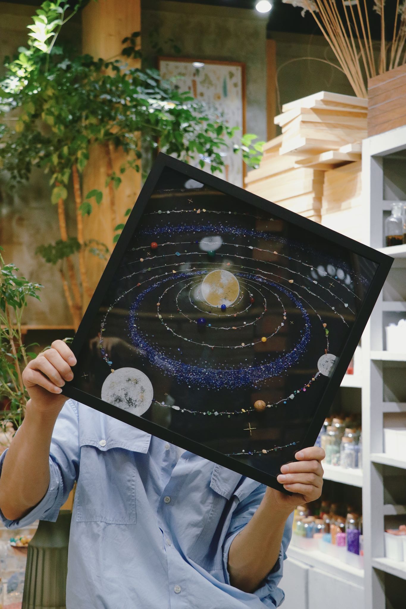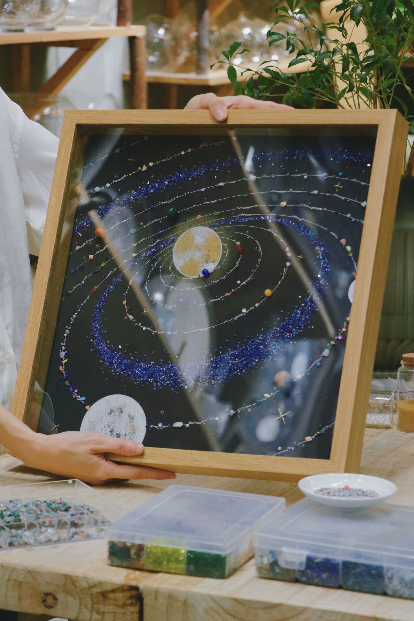升级款胡桃木含pe有机玻璃防尘罩.宇宙太空蓝色太阳系.礼物.手工