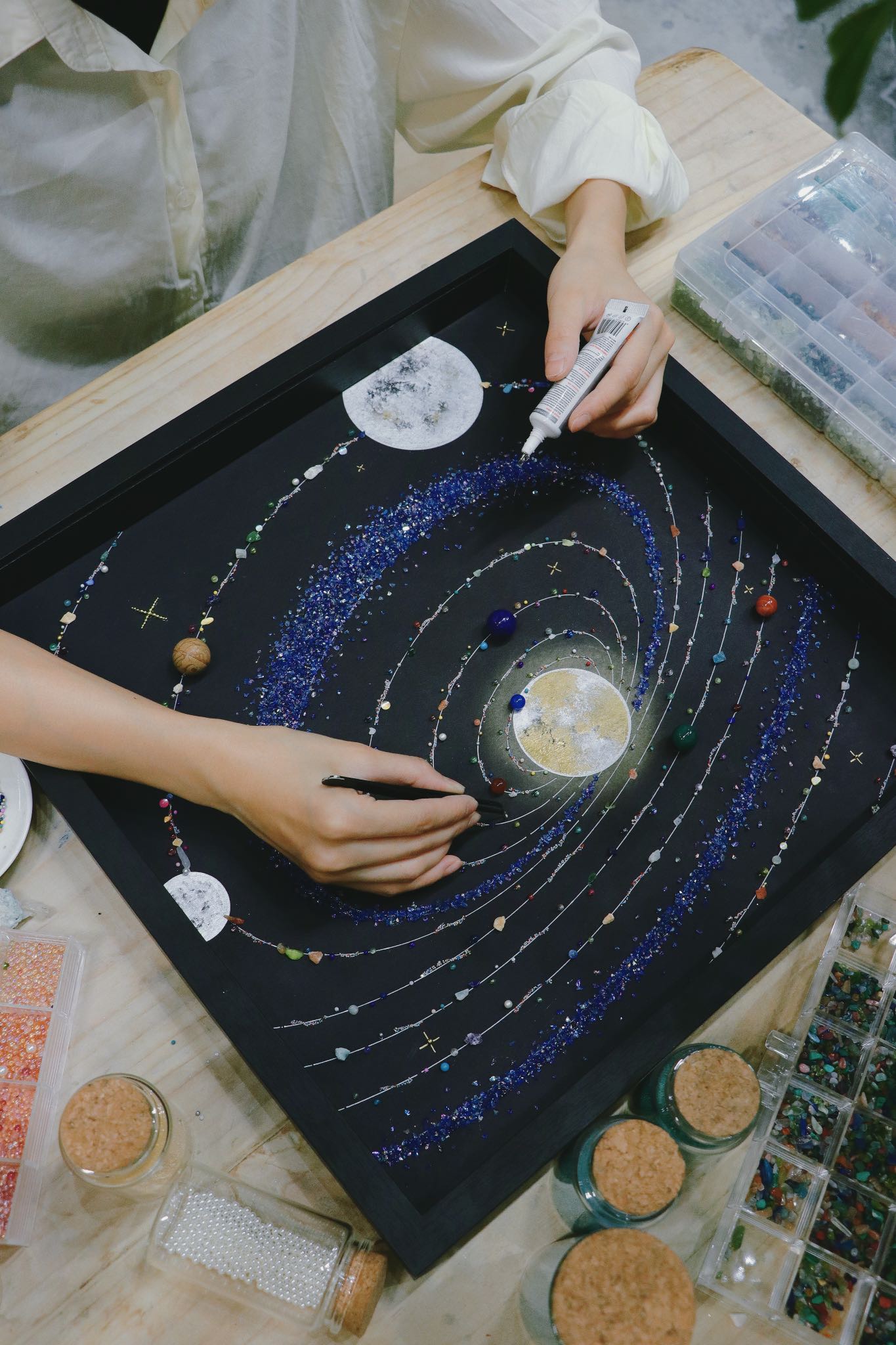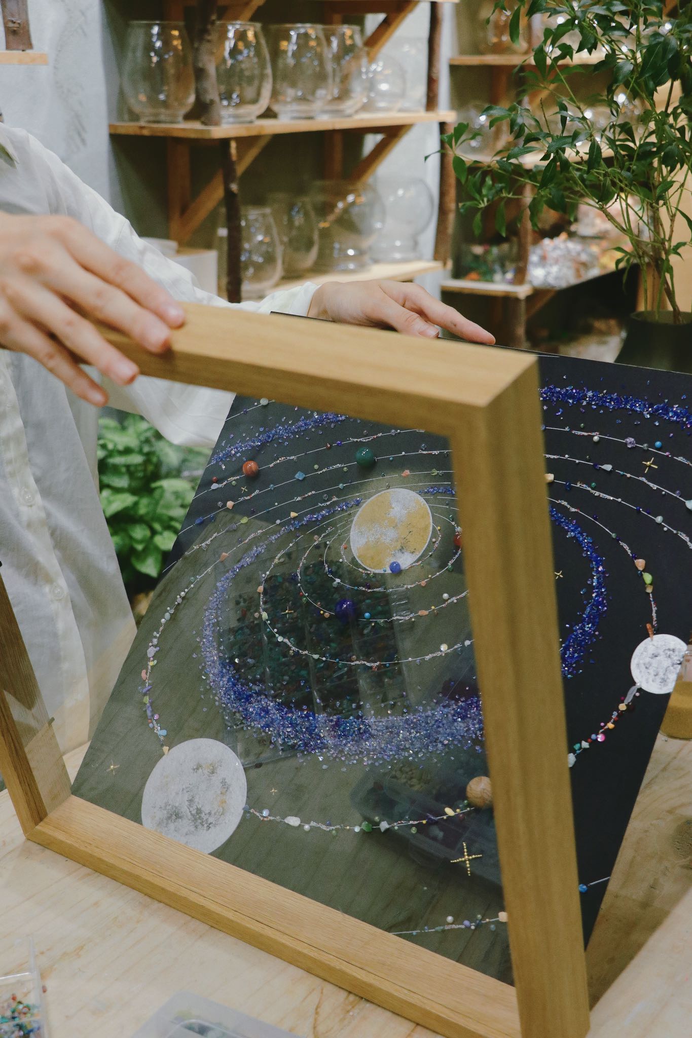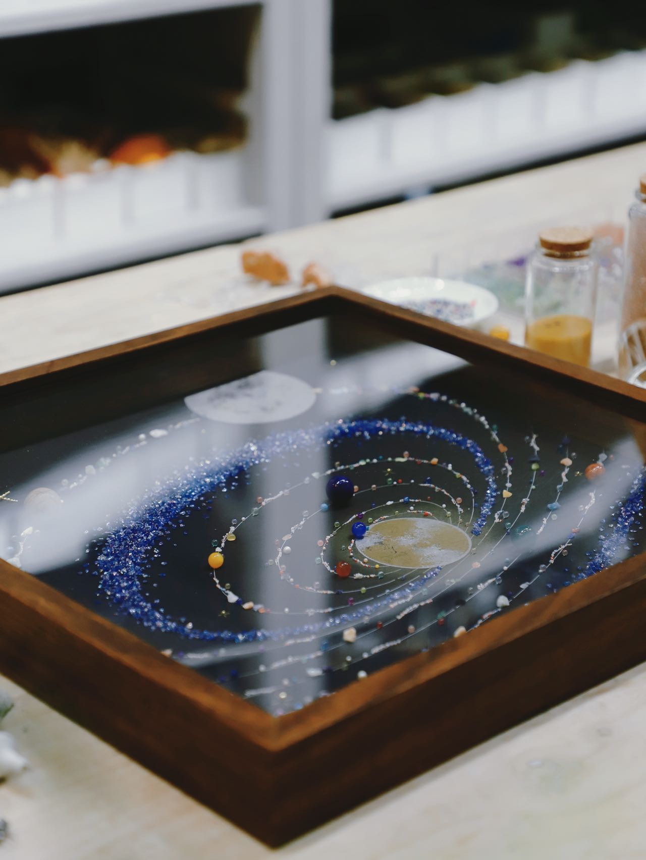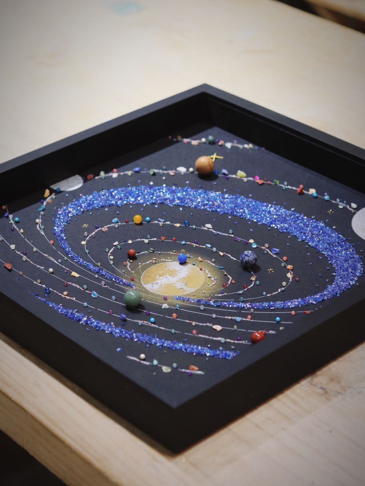 升级款胡桃木含pe有机玻璃防尘罩.宇宙太空蓝色太阳系.礼物.手工
