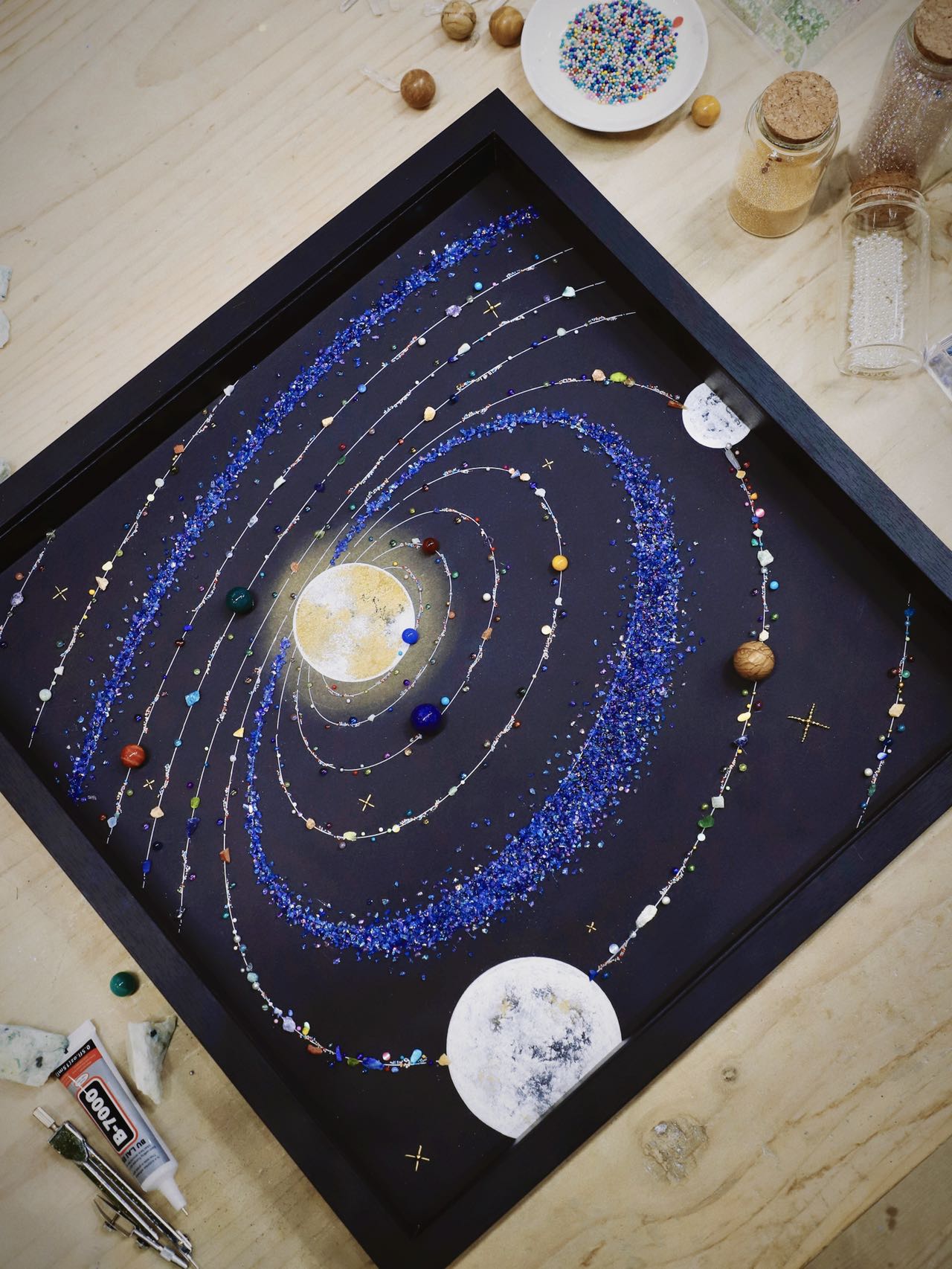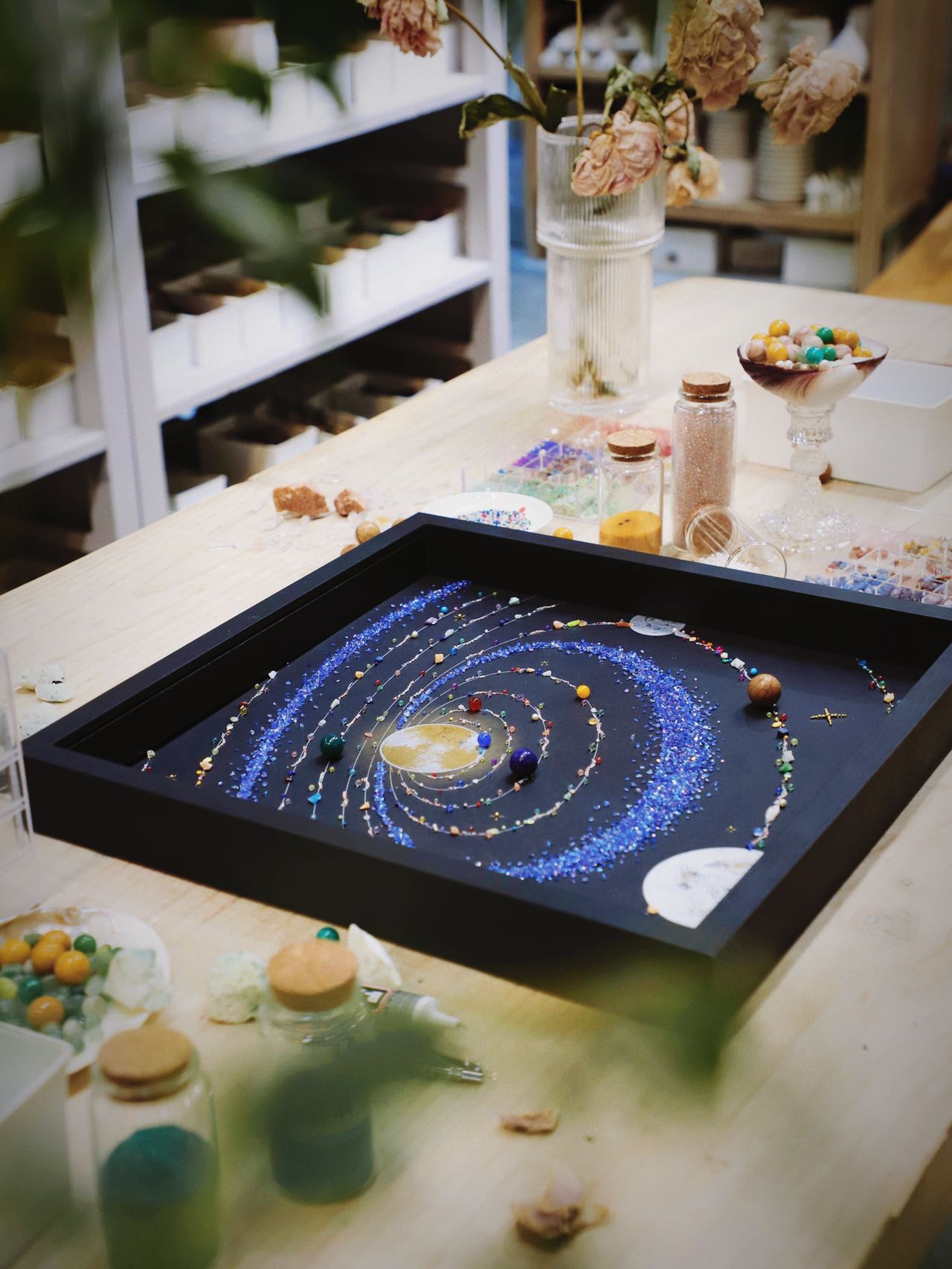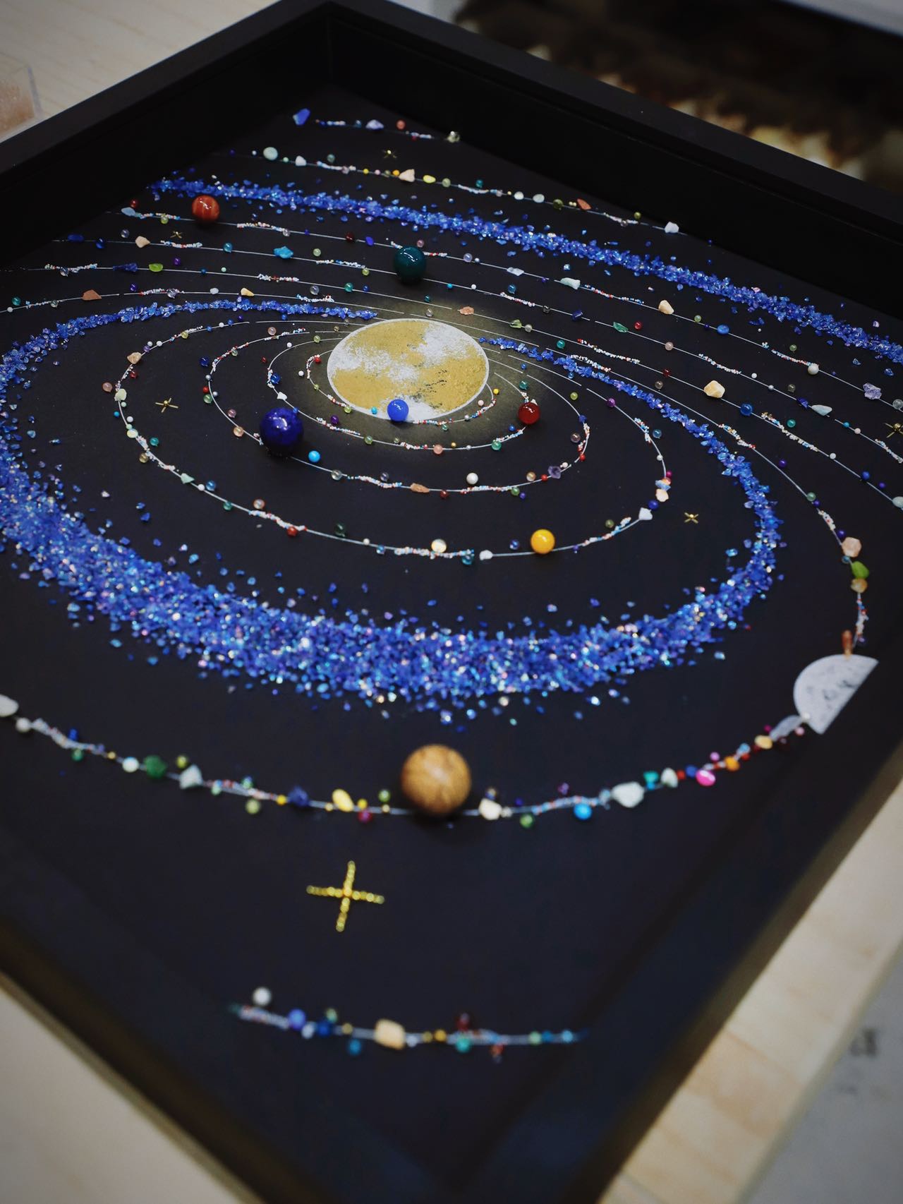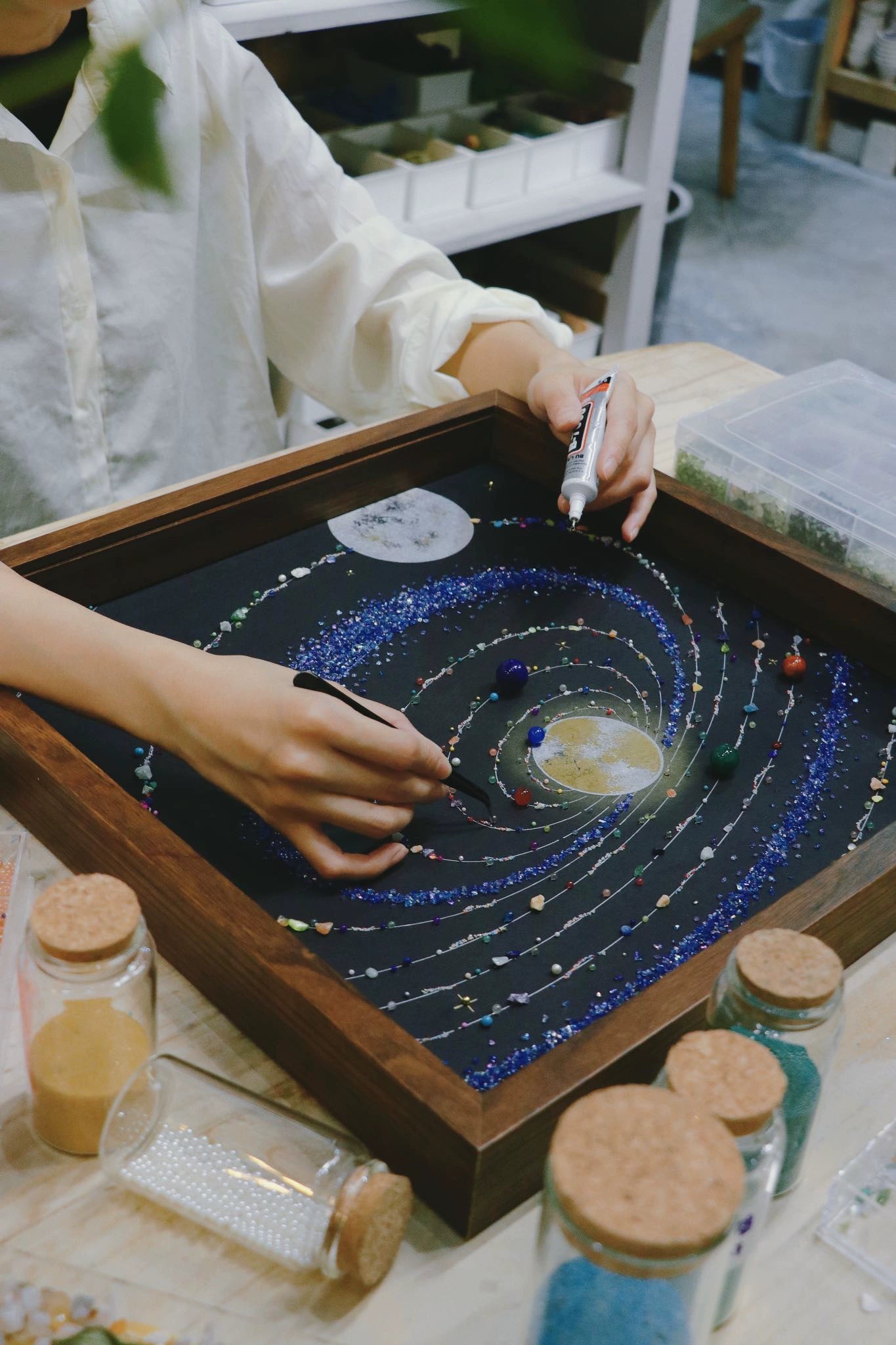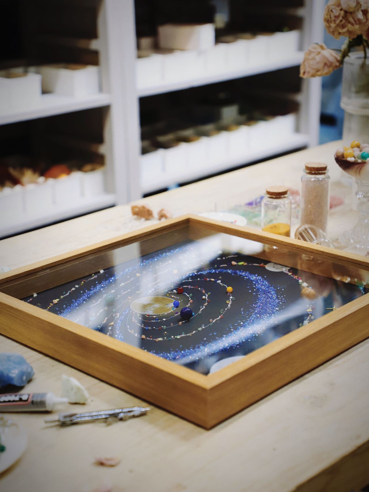 升级款胡桃木含pe有机玻璃防尘罩.宇宙太空蓝色太阳系.礼物.手工
