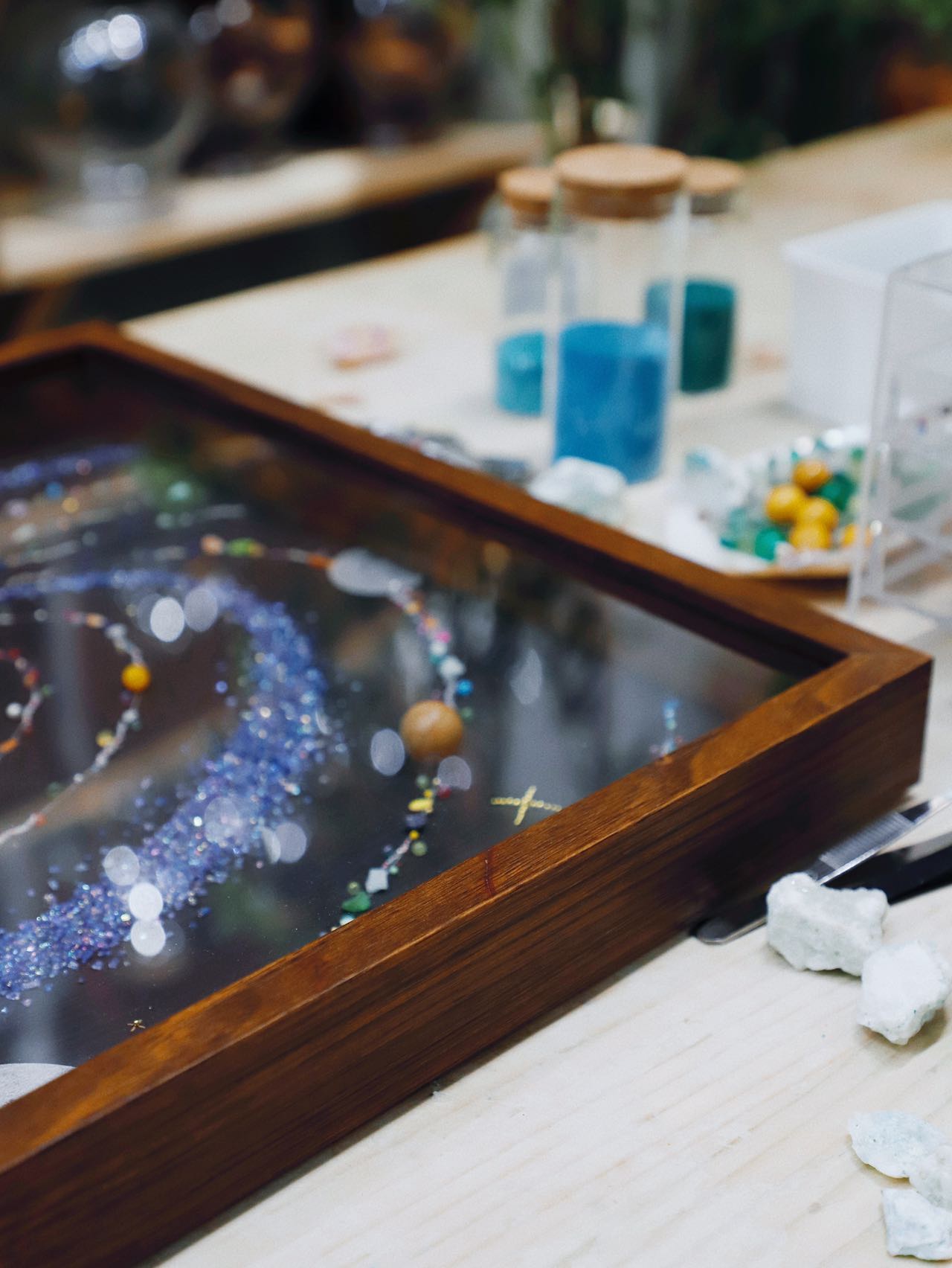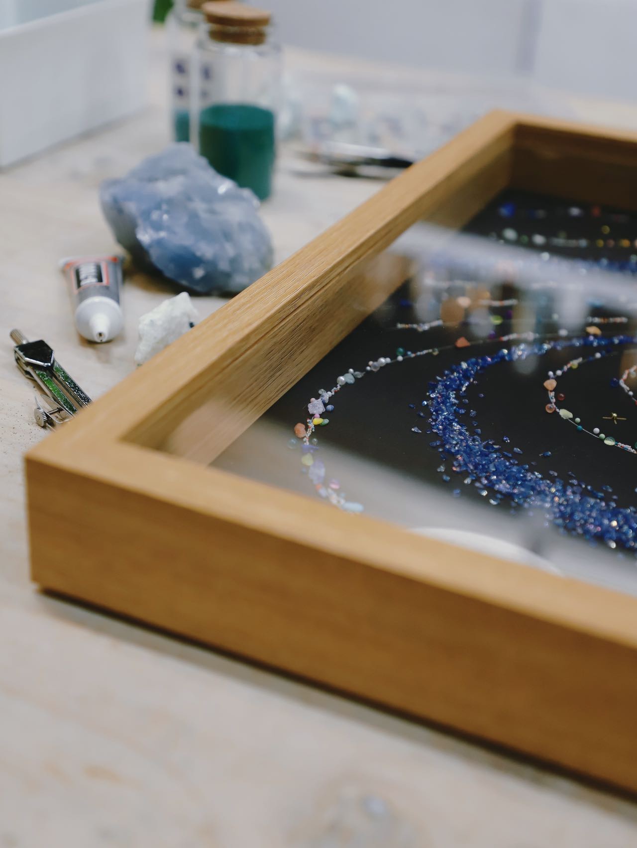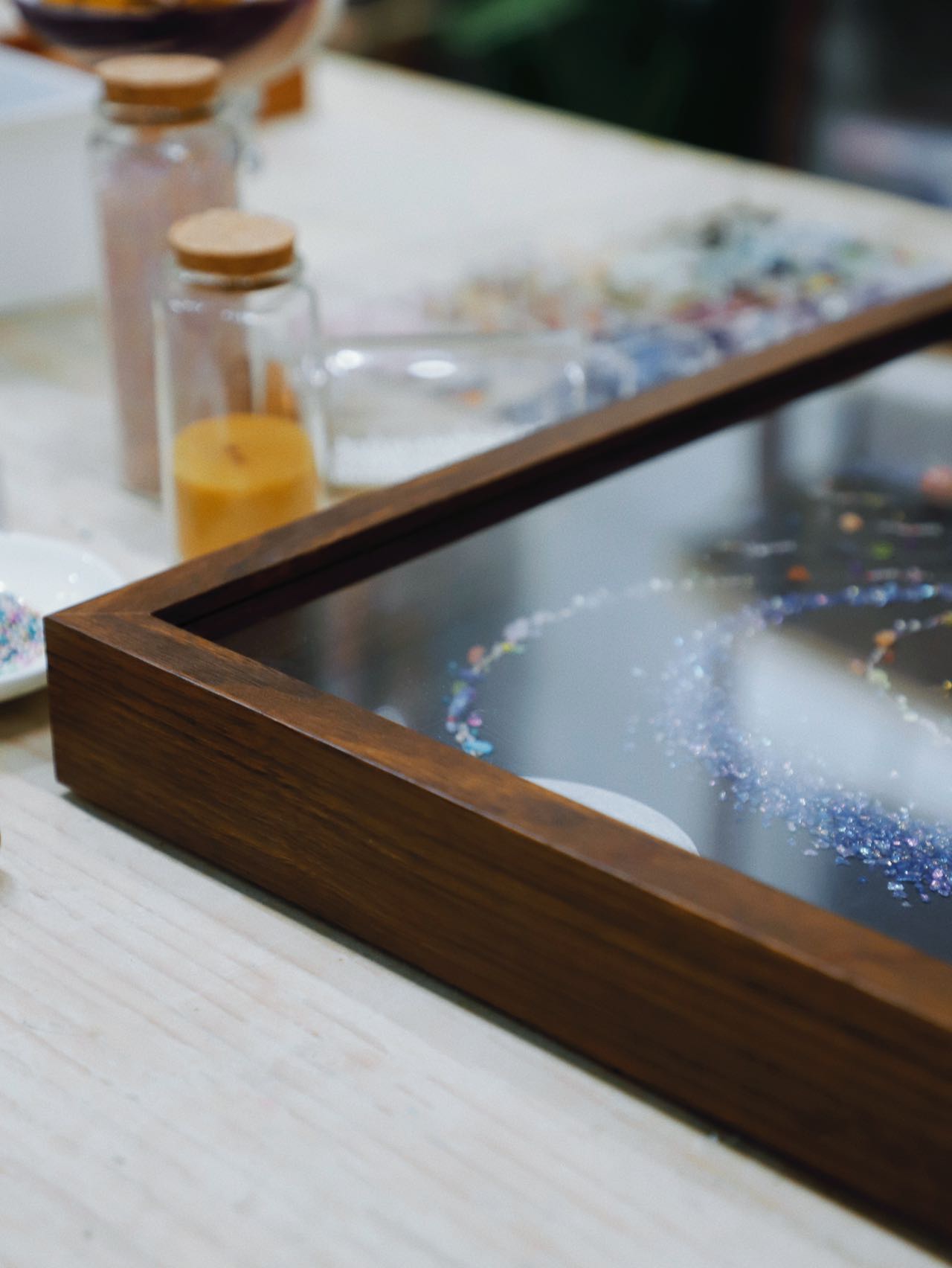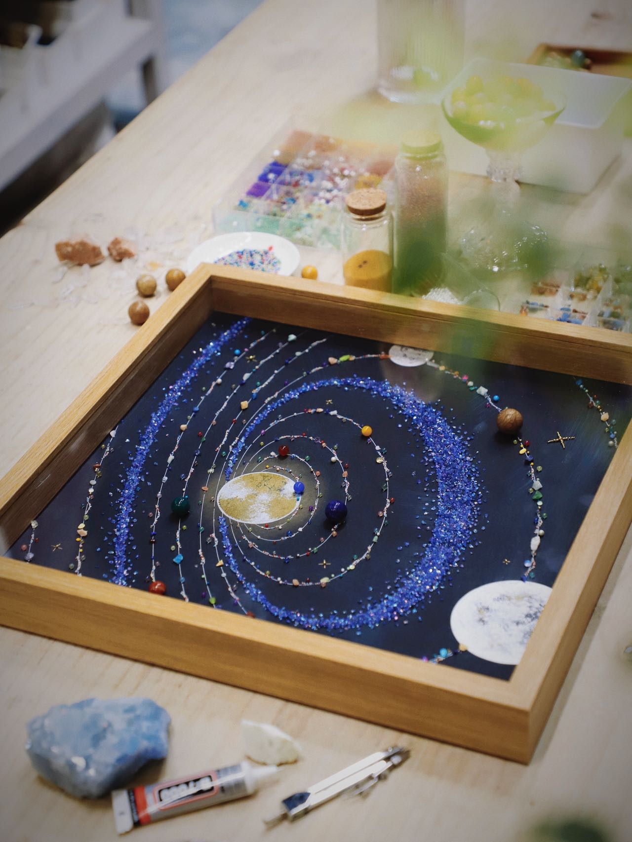 升级款胡桃木含pe有机玻璃防尘罩.宇宙太空蓝色太阳系.礼物.手工