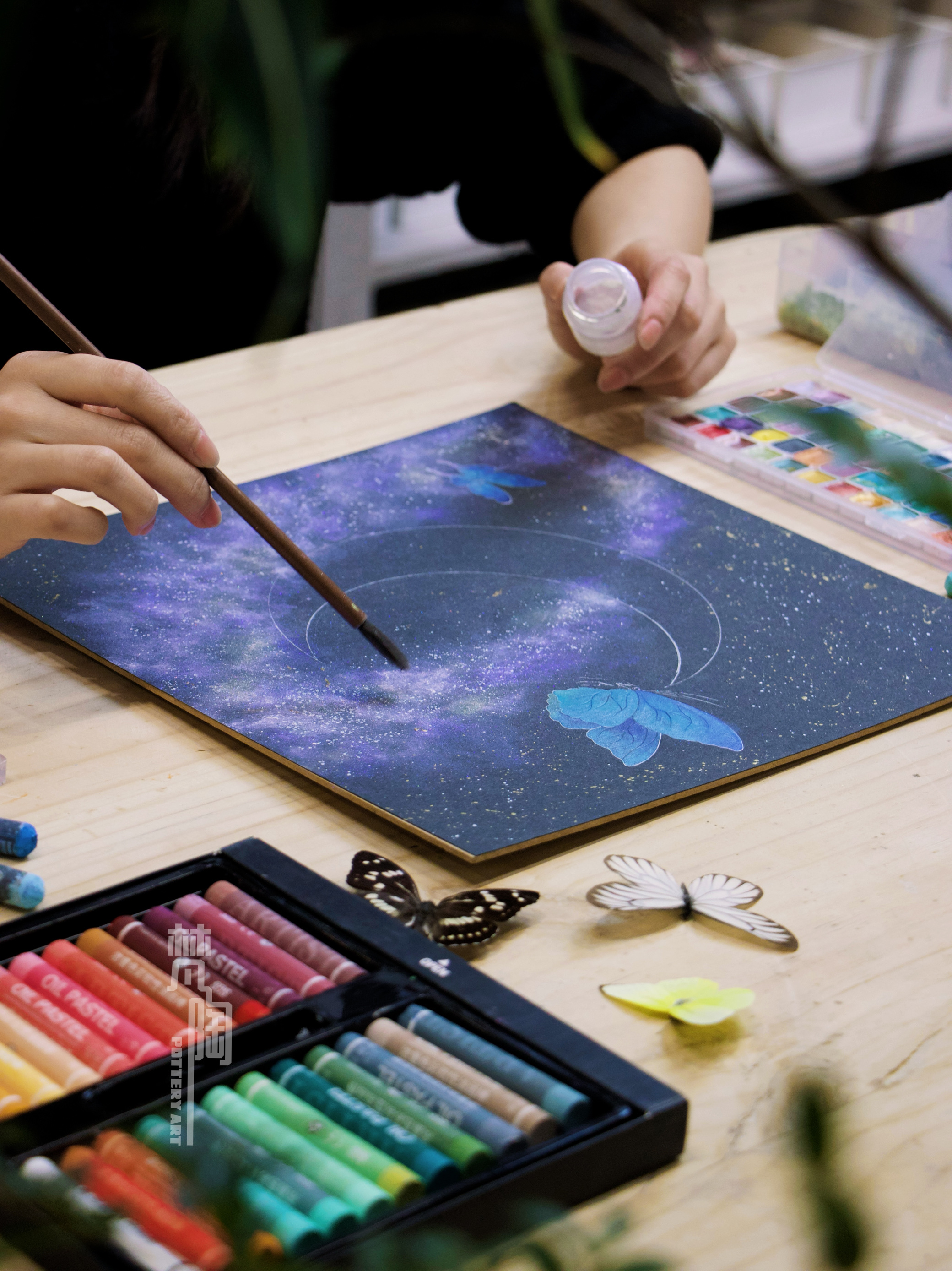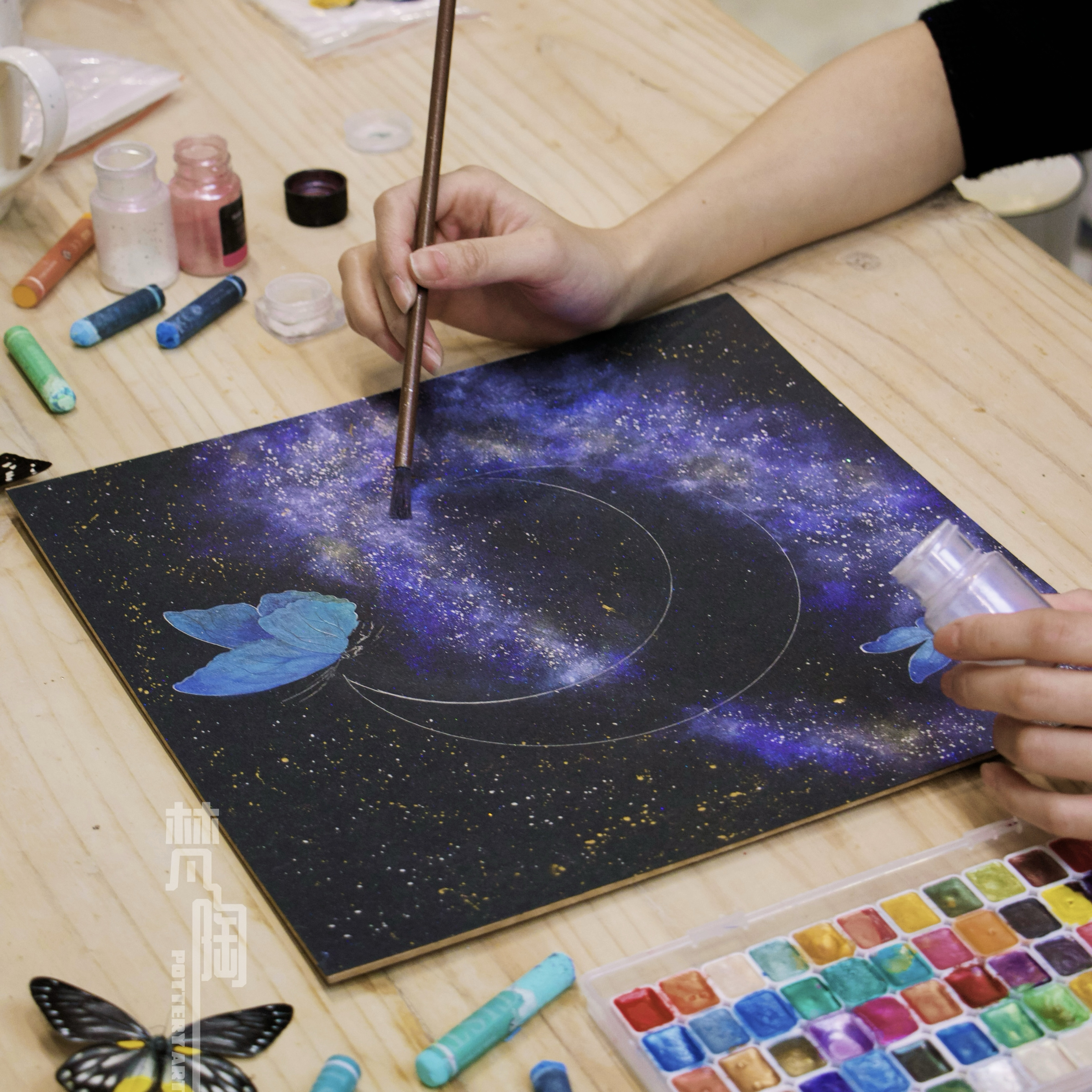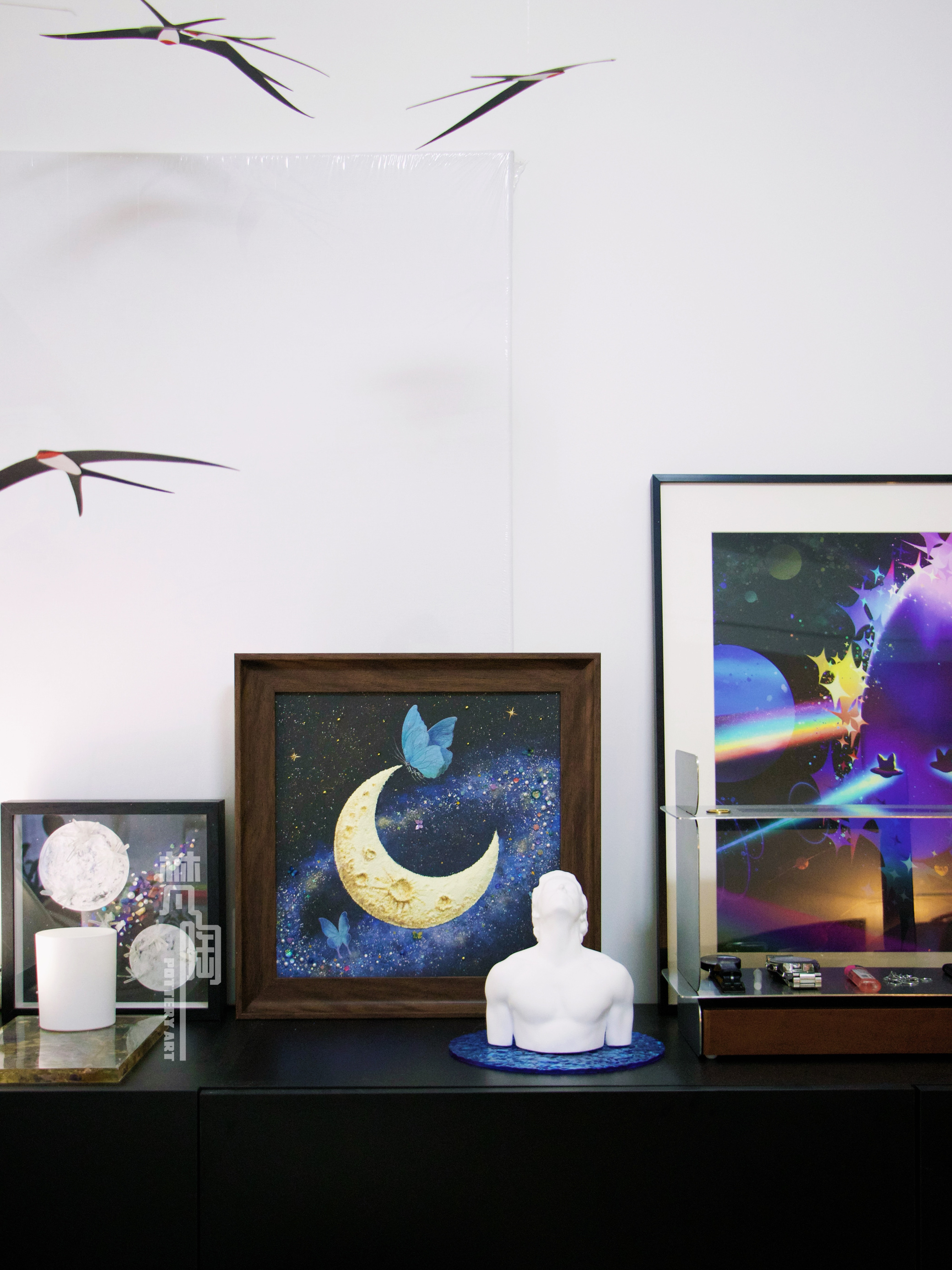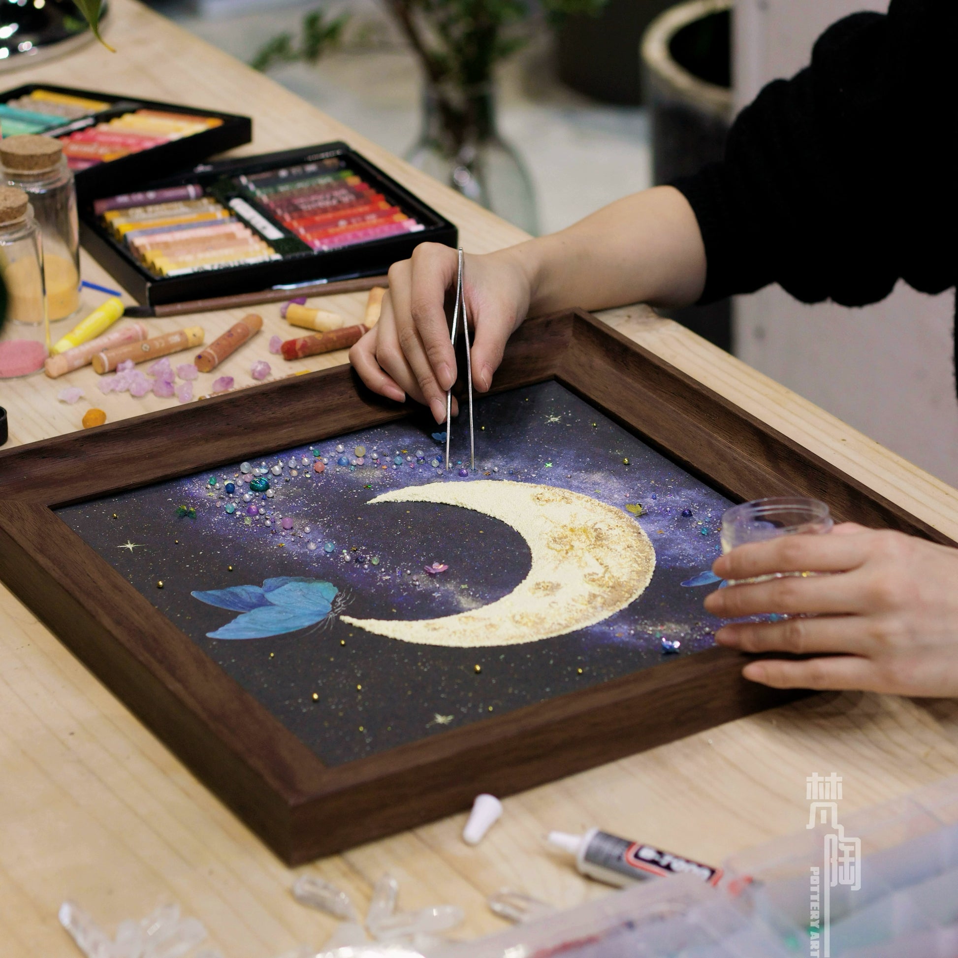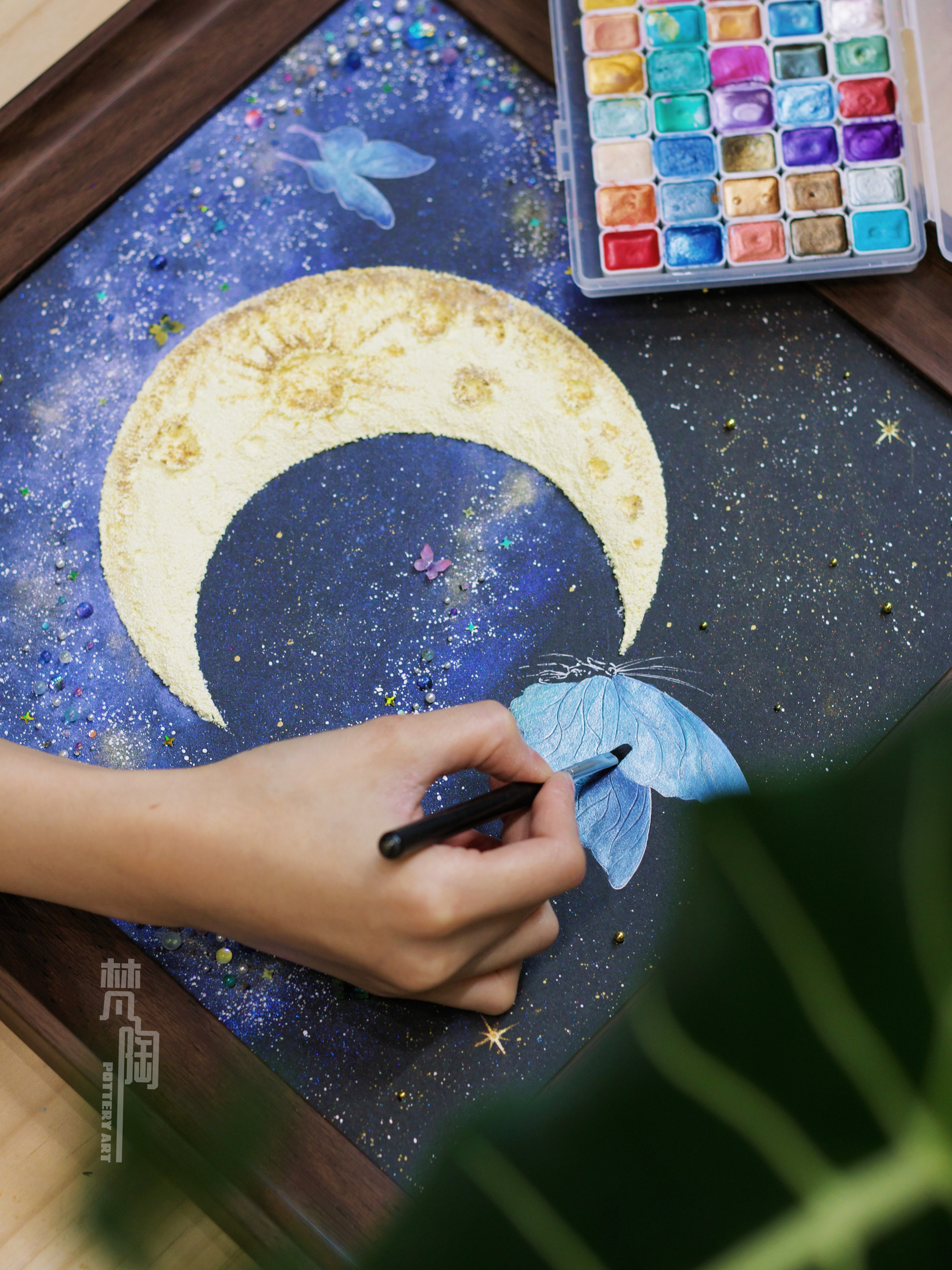 复古框蝴蝶标本装饰画蝴蝶标本礼物家居摆件月亮蝴蝶石英砂月球
