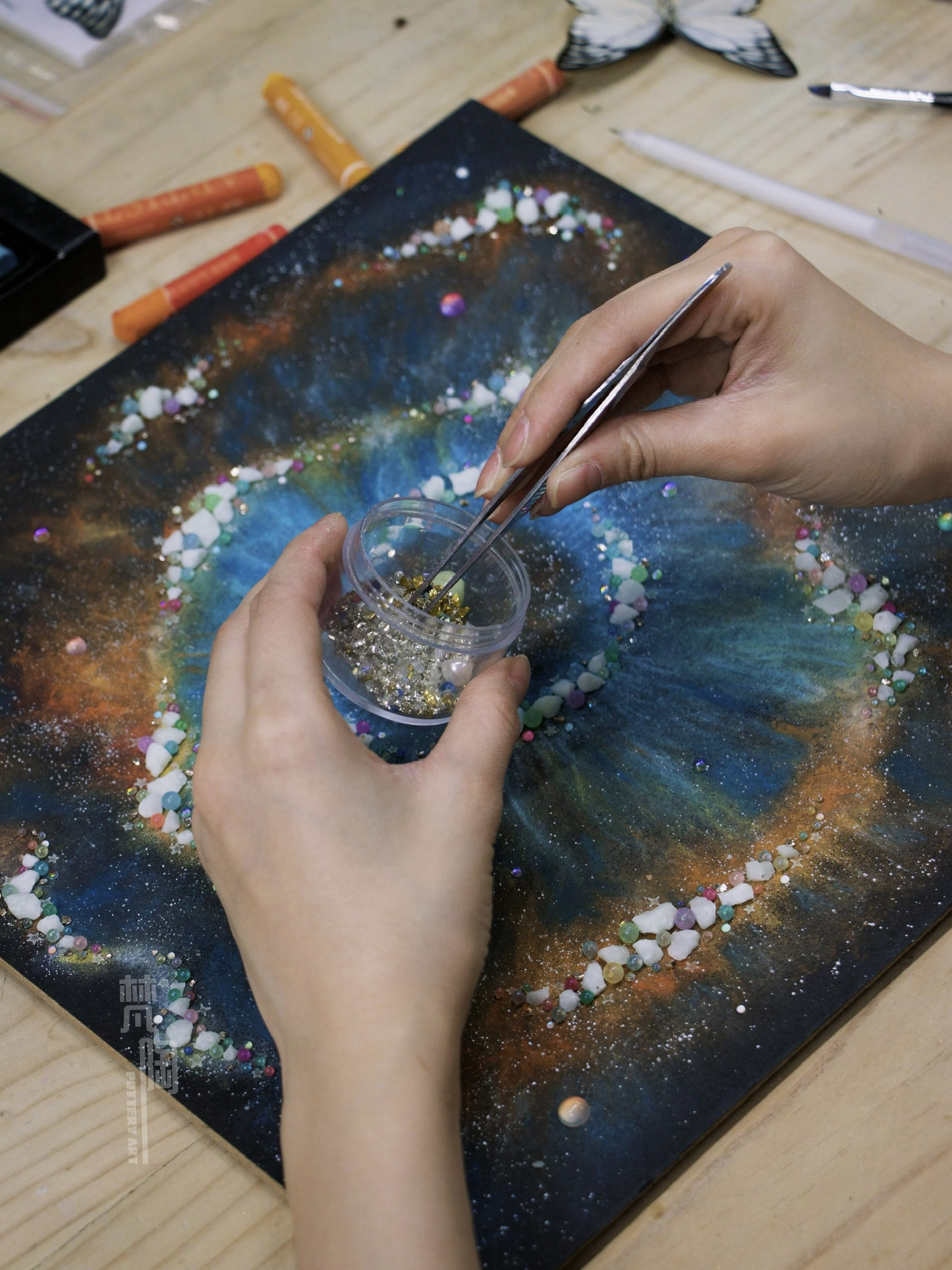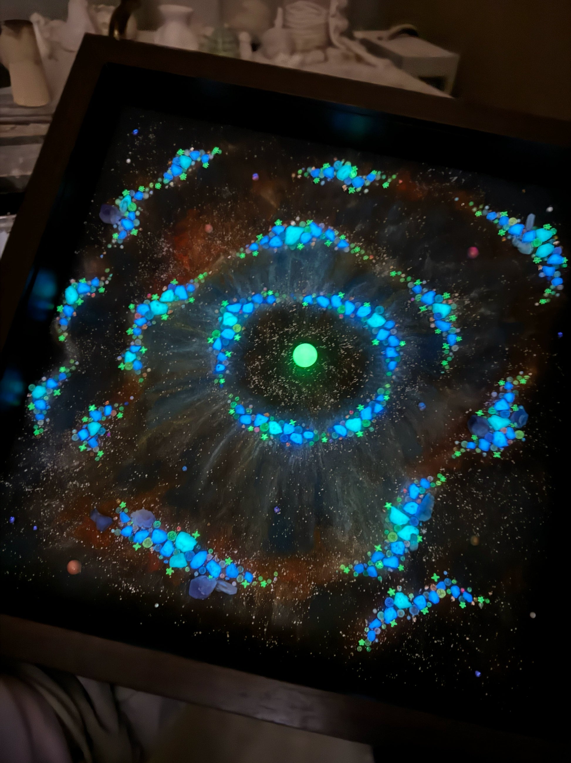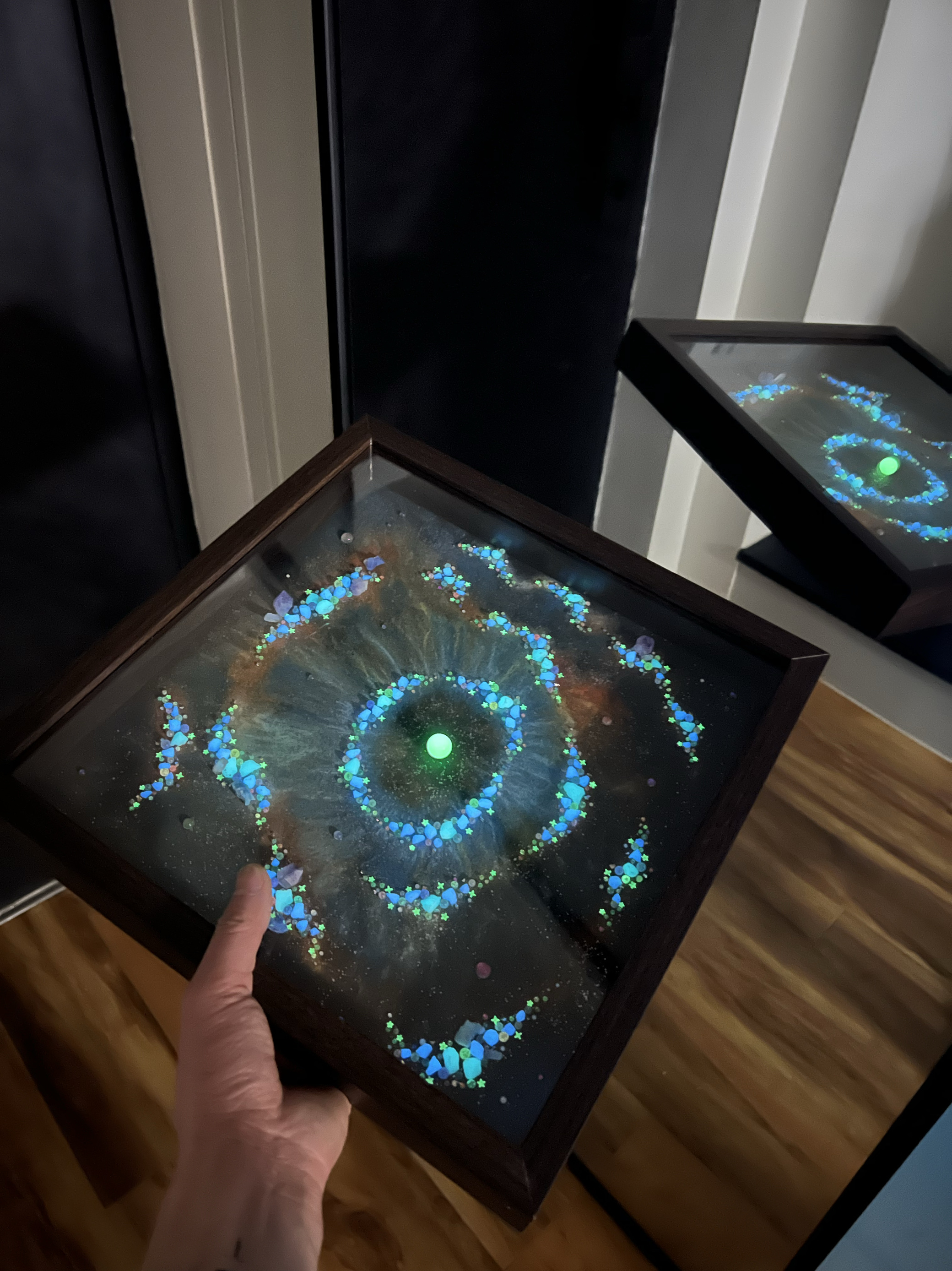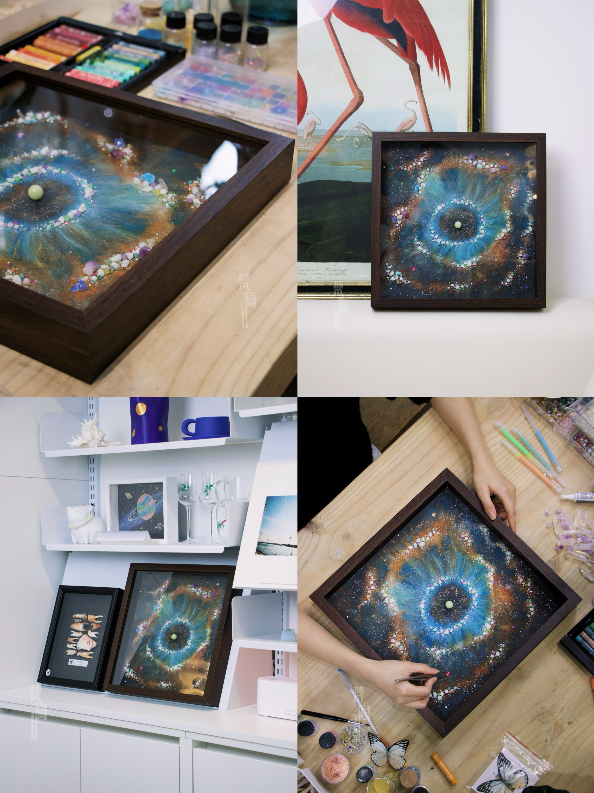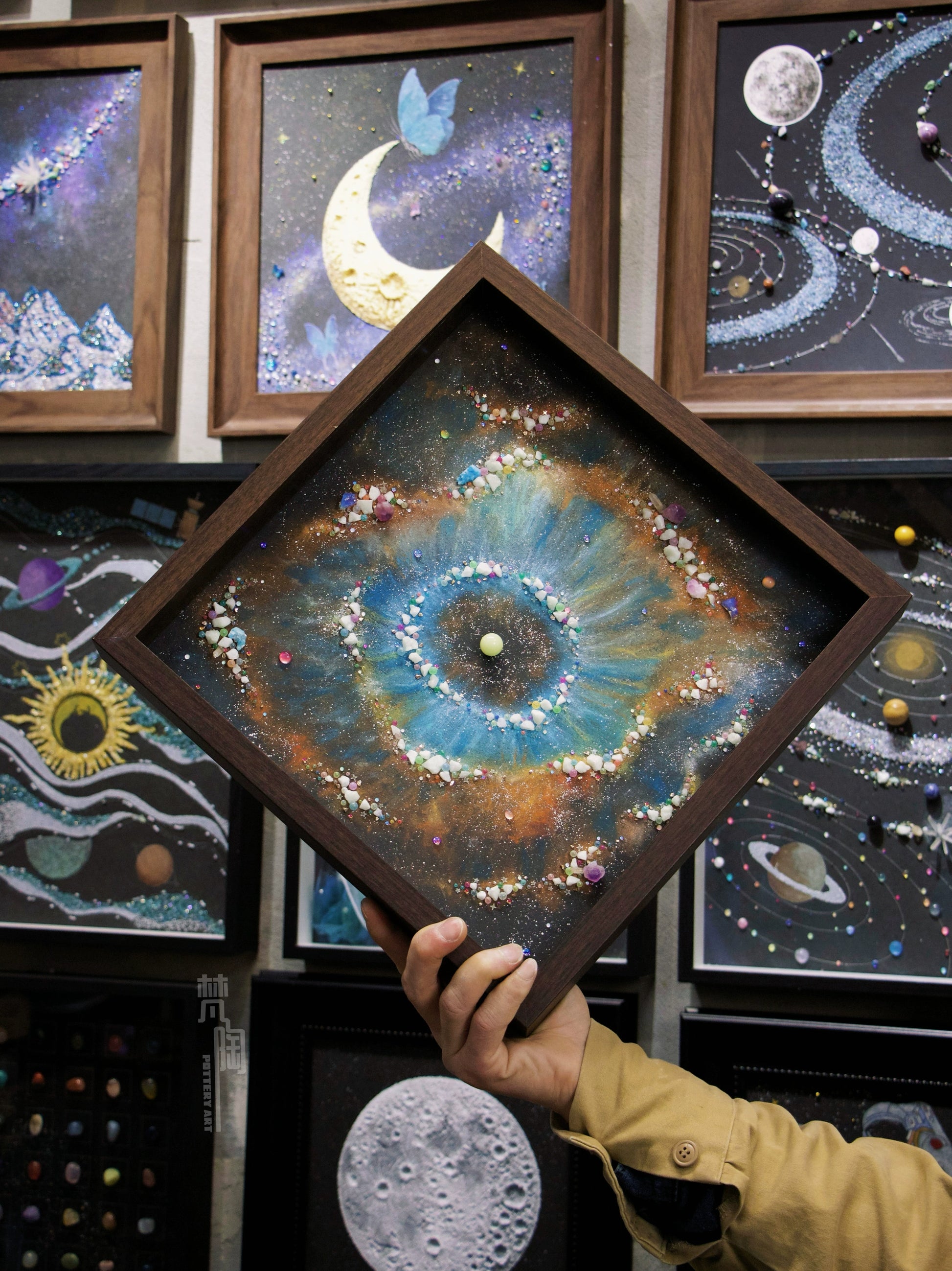 夜光款上帝之眼|夜光矿石宇宙太阳系中古玻璃相框精致礼物摆件