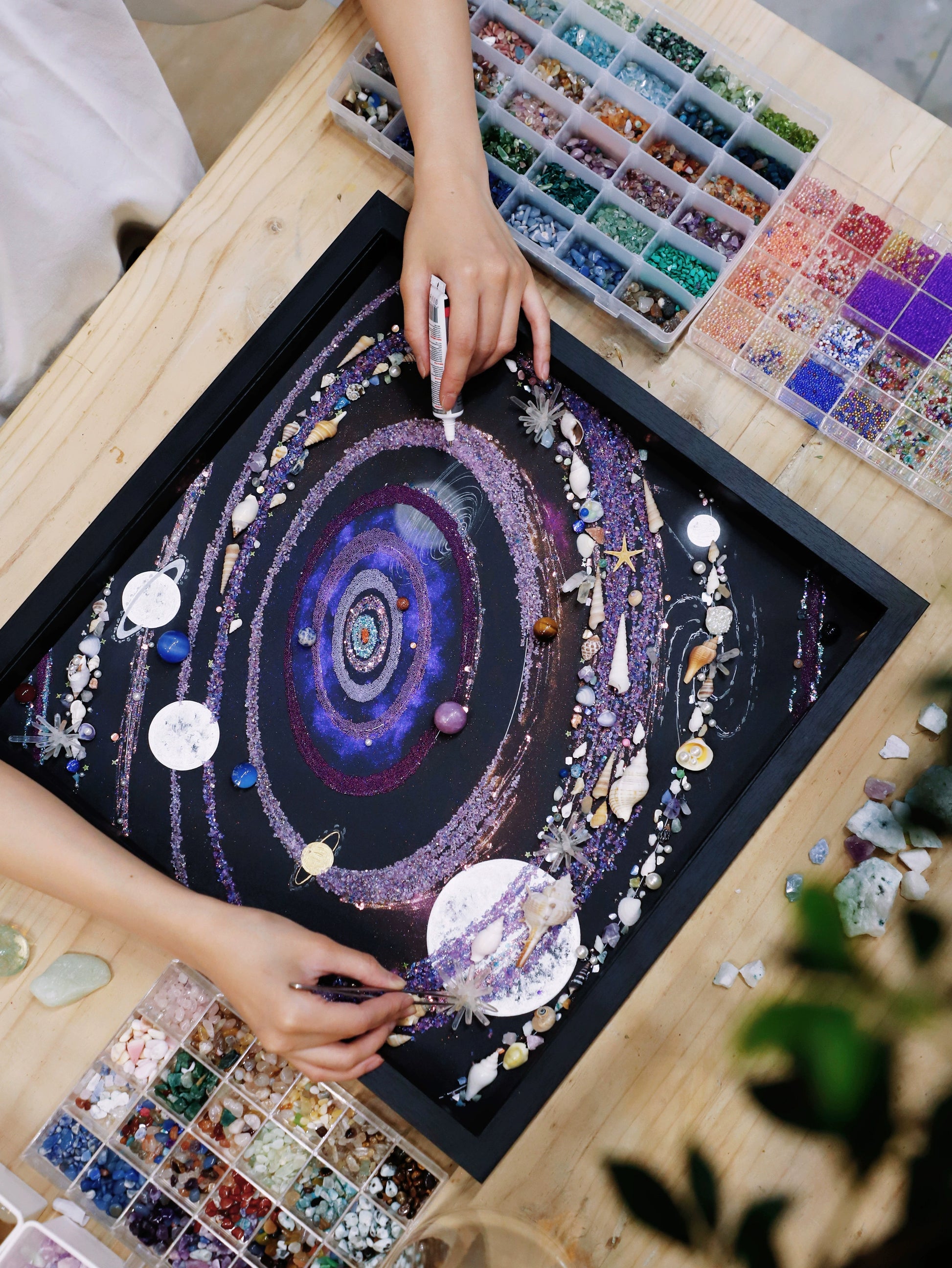 夜光紫色炫彩宇宙.礼物推荐.家居相框挂画.宇宙矿石画.星空.摆件