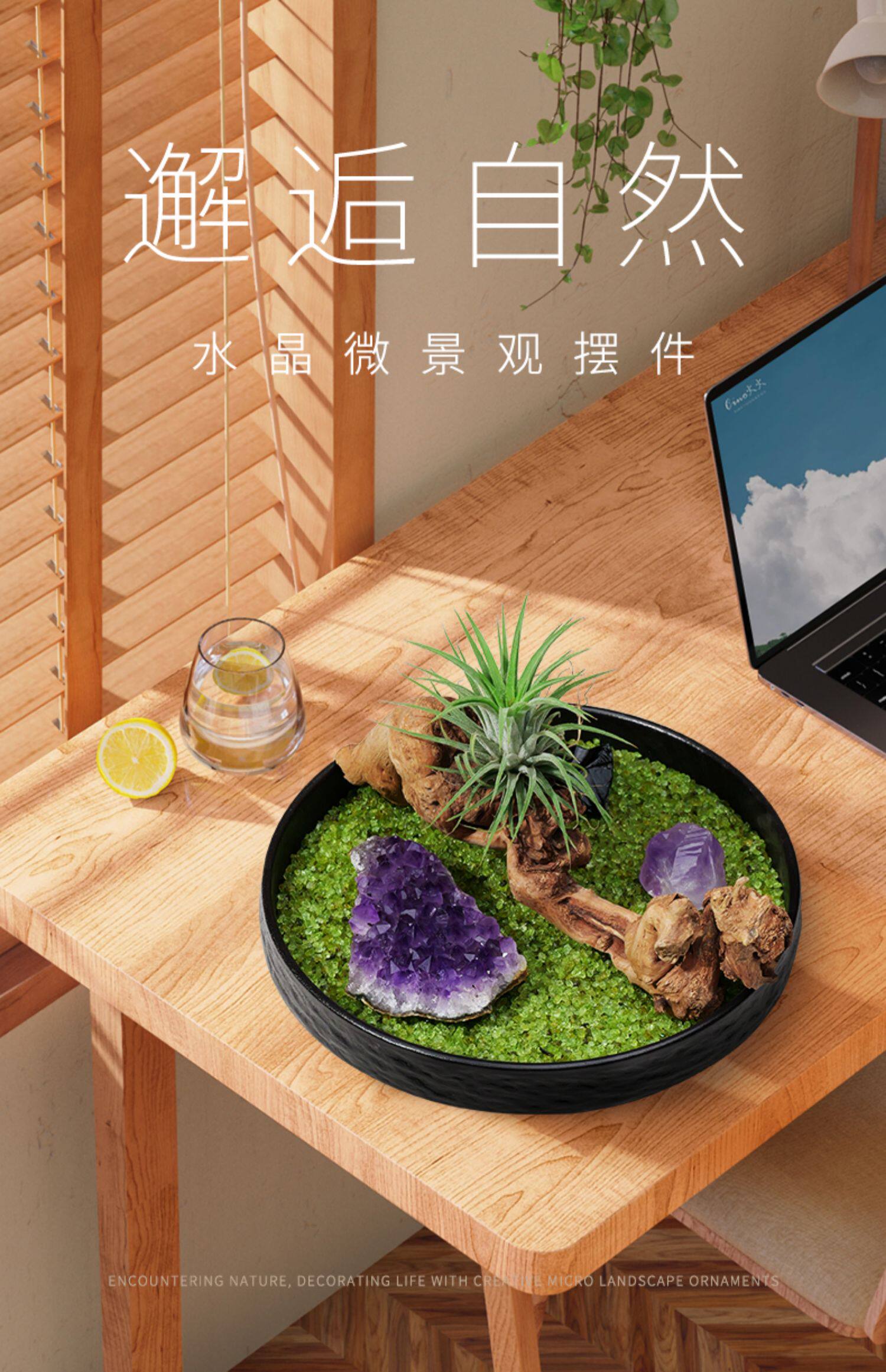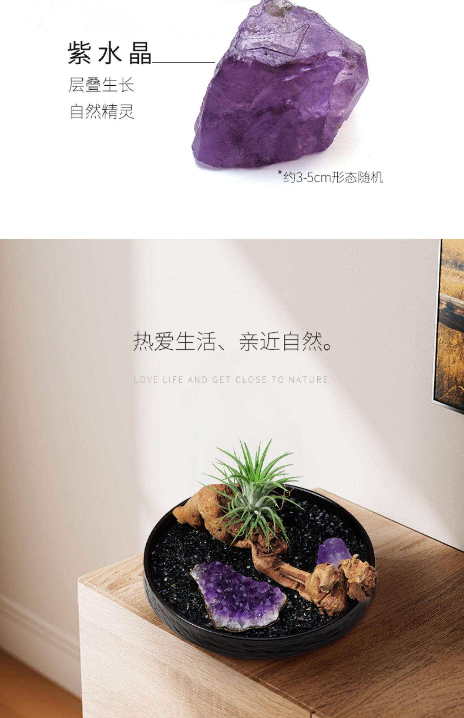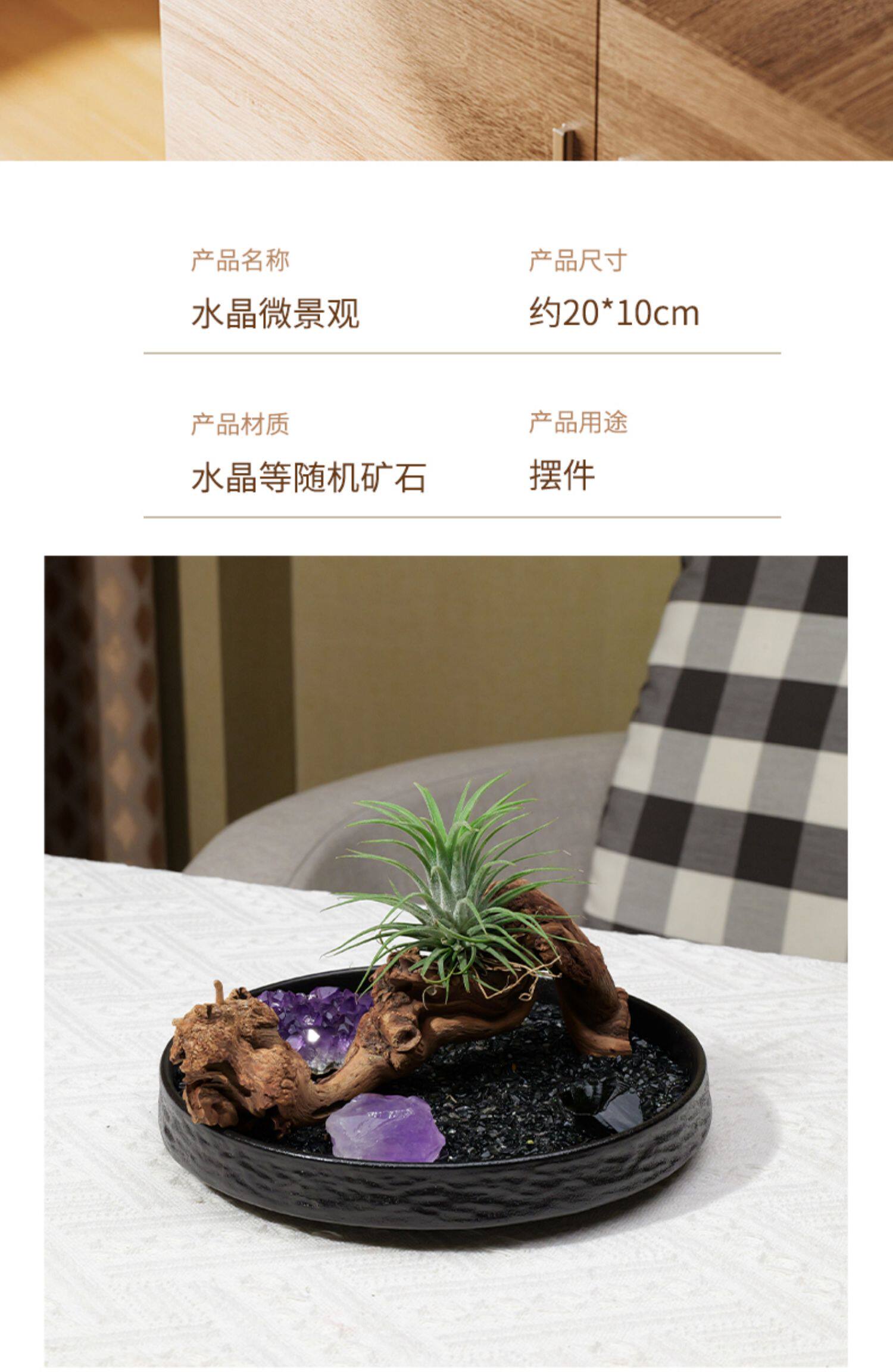 天然水晶原石微景观空气凤梨风化木绿植家居酒店桌面造景水晶摆件