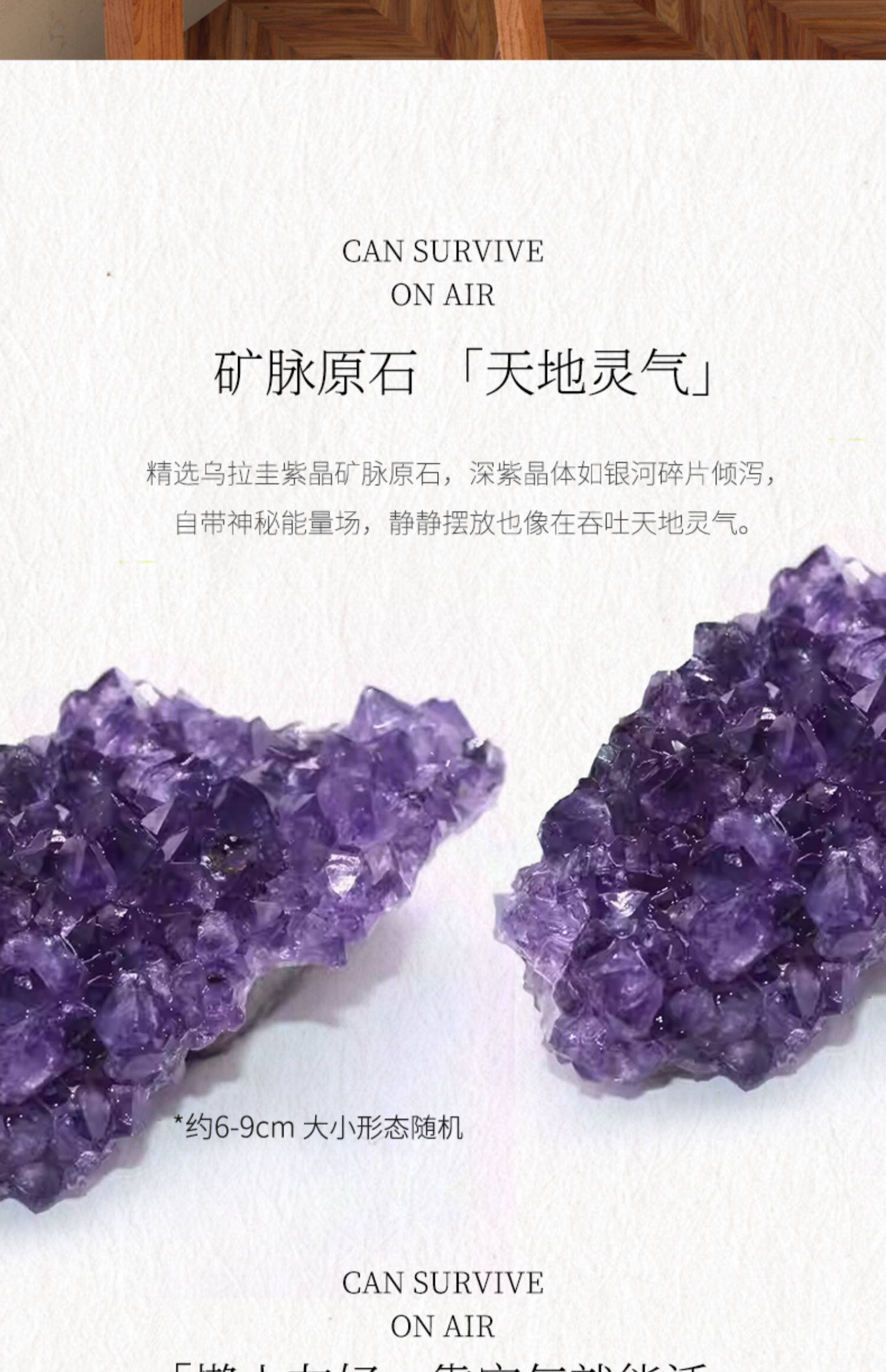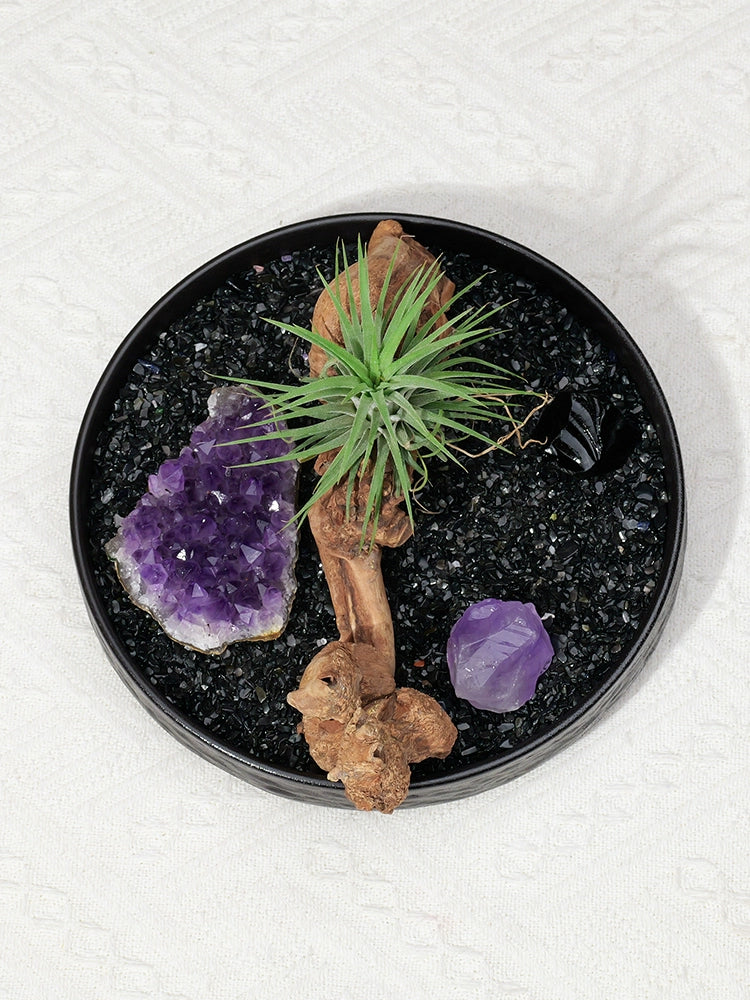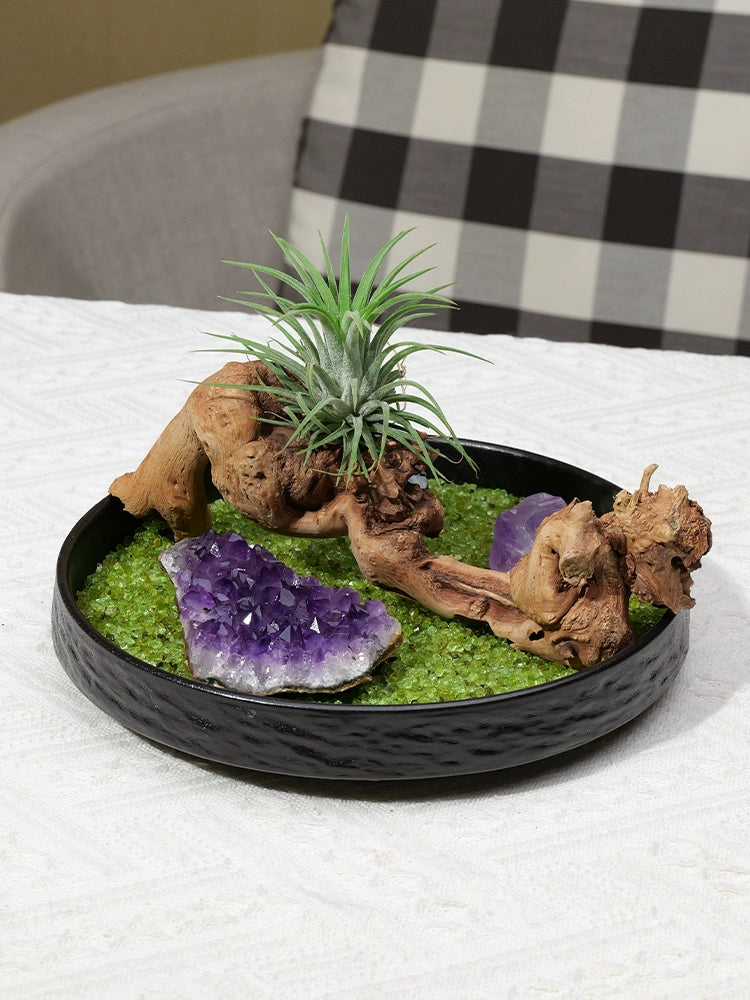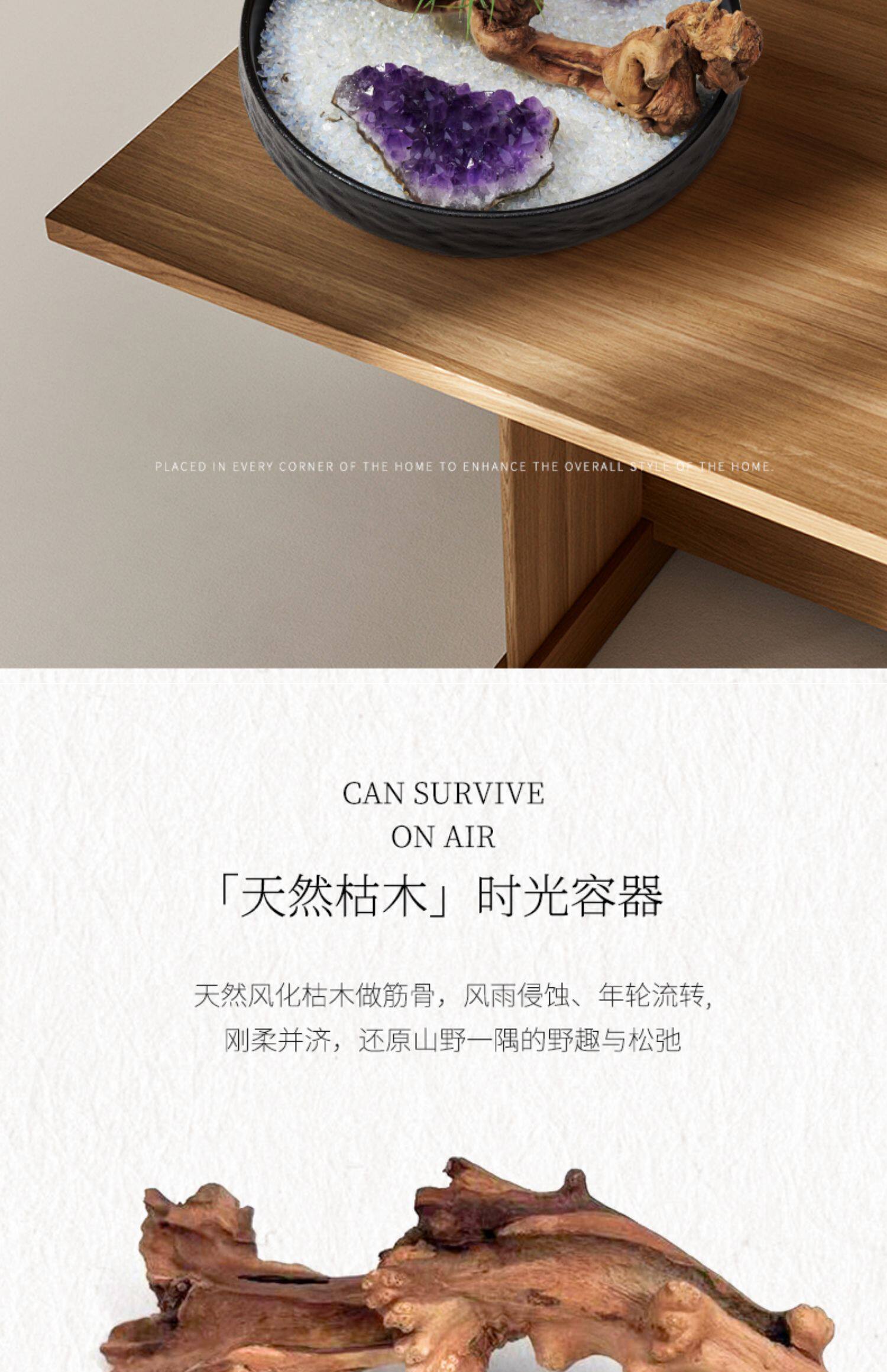 天然水晶原石微景观空气凤梨风化木绿植家居酒店桌面造景水晶摆件