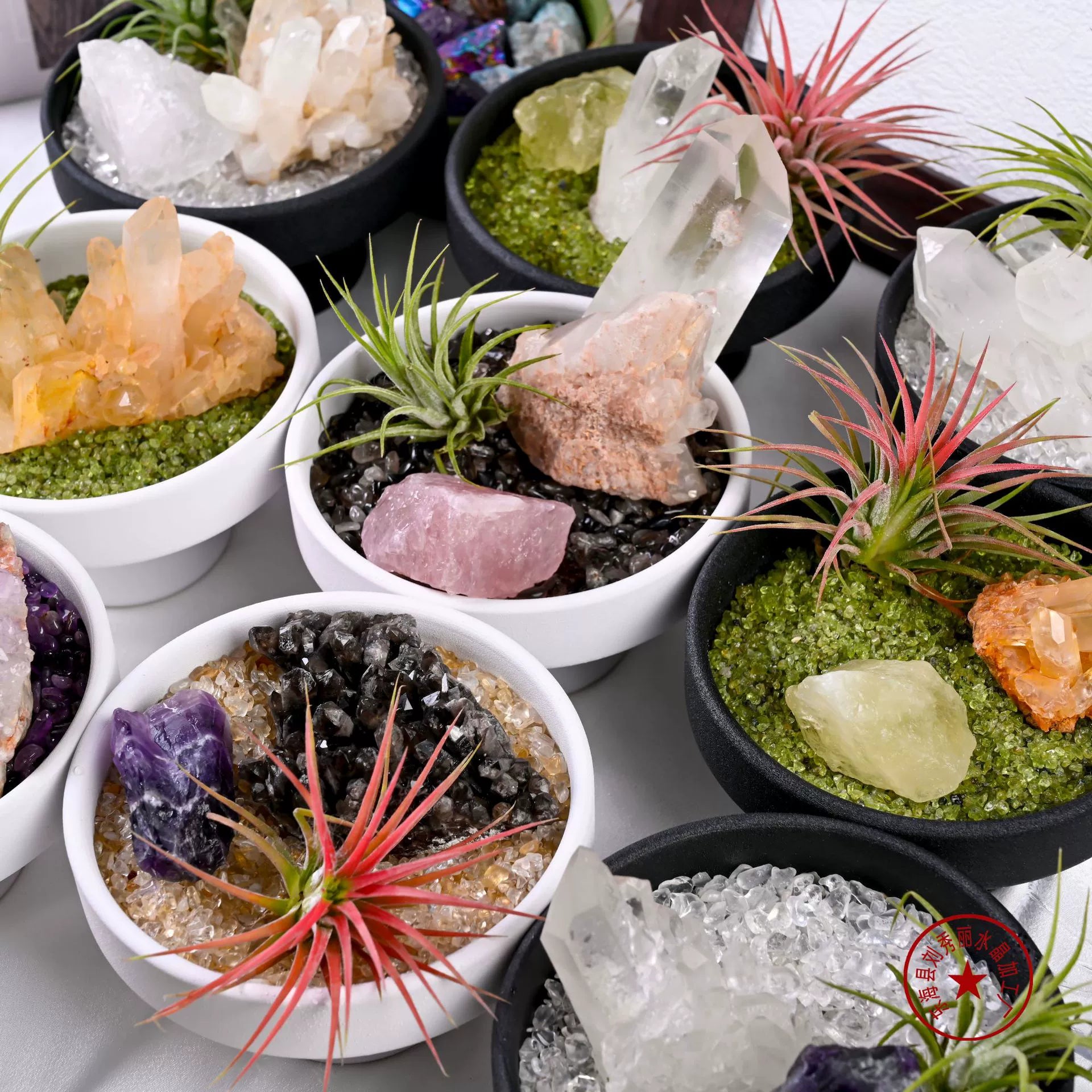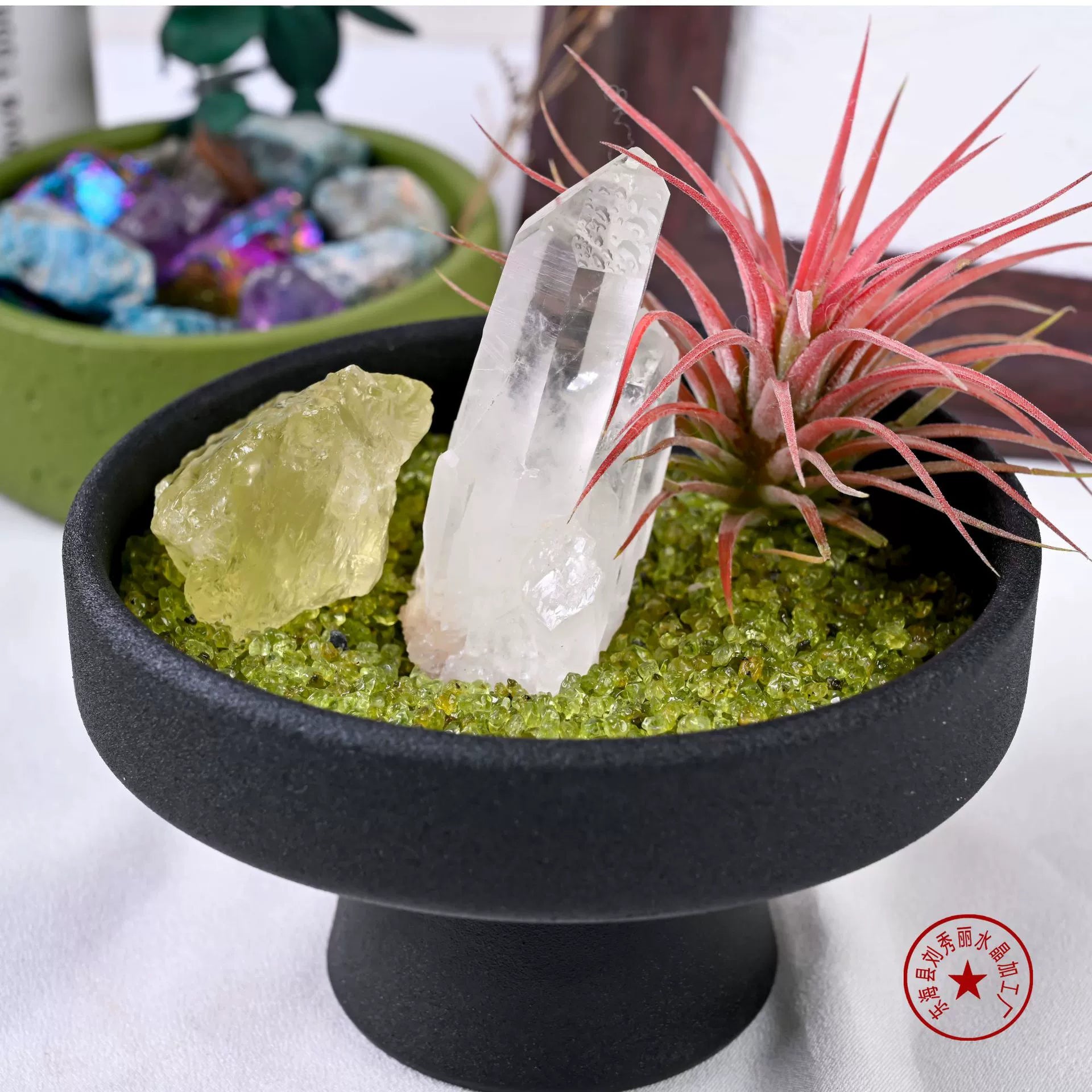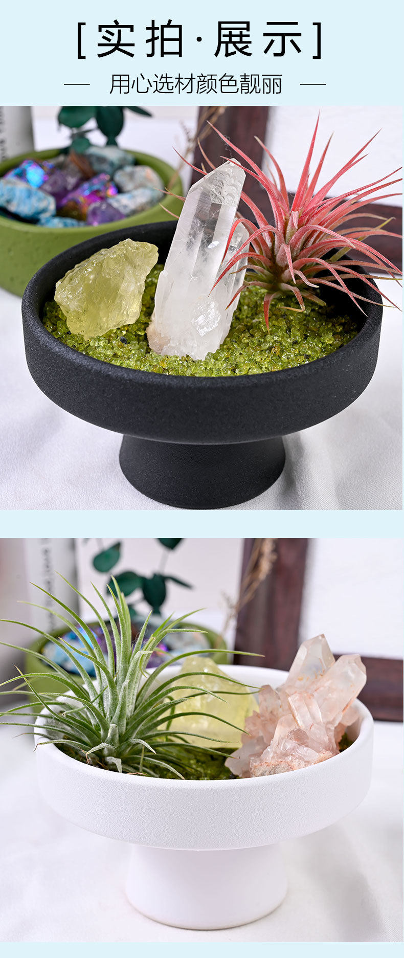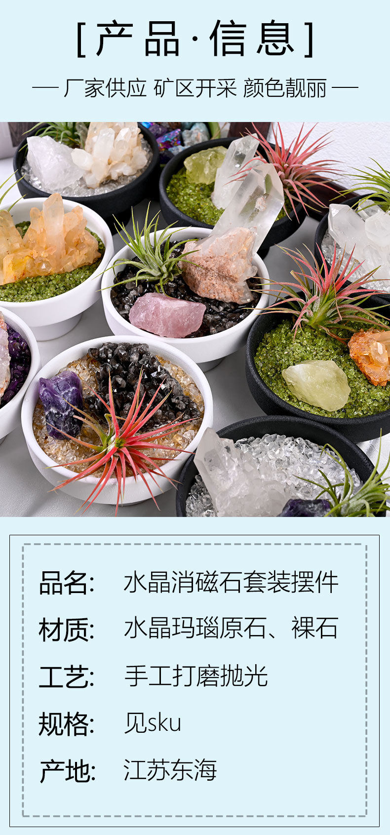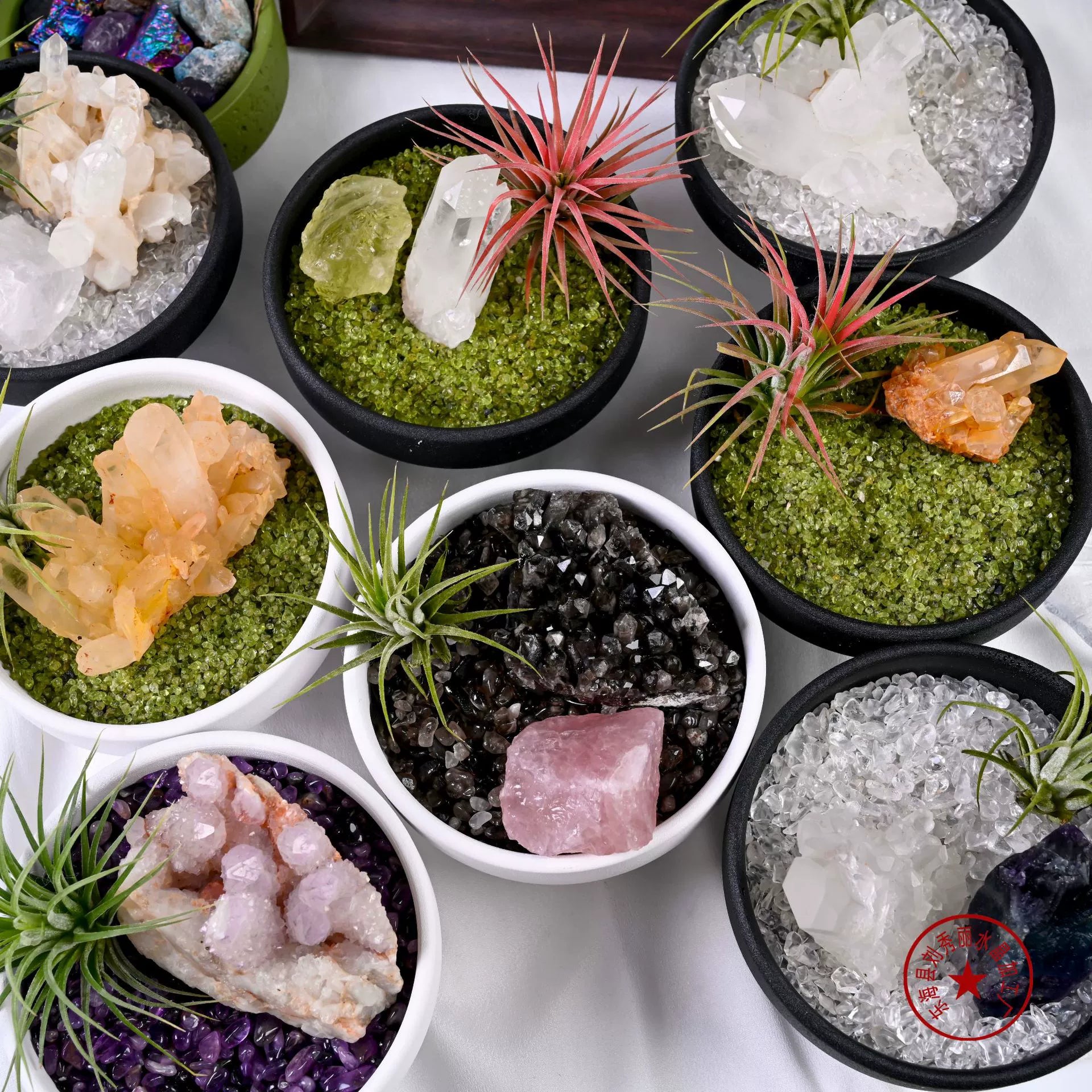 天然水晶原石扩香石消磁石禅意花艺盆栽套装客厅办公桌面装饰摆件