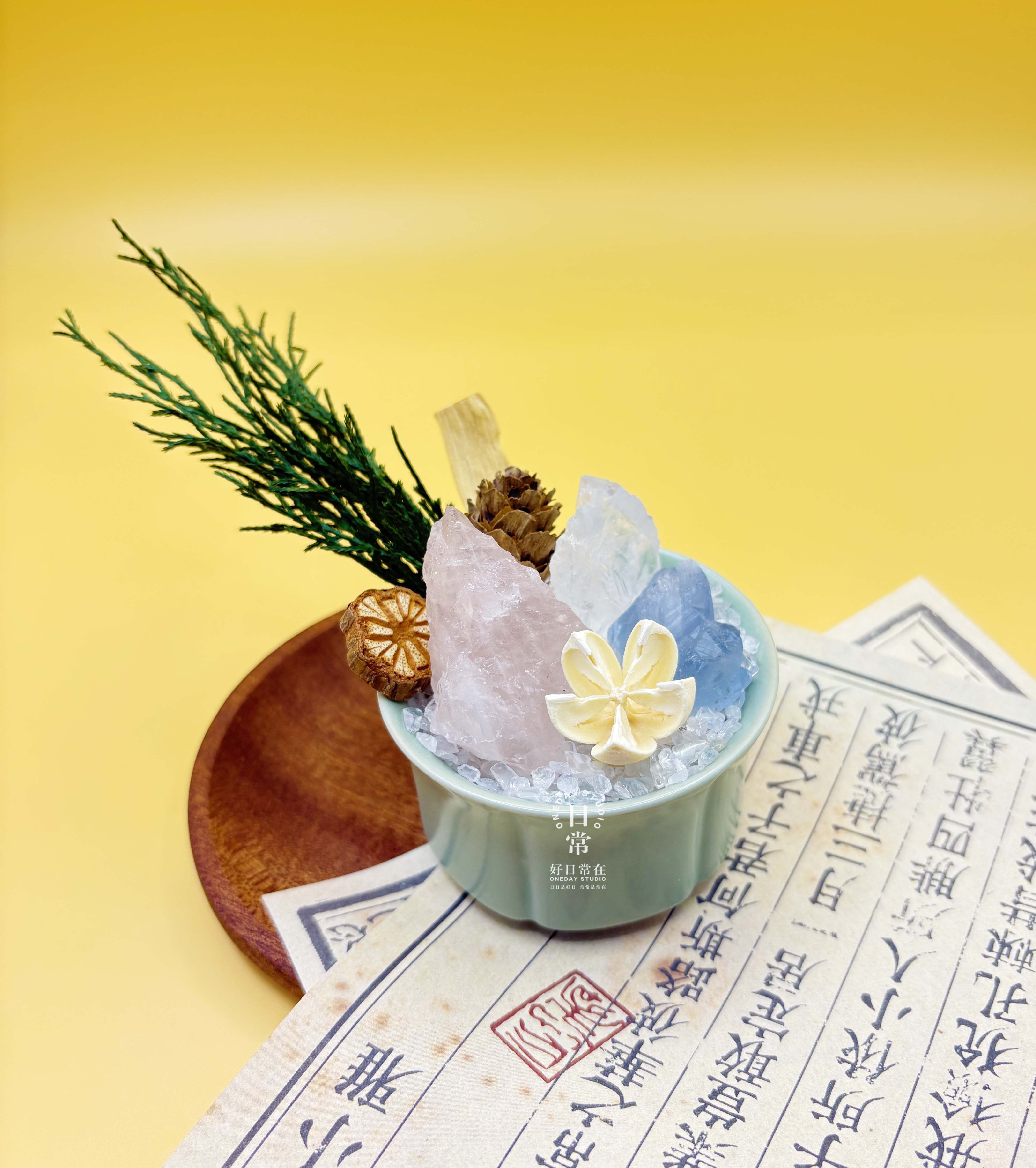 天然水晶摆件纯天然植物矿石轻奢礼物桌面小盆栽永生摆件diy原创