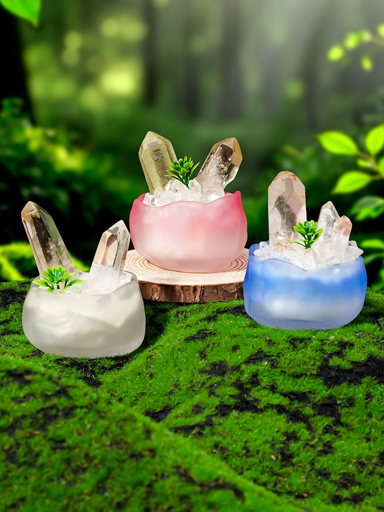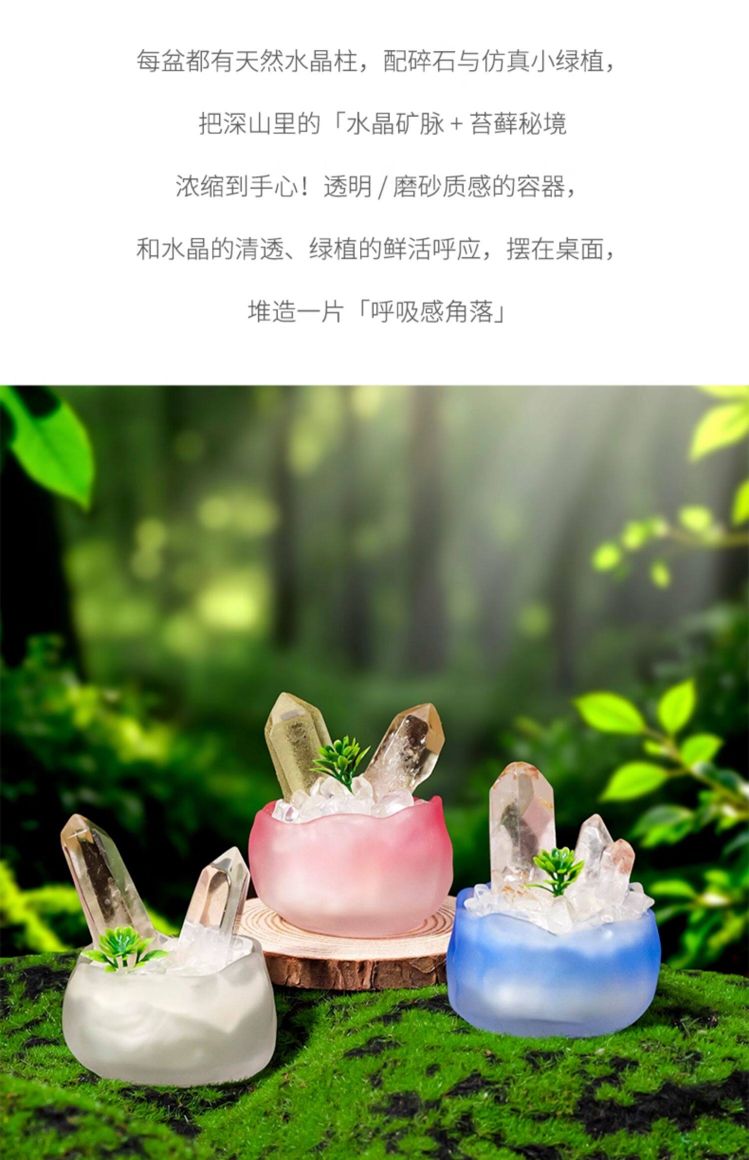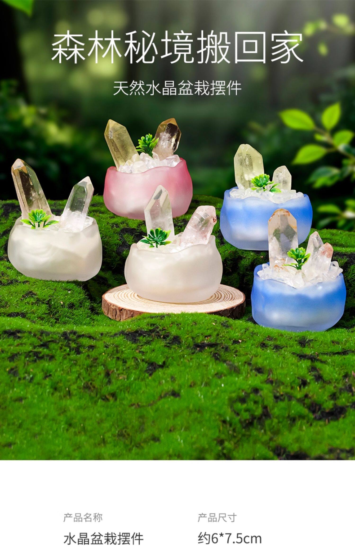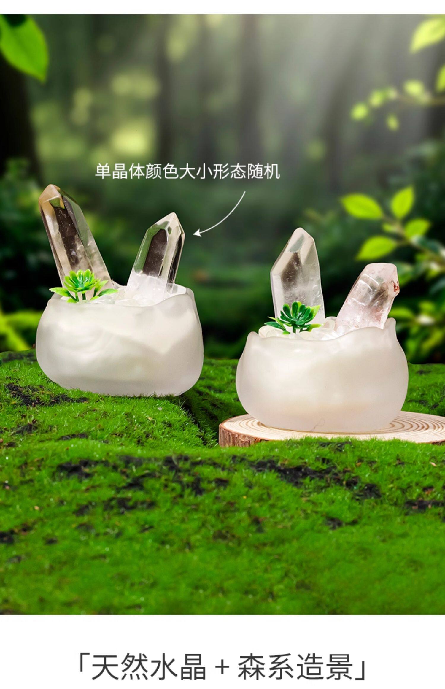 天然水晶柱盆栽摆件装饰白水晶黄水晶水晶碎石原矿纯手工DIY绿植
