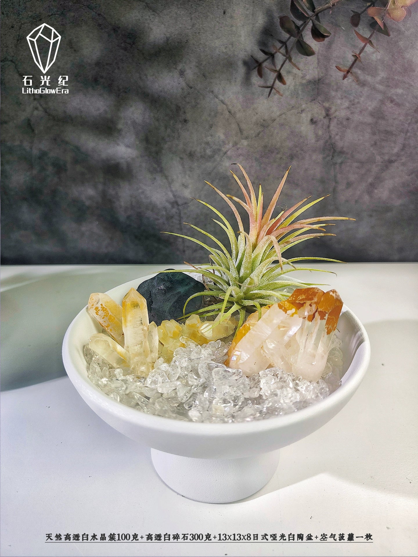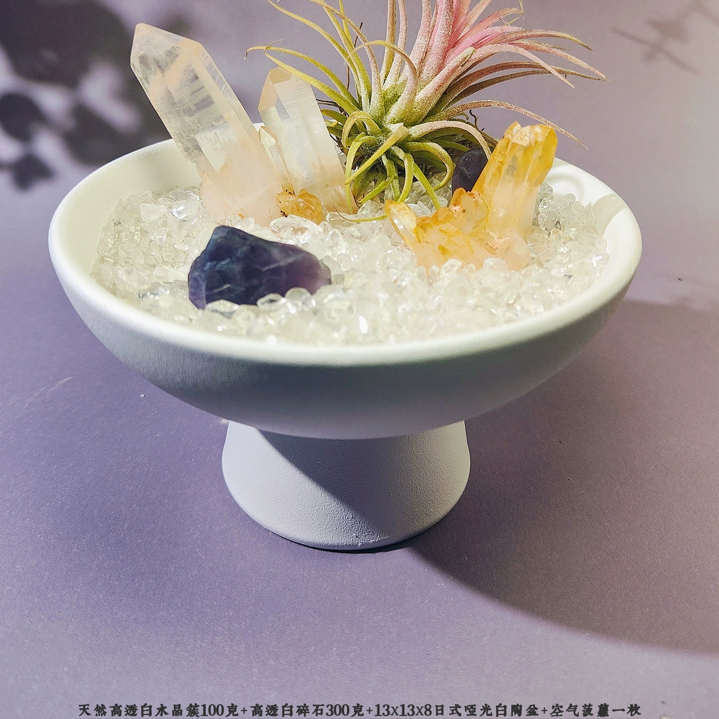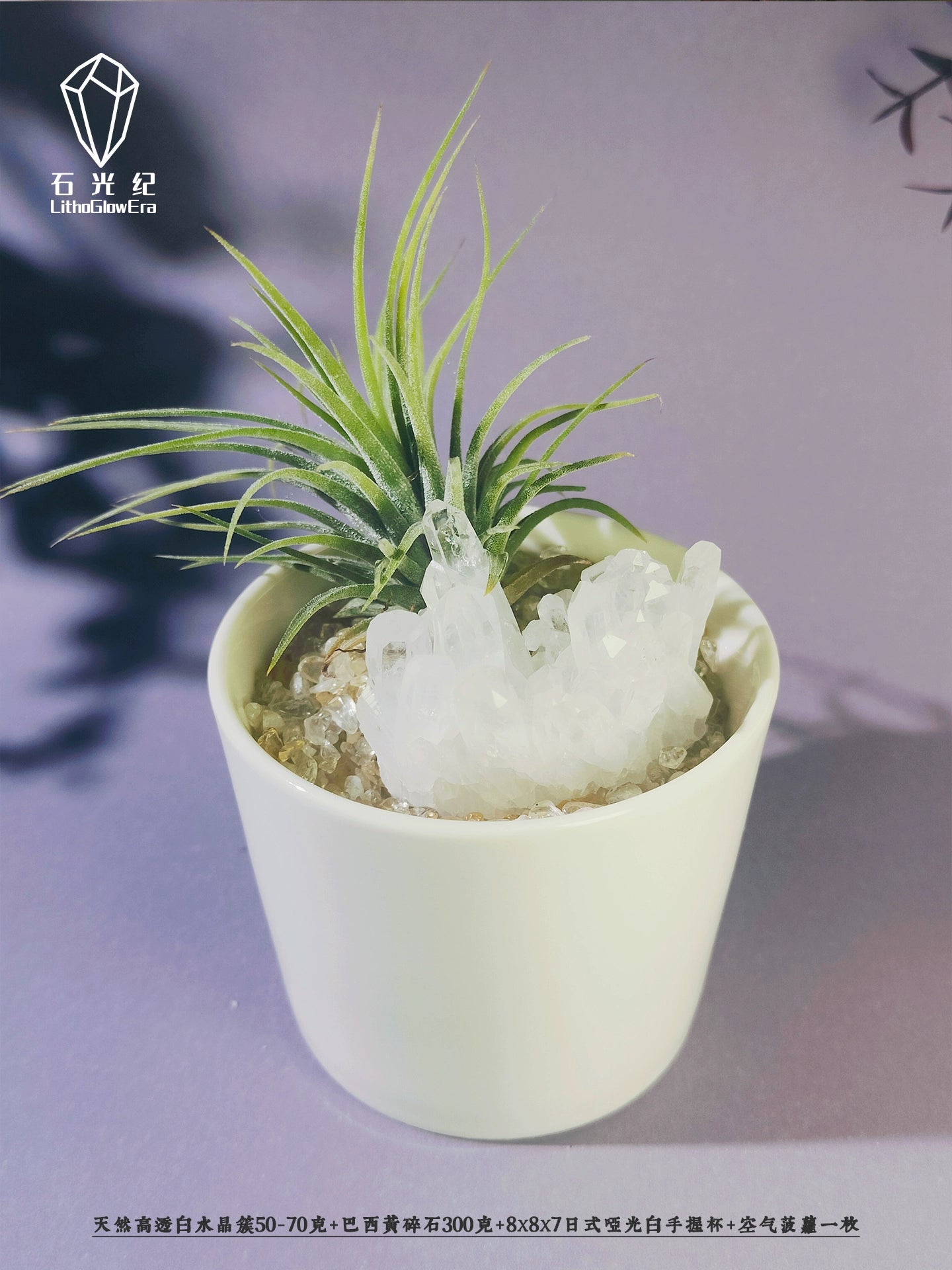 天然白水晶簇原矿消磁标本矿标净化高级造景礼品家居办公盆景摆件