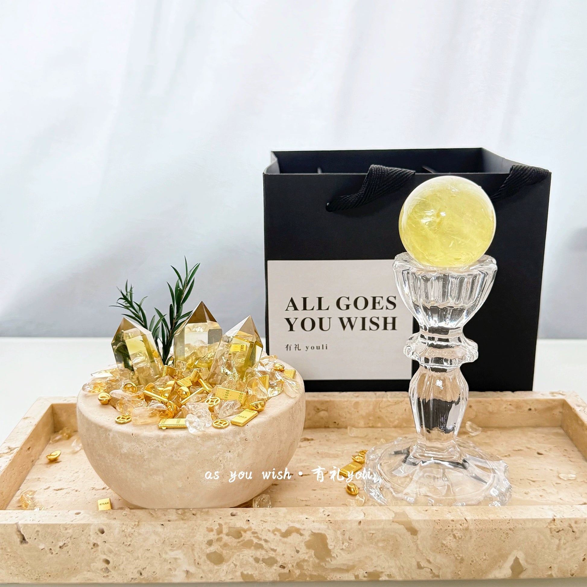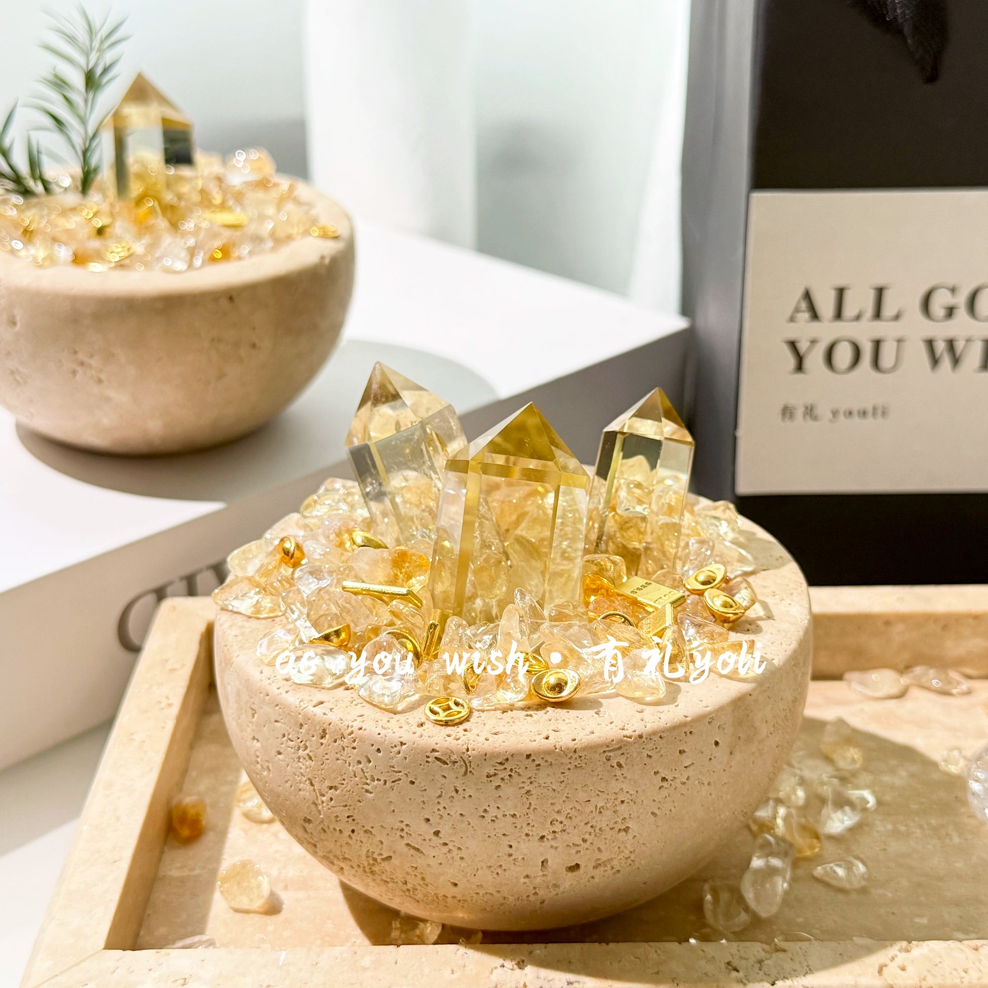 天然黄水晶摆件招财聚宝盆高级水晶消磁碗玄关桌面摆件节日礼物