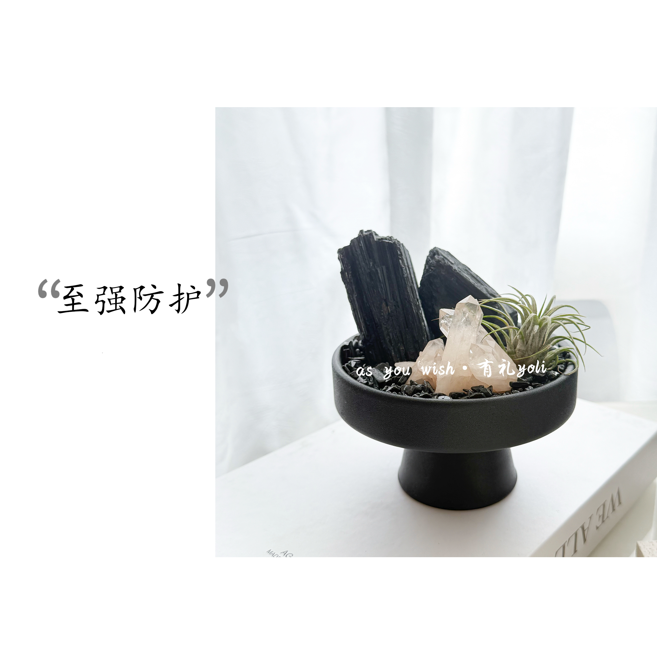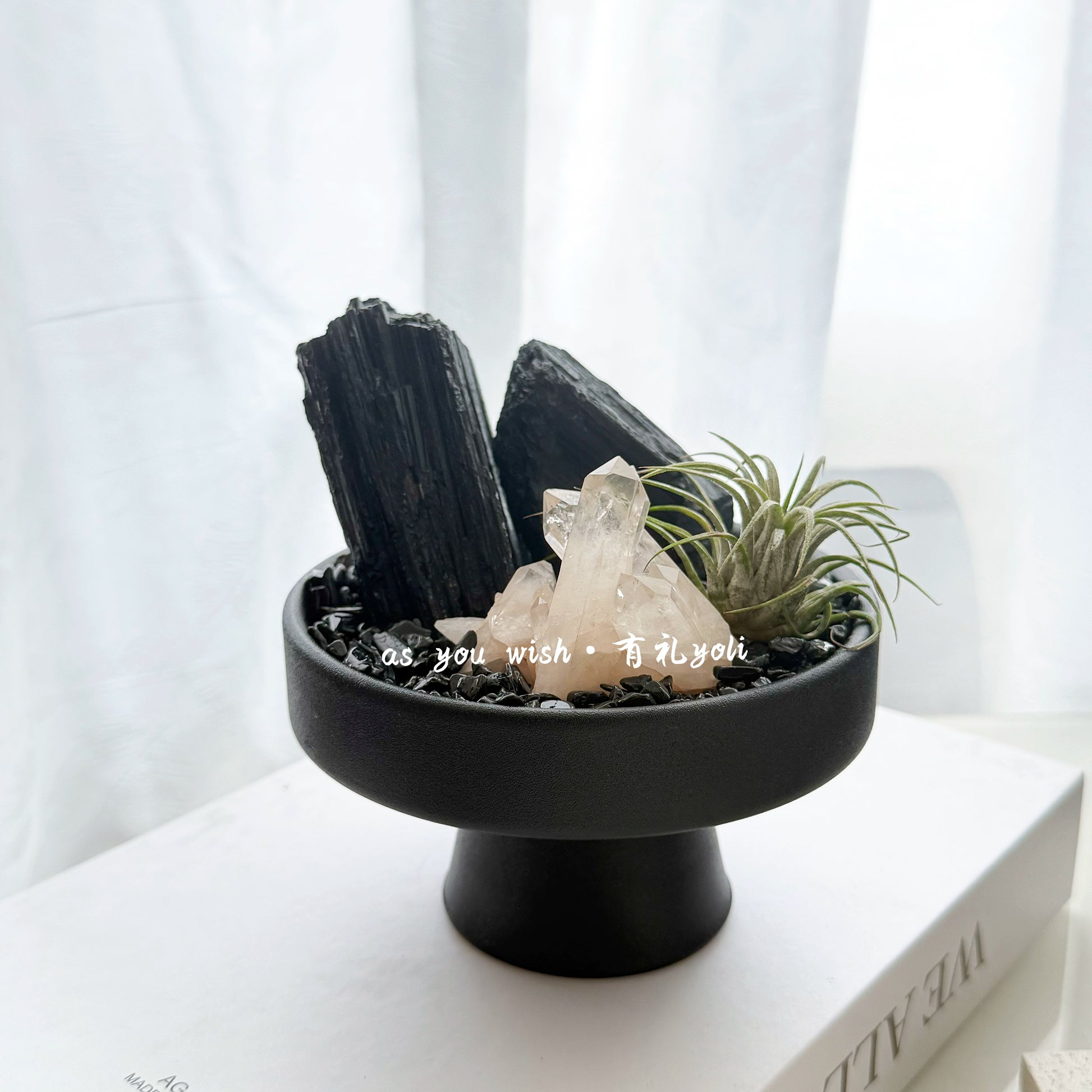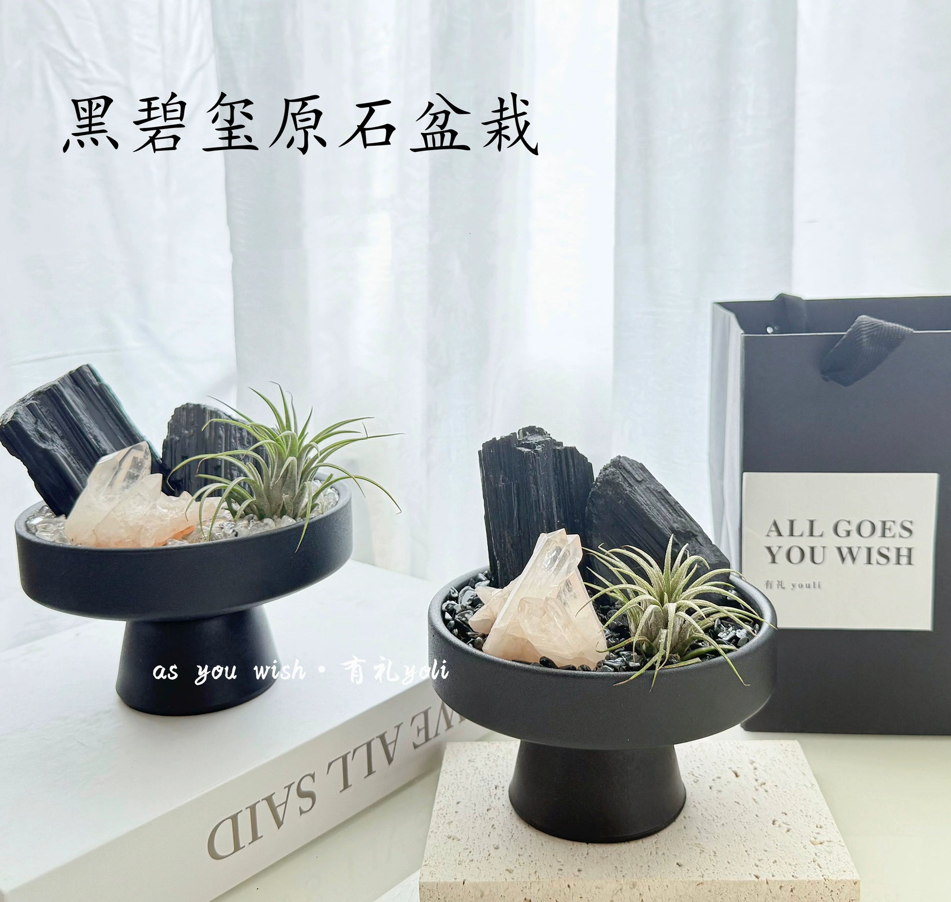 有礼Yoli黑碧玺原石水晶桌面摆件盆栽家居玄关办公桌摆件节日礼物
