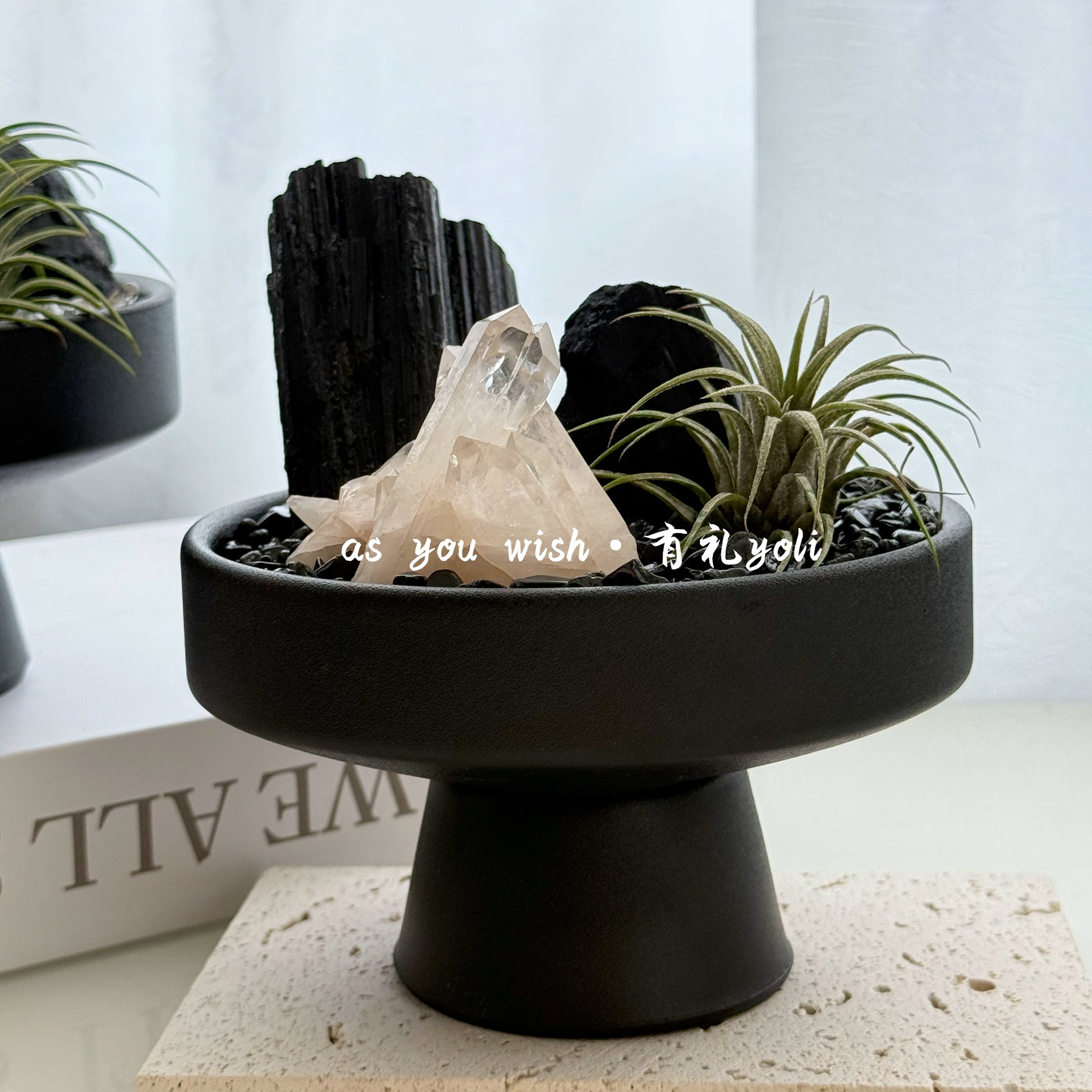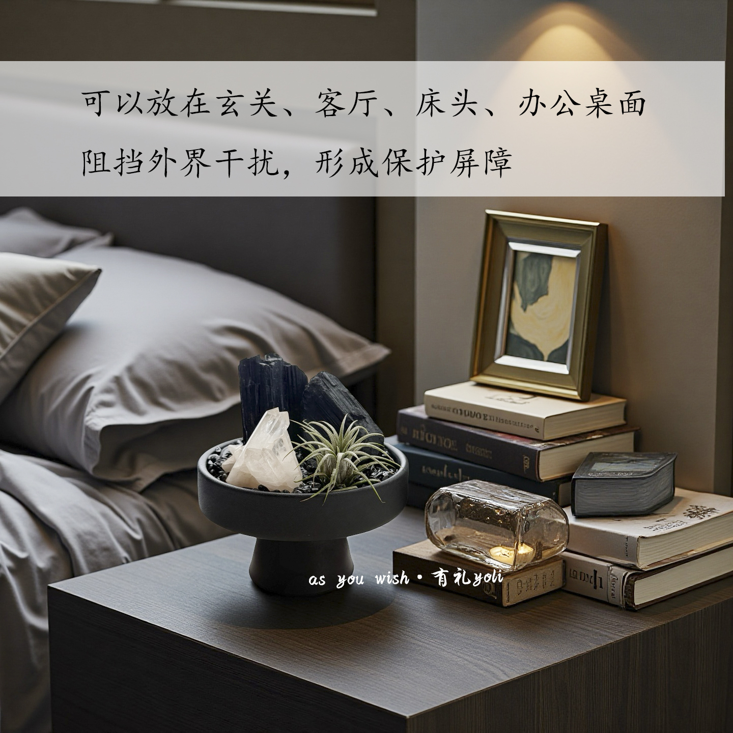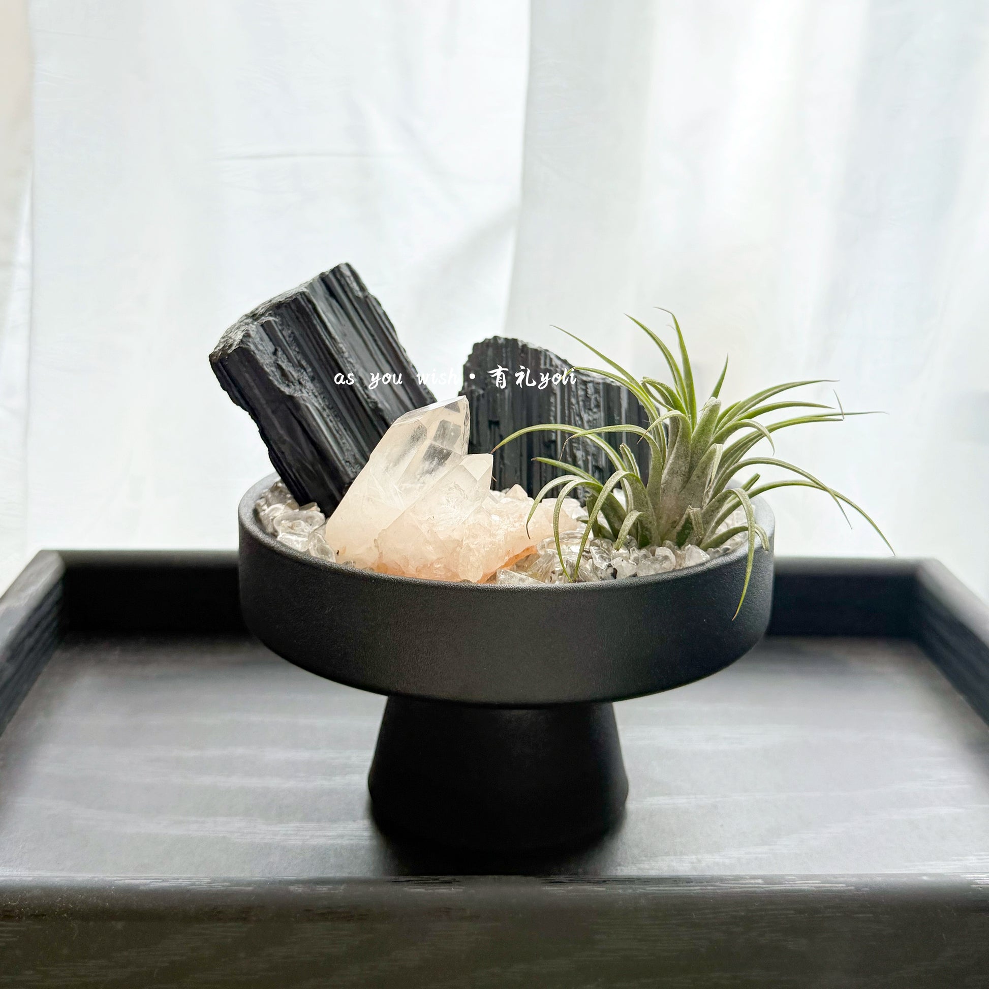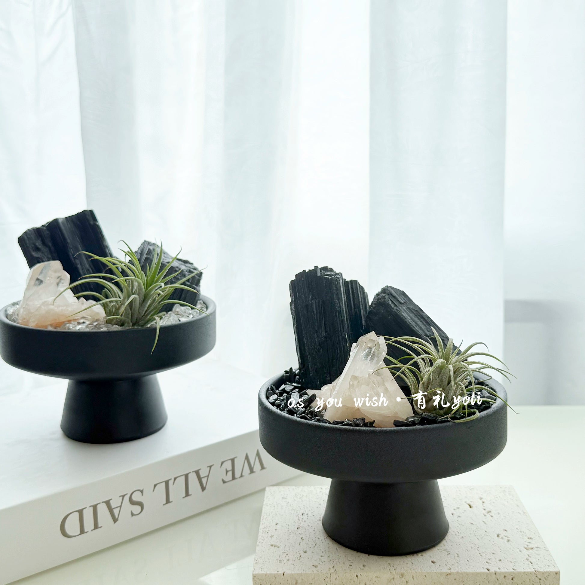有礼Yoli黑碧玺原石水晶桌面摆件盆栽家居玄关办公桌摆件节日礼物