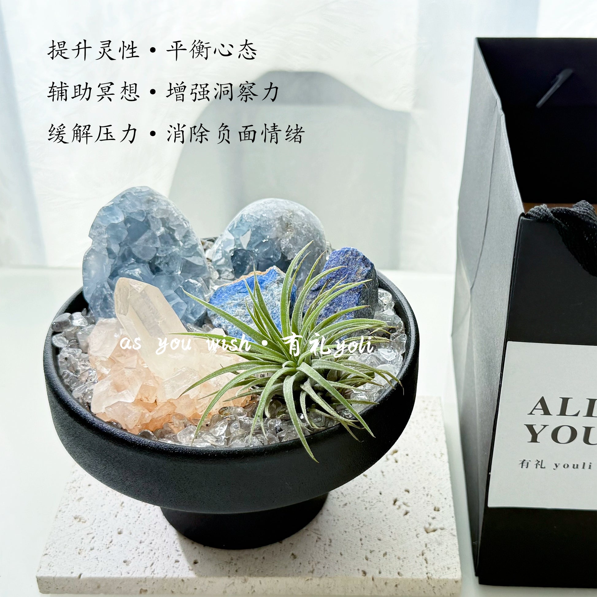 有礼yoli 天青石簇水晶盆栽摆件能量水晶簇盆景桌面卧室摆件礼物