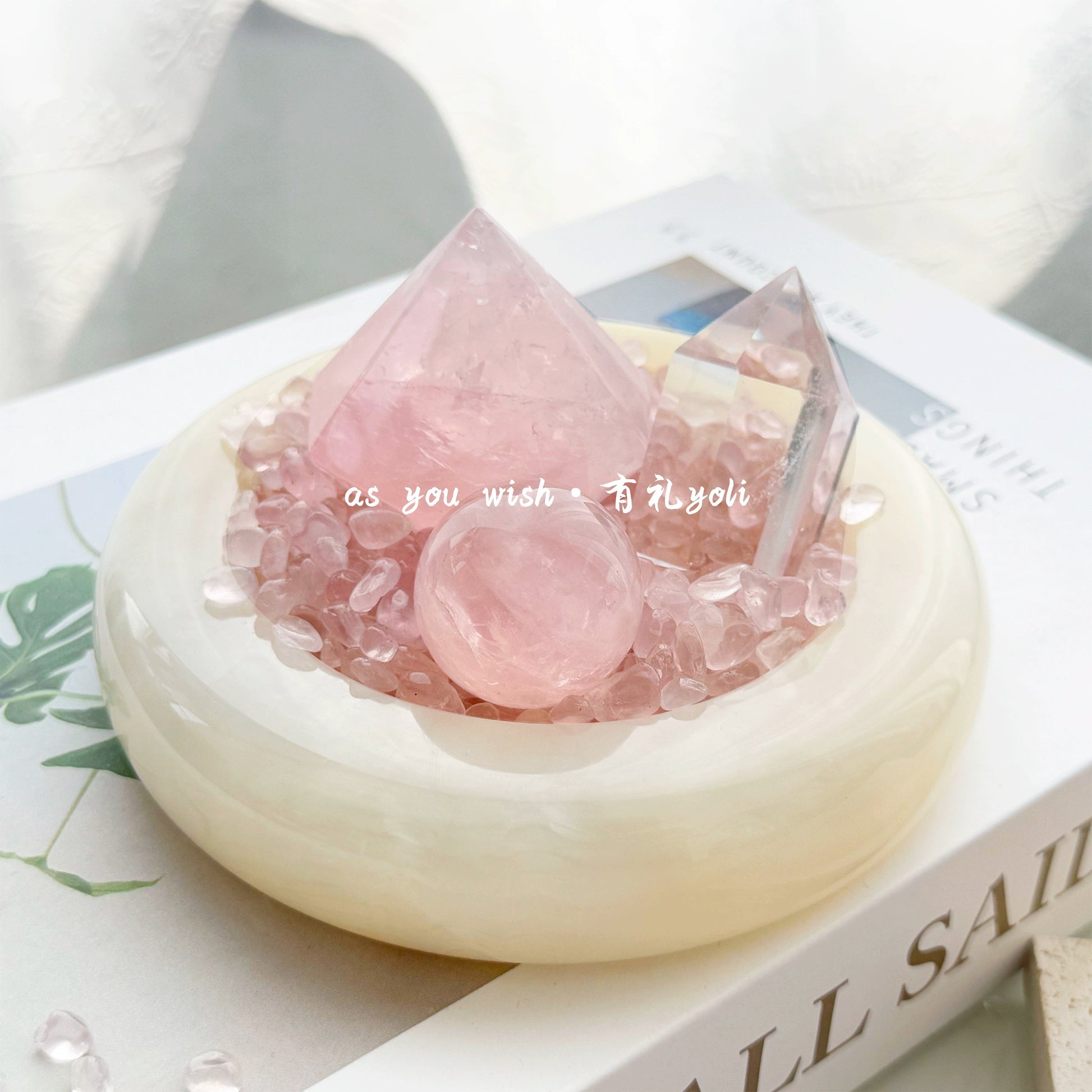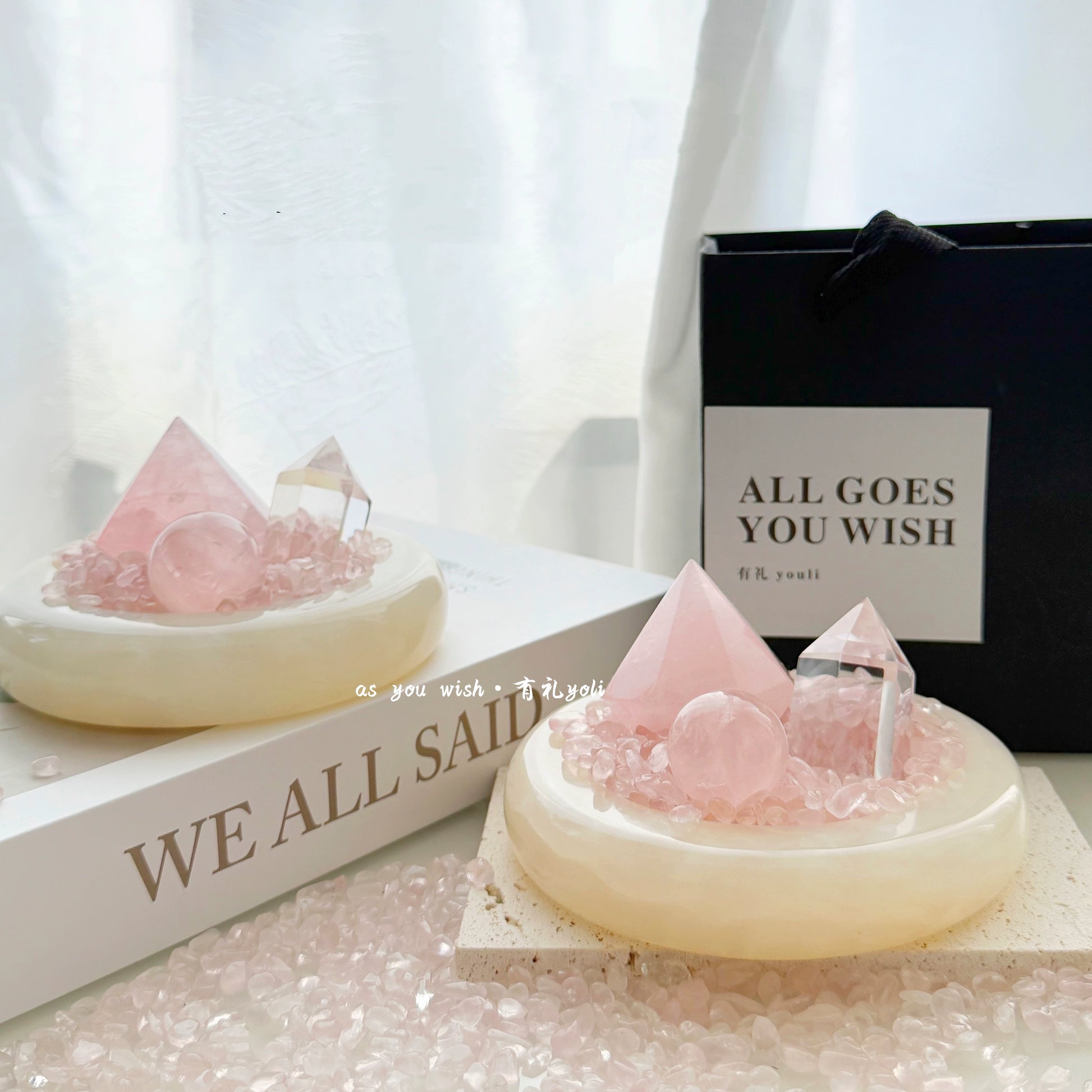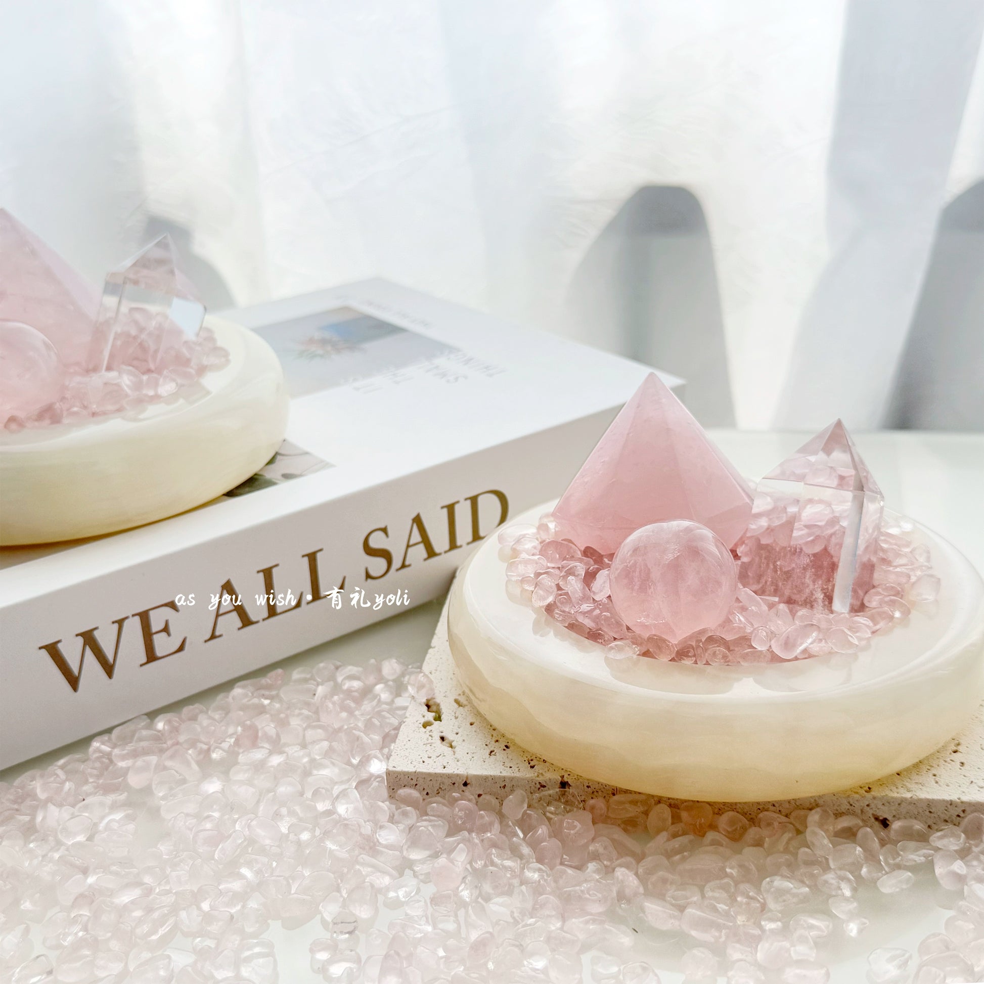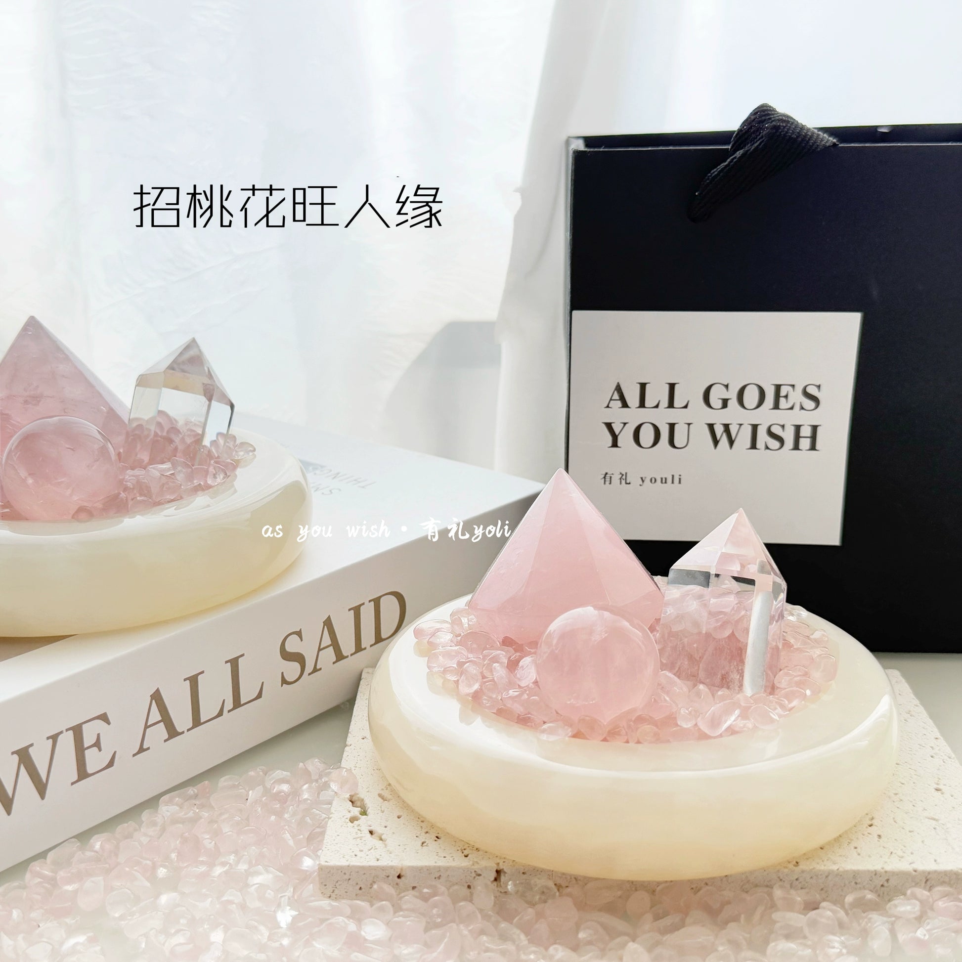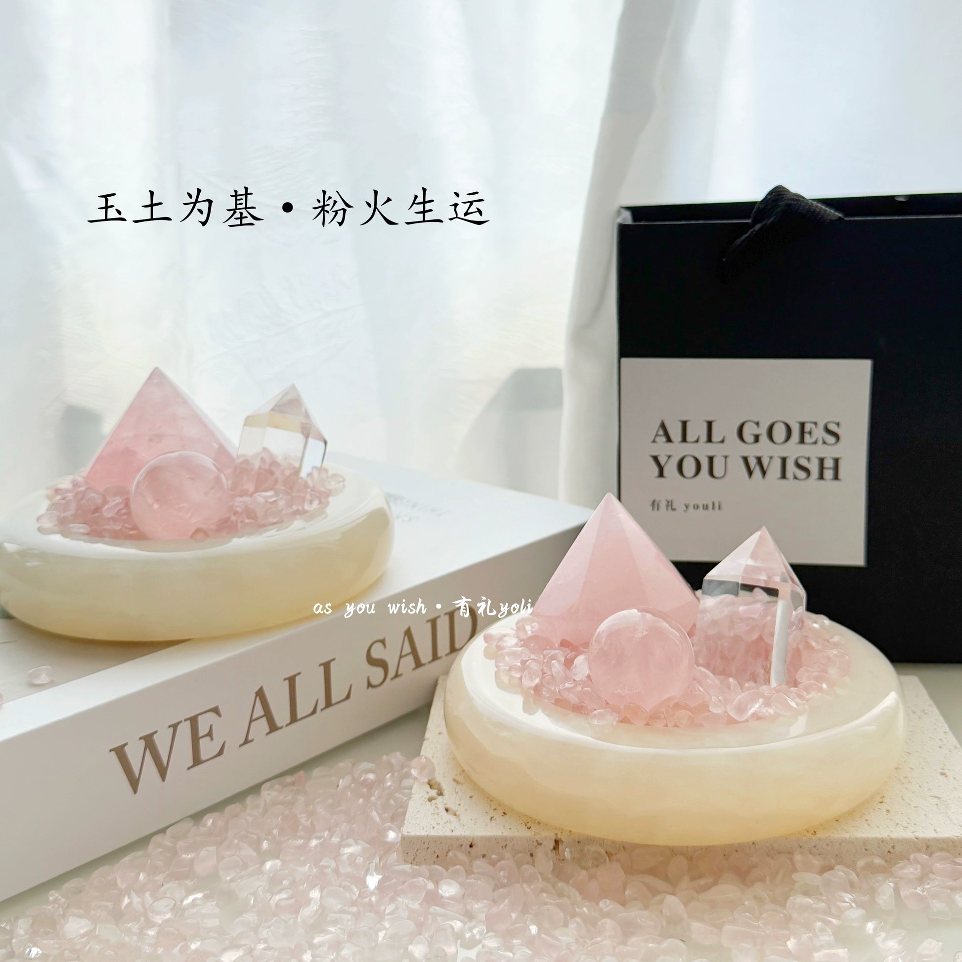 有礼youli纯天然粉水晶球摆件招桃花卧室桌面办公摆件七夕节礼物