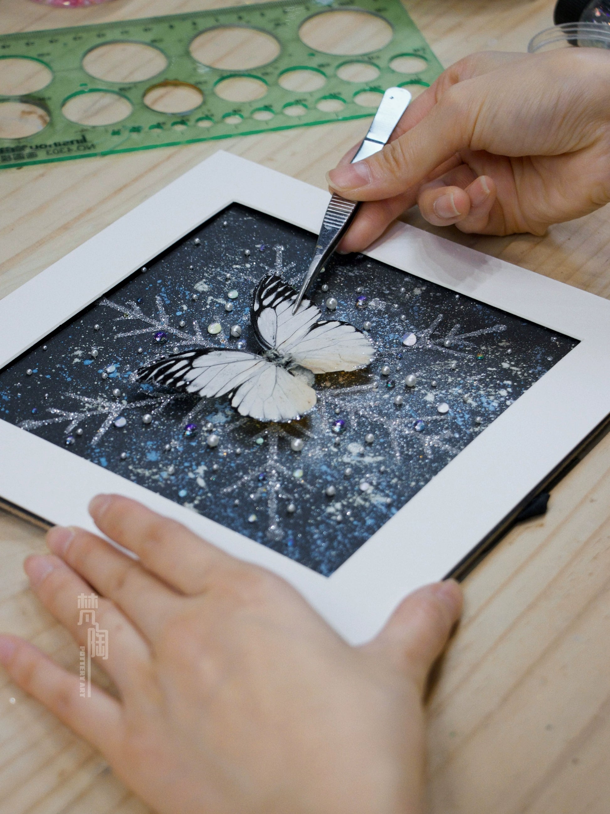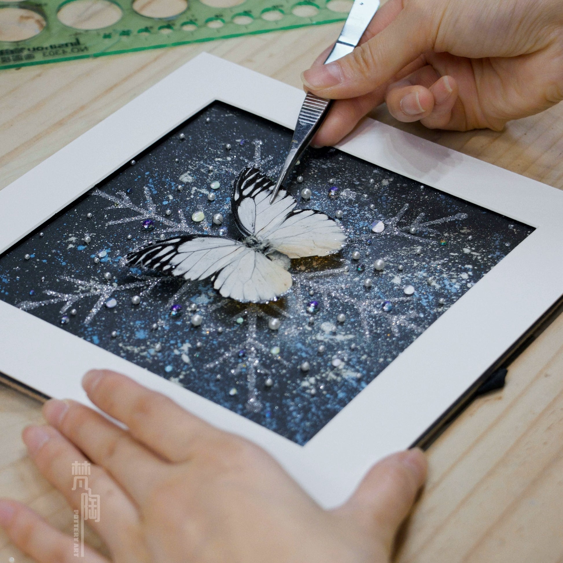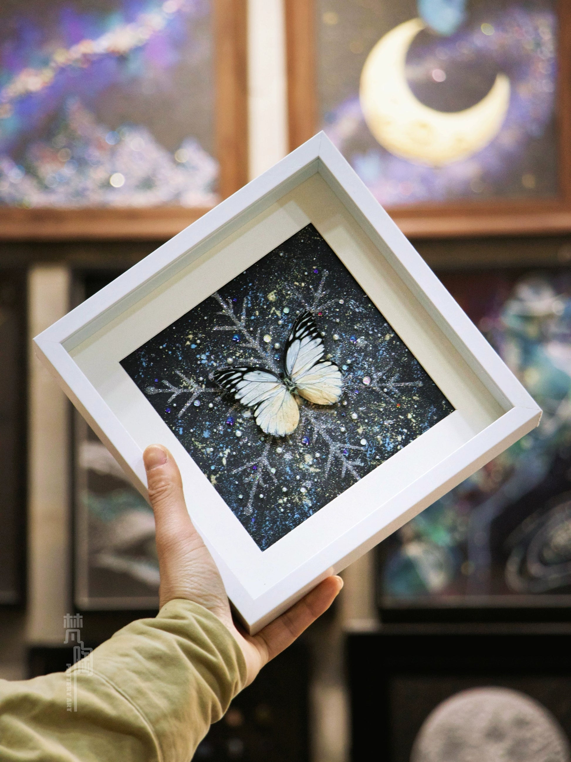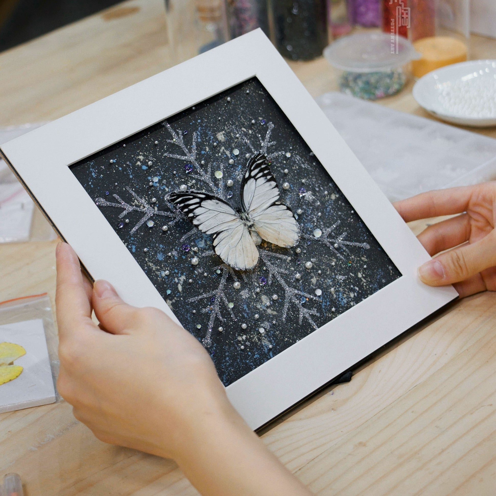 梵陶蝴蝶标本装饰画真蝴蝶标本礼物摆件精致礼物家居摆件雪花蝴蝶