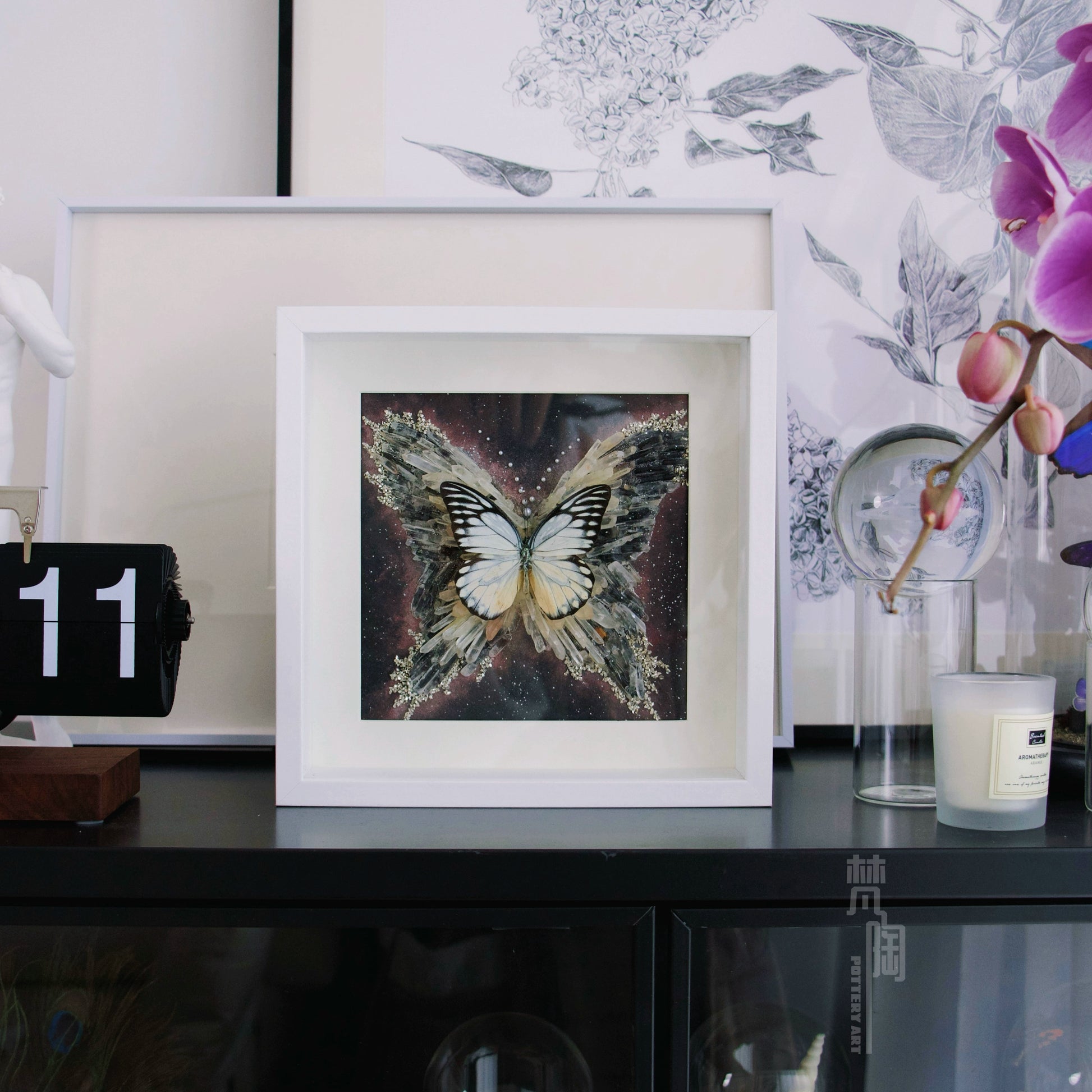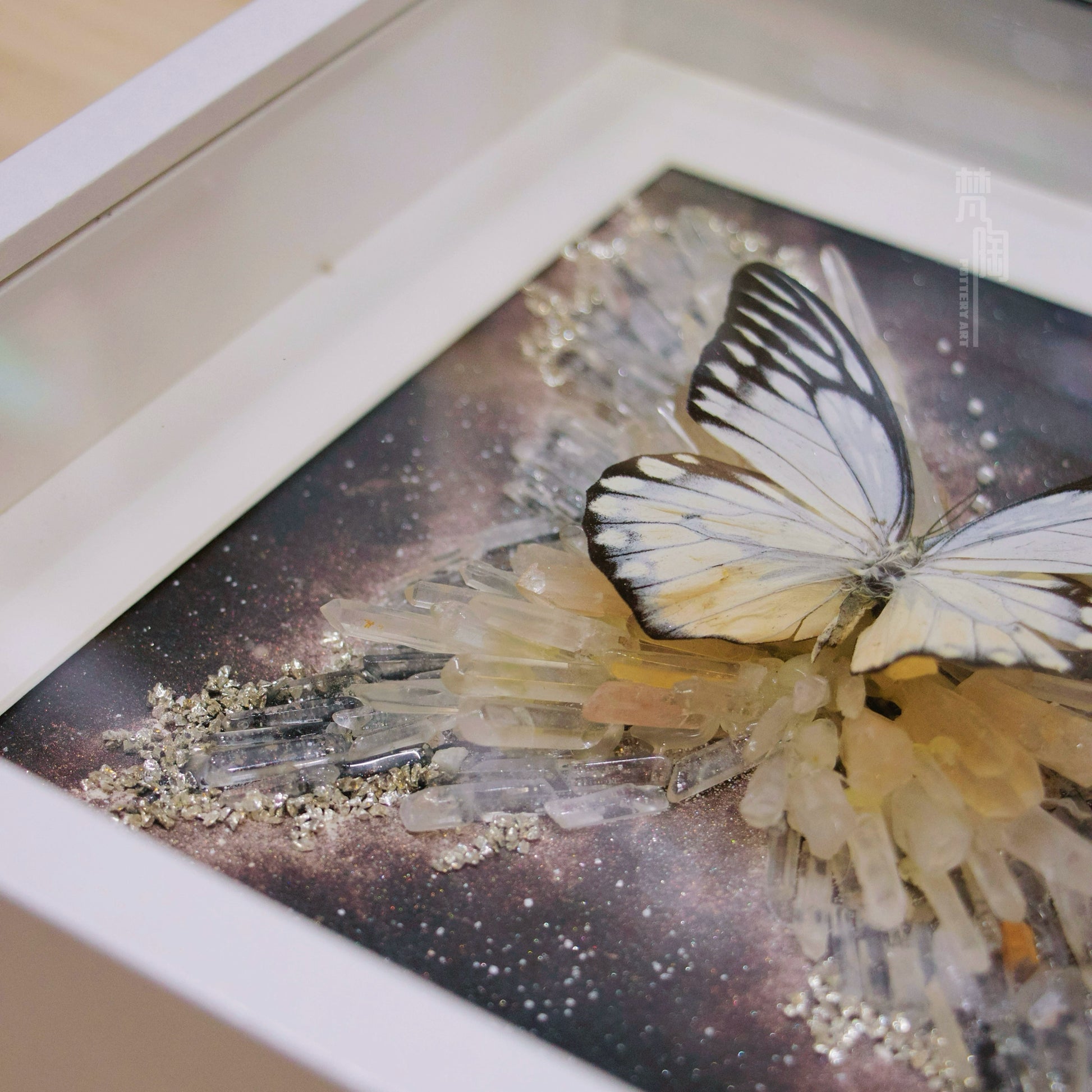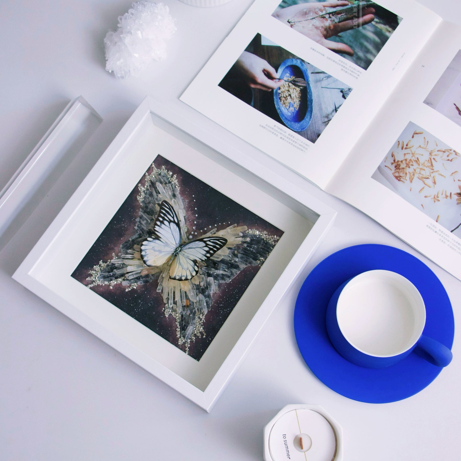 水晶柱蝴蝶标本|梵陶|简约桌面摆台真蝴蝶标本家居装饰画礼物