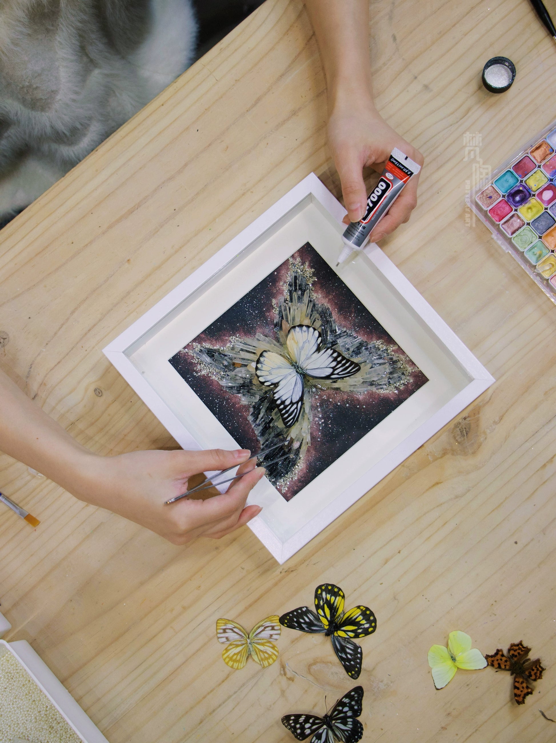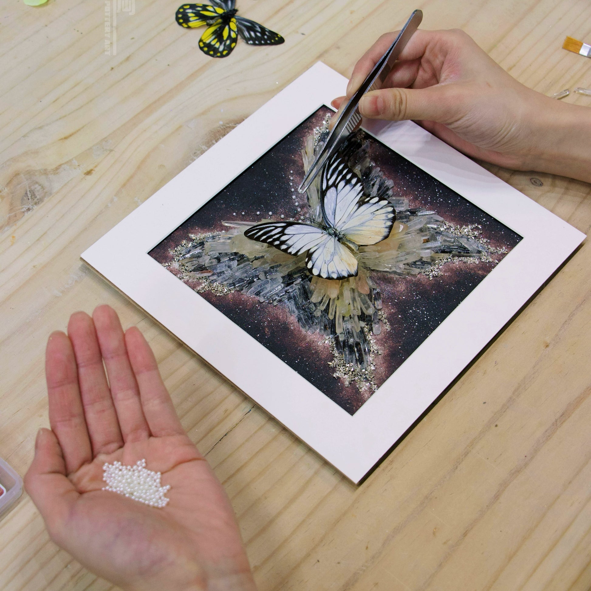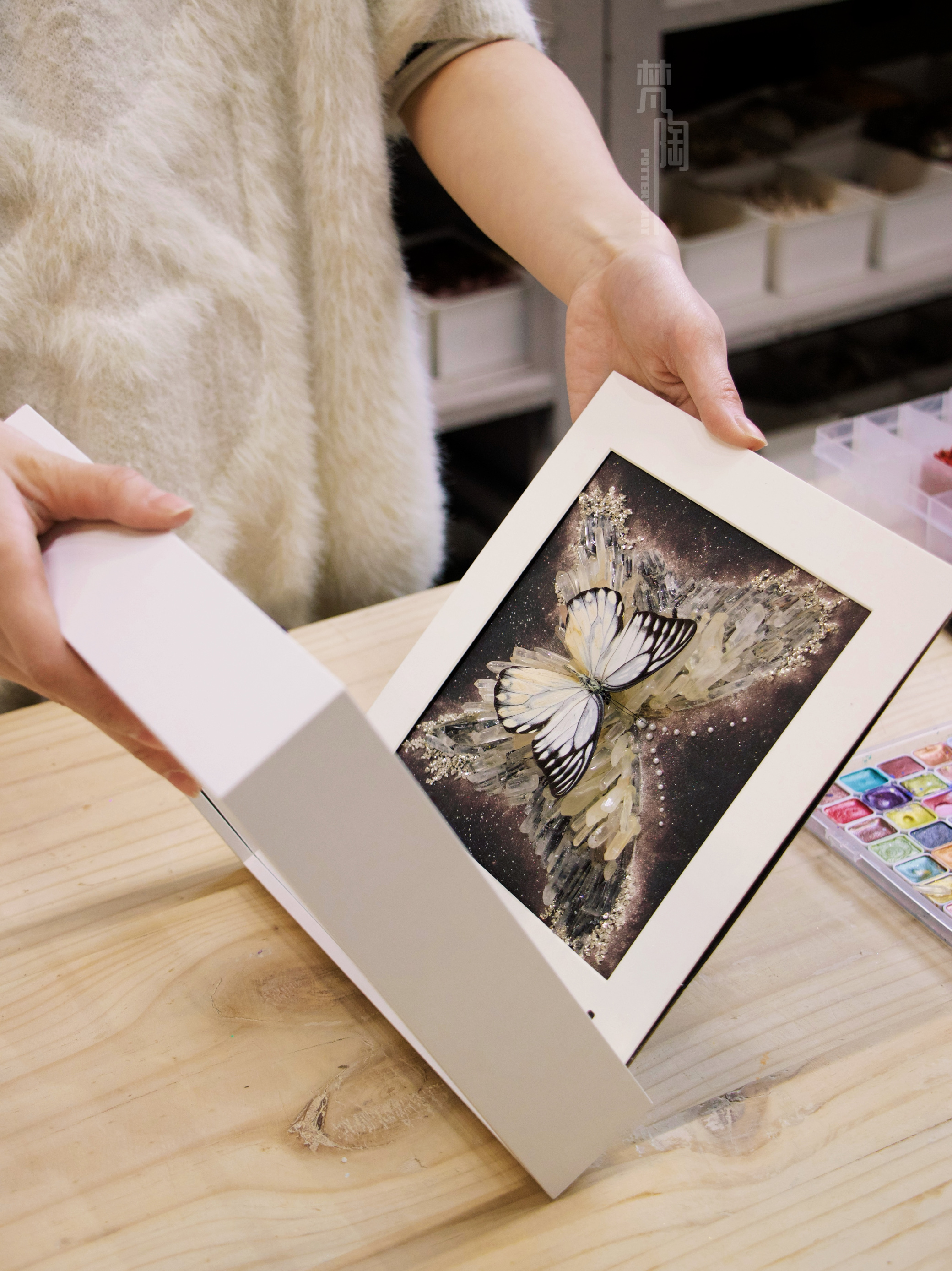 水晶柱蝴蝶标本|梵陶|简约桌面摆台真蝴蝶标本家居装饰画礼物
