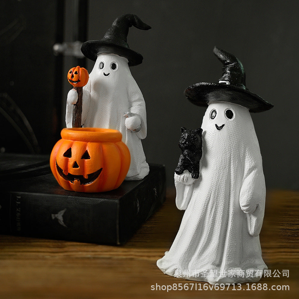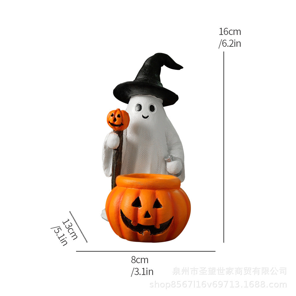 跨境万圣节南瓜法师幽灵装饰品俏皮可爱花园拍摄道具南瓜树脂摆件