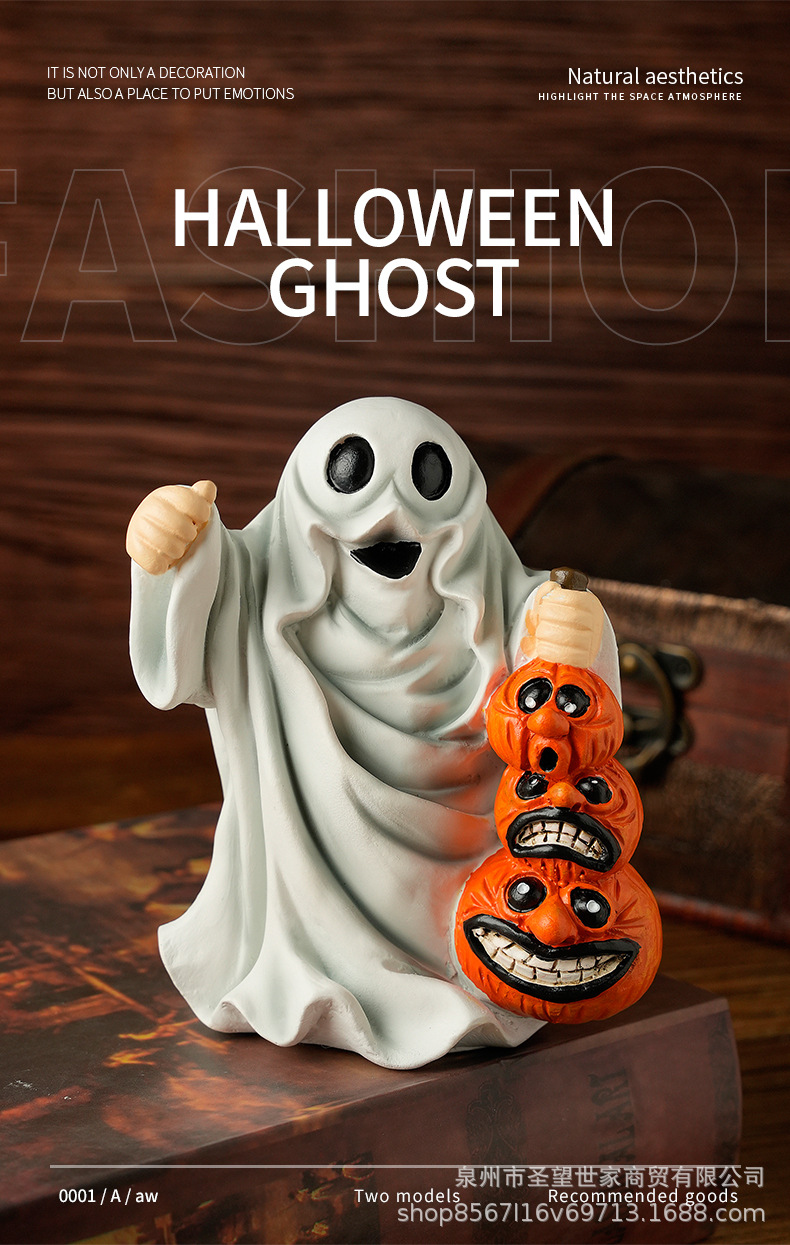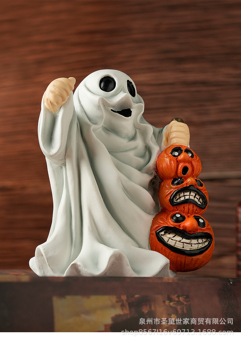 跨境万圣节Middle finger Cute Ghost怪物南瓜幽灵提南瓜树脂摆件