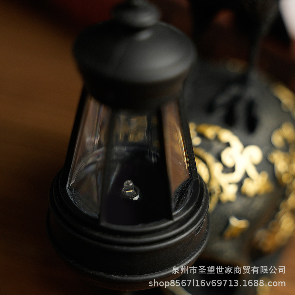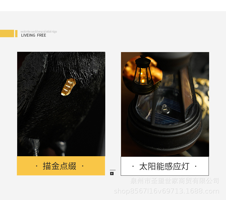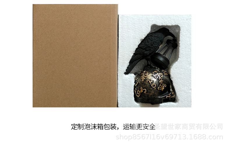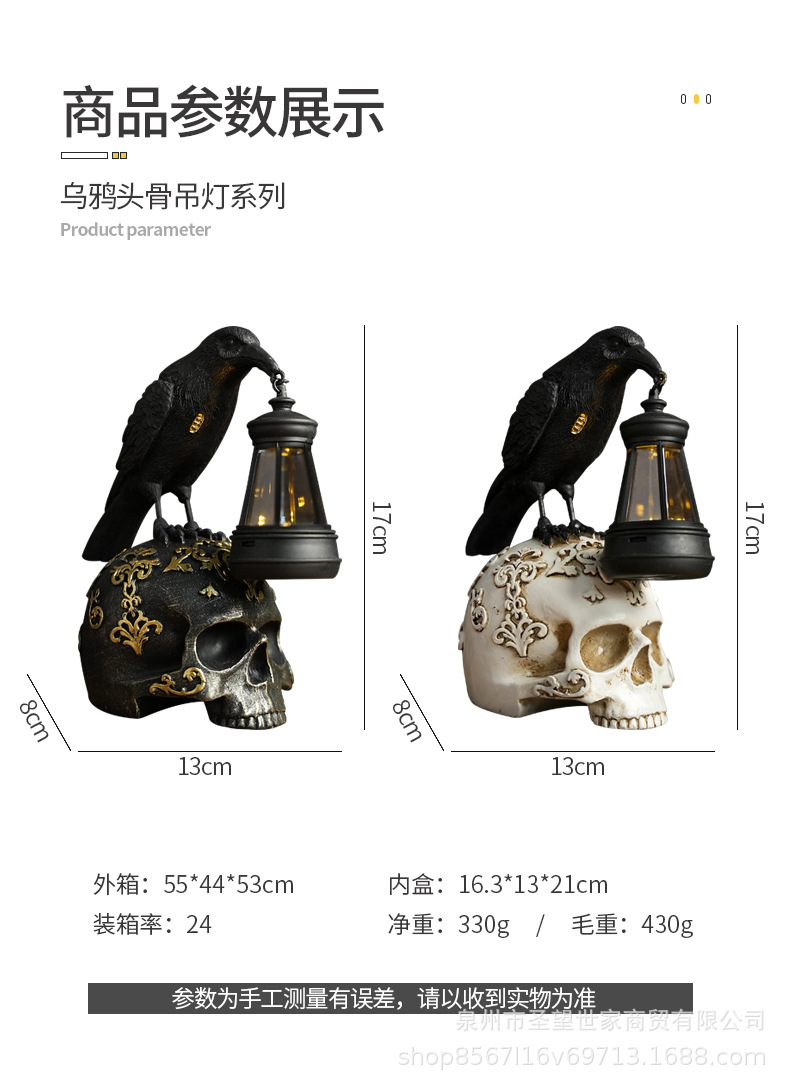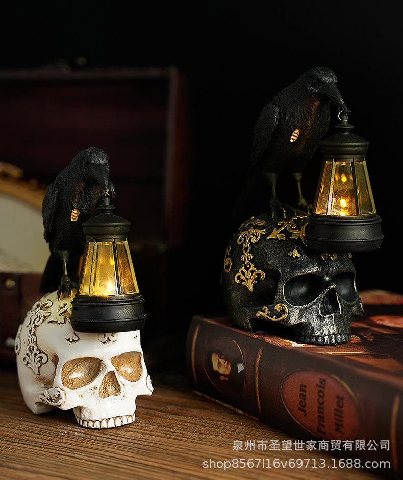 跨境新品万圣节乌鸦摆件复古桌面骷髅道具树脂摆件太阳能鬼节装饰