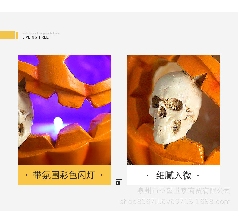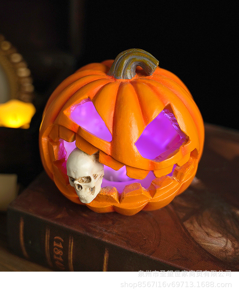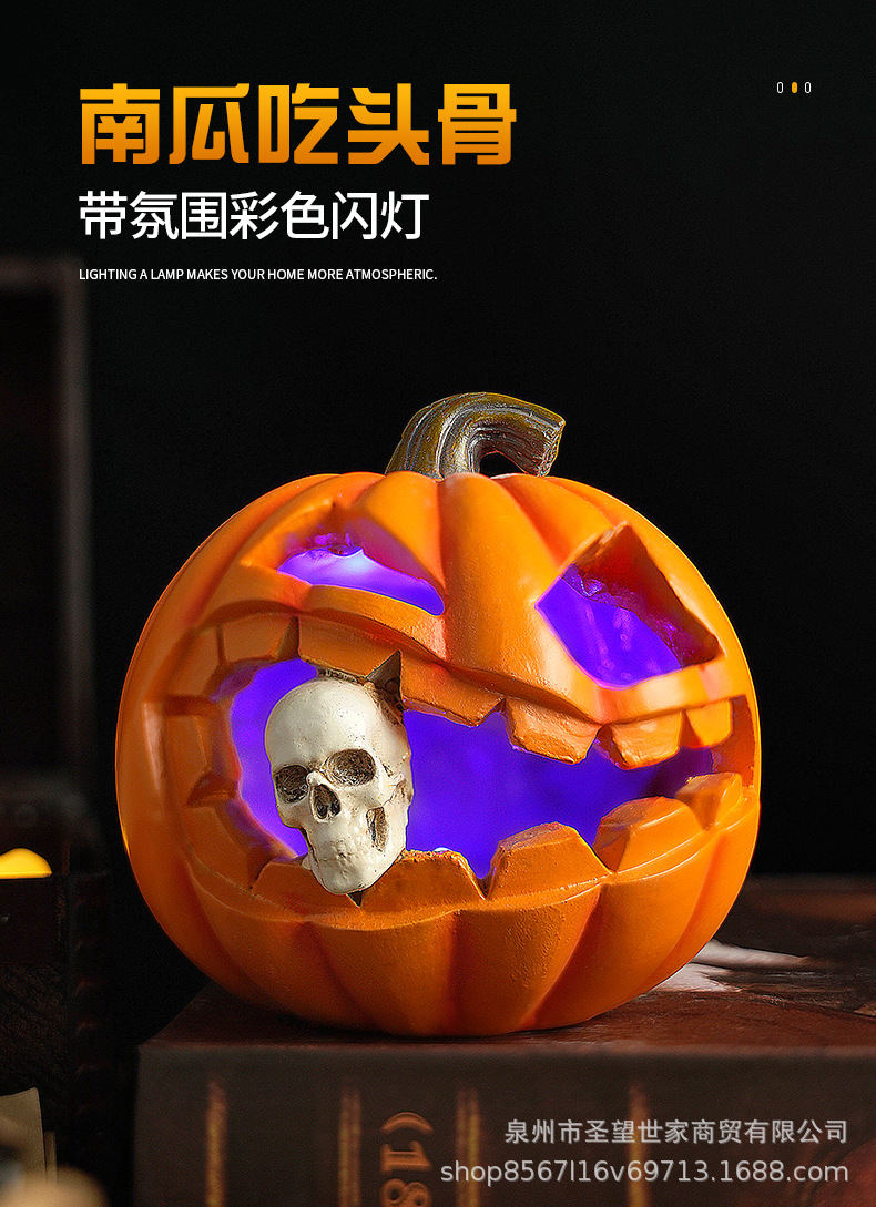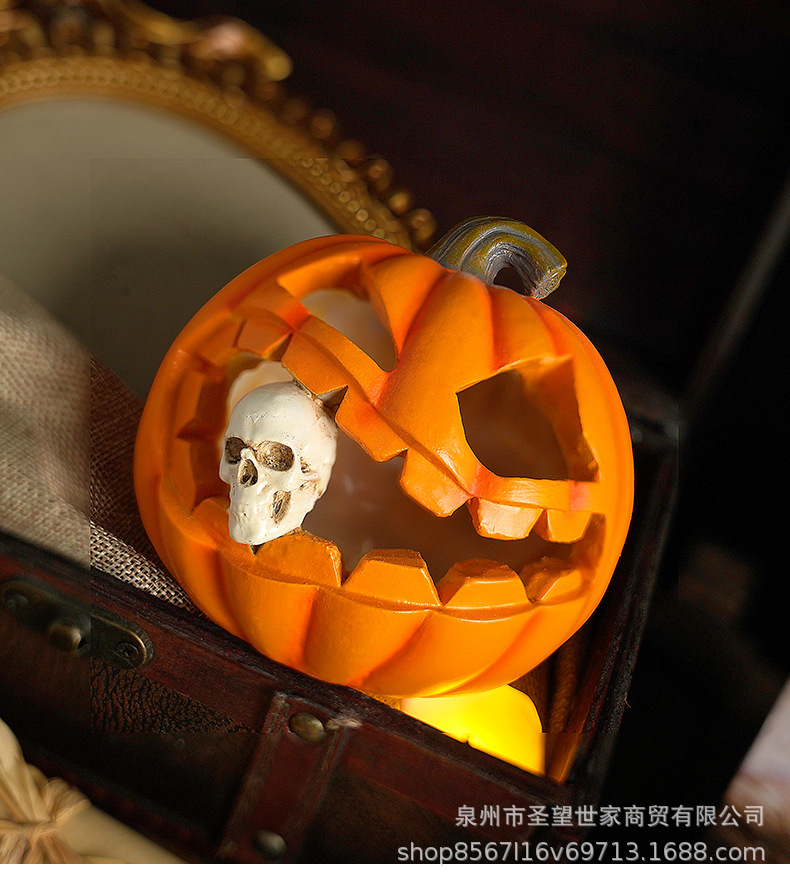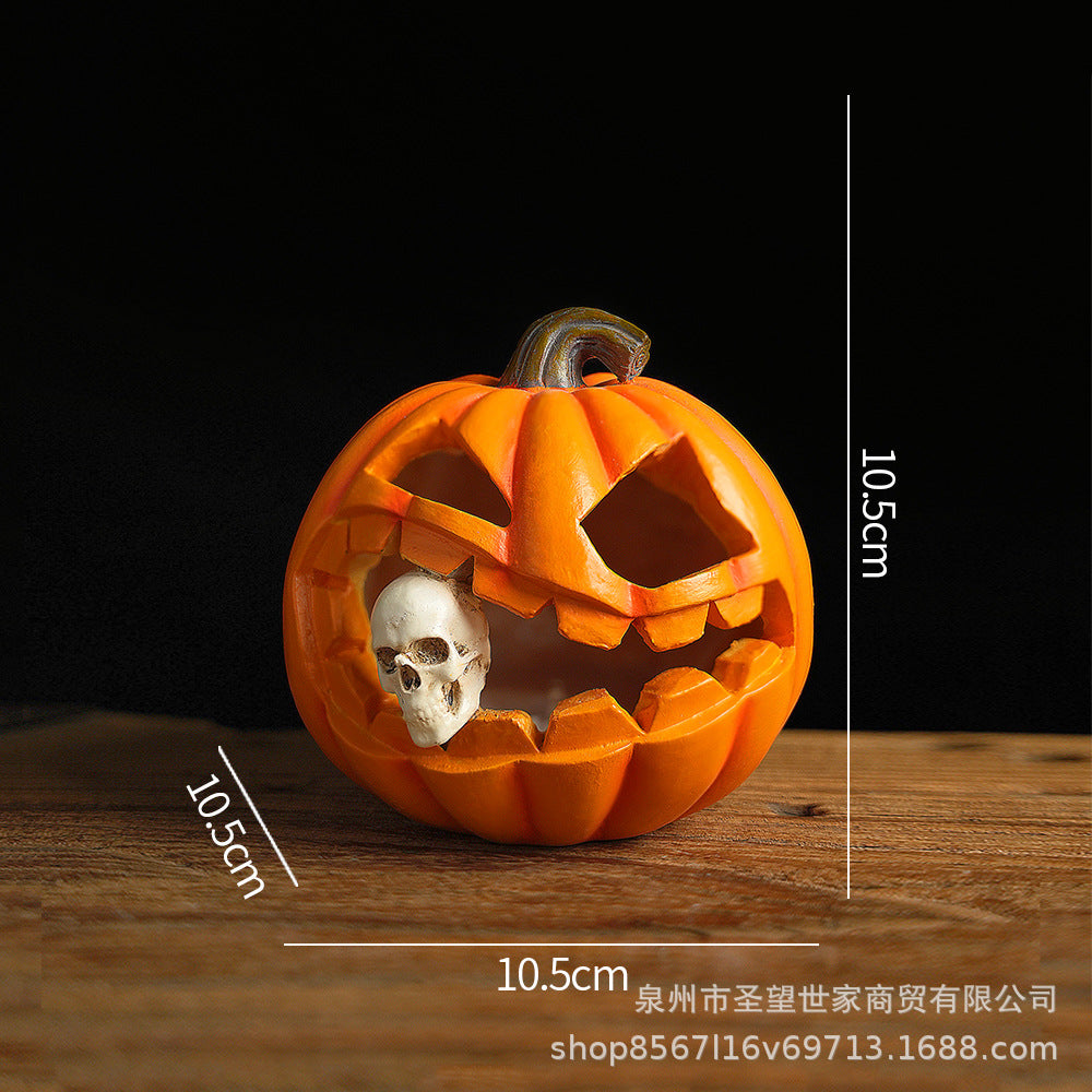 跨境新品万圣节南瓜幽灵复古桌面骷髅道具树脂摆件创意鬼节装饰品