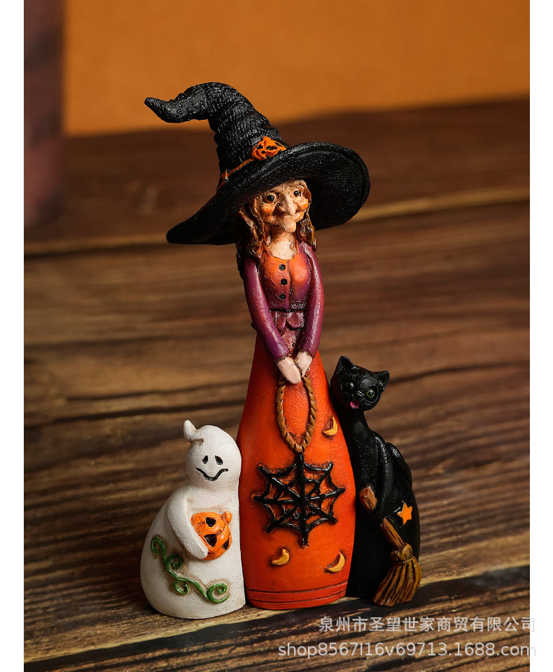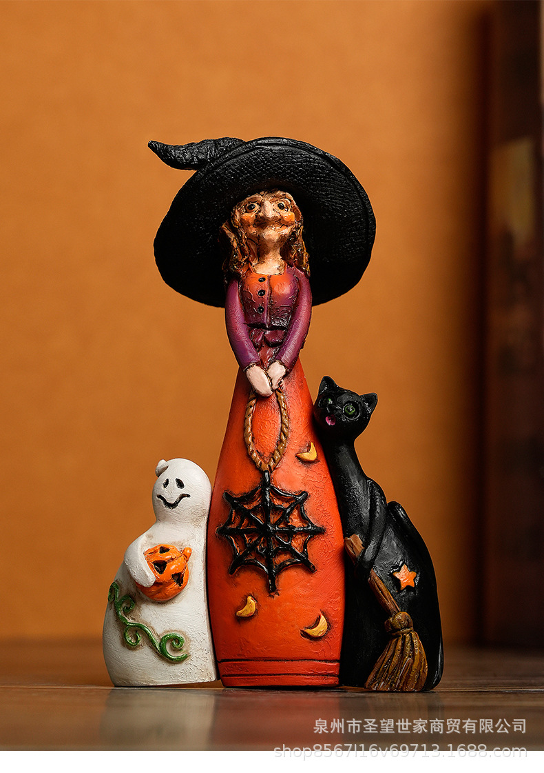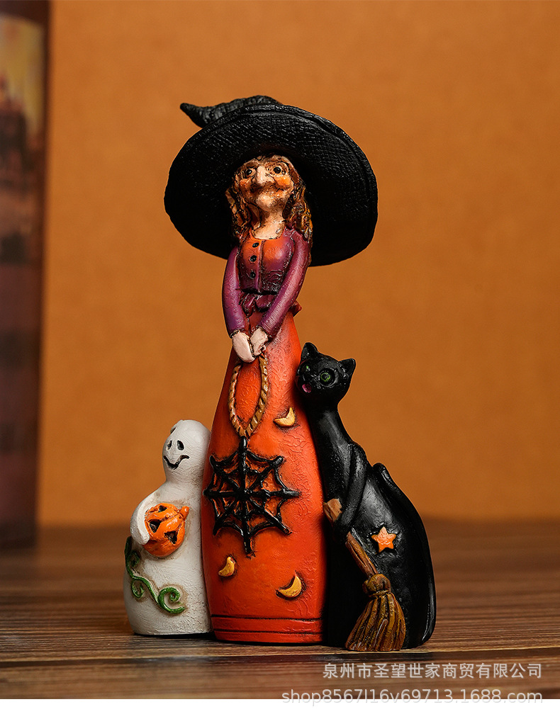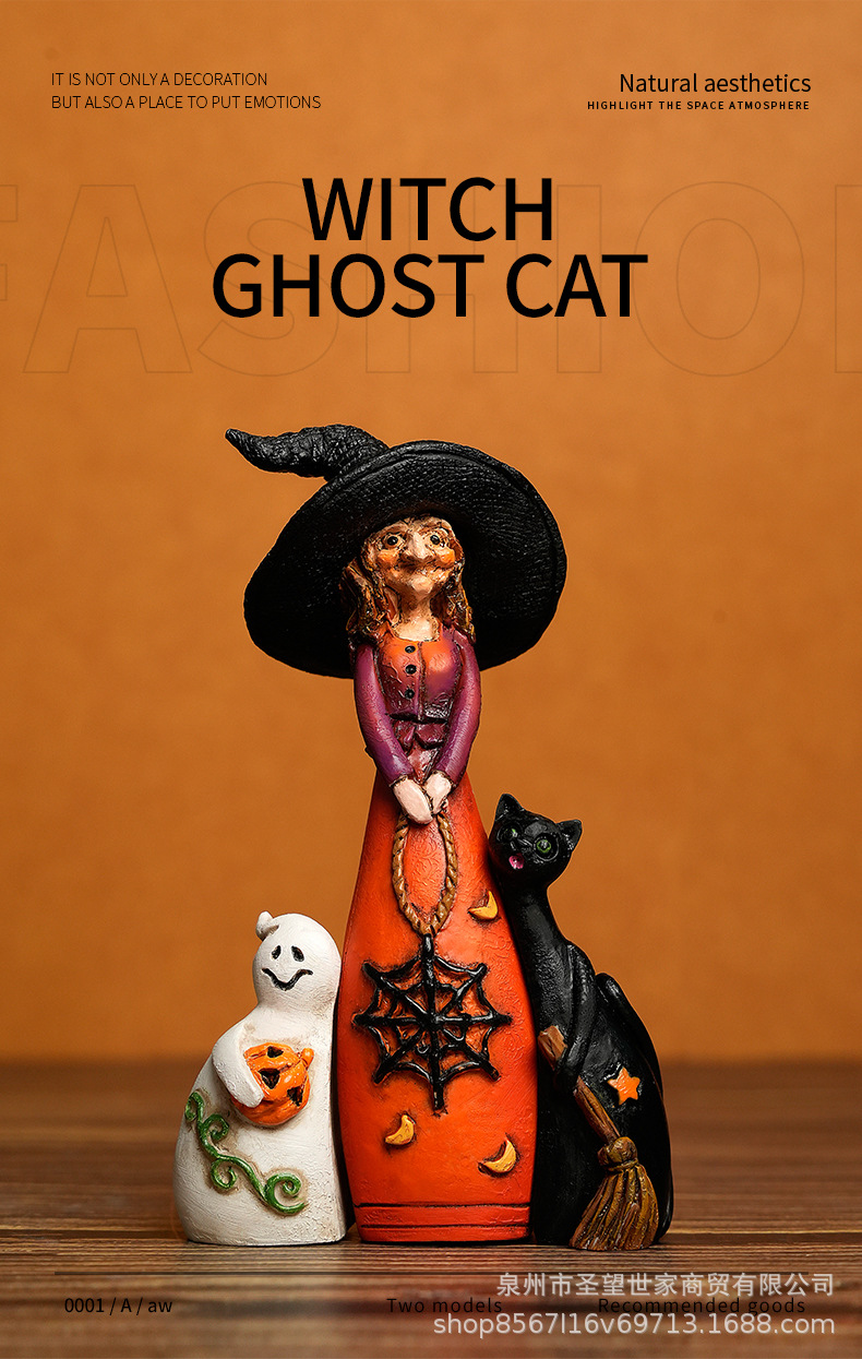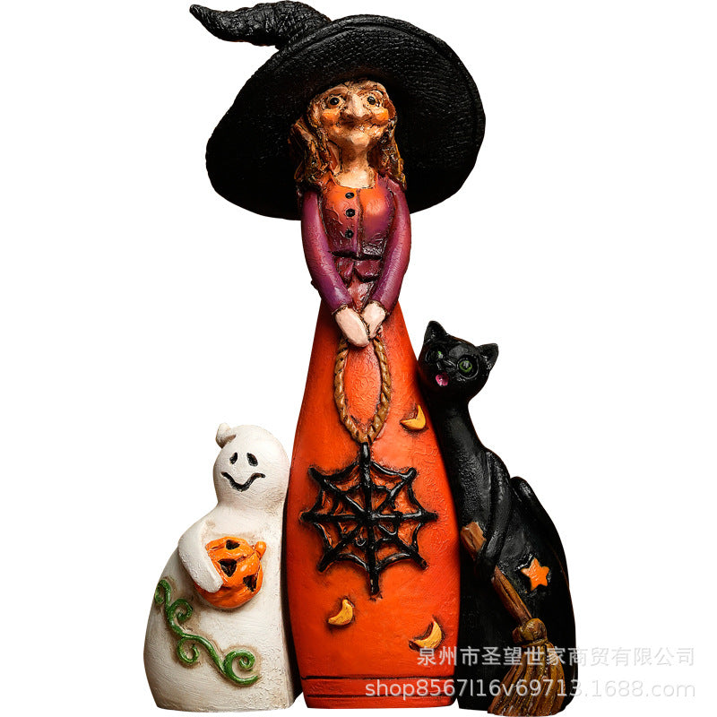 跨境新品创意工艺品万圣节三剑客女巫幽灵猫装饰树脂雕像装饰摆件