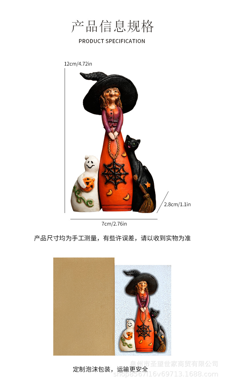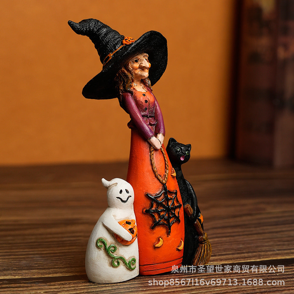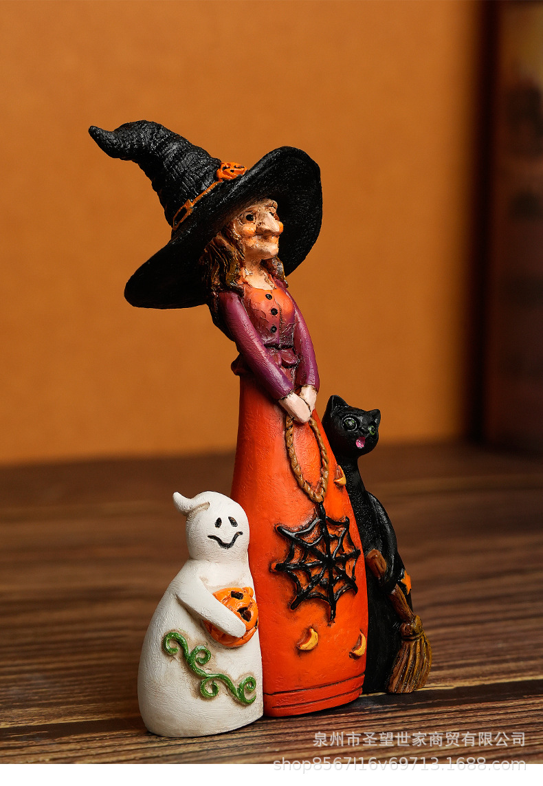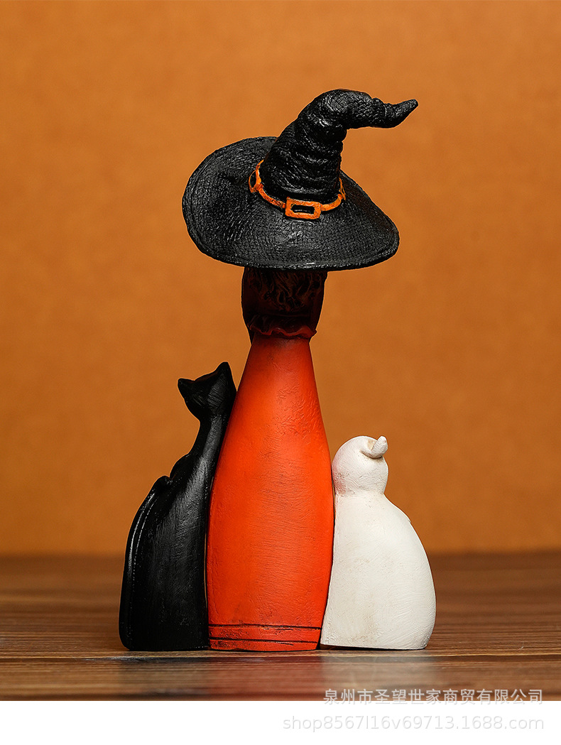 跨境新品创意工艺品万圣节三剑客女巫幽灵猫装饰树脂雕像装饰摆件