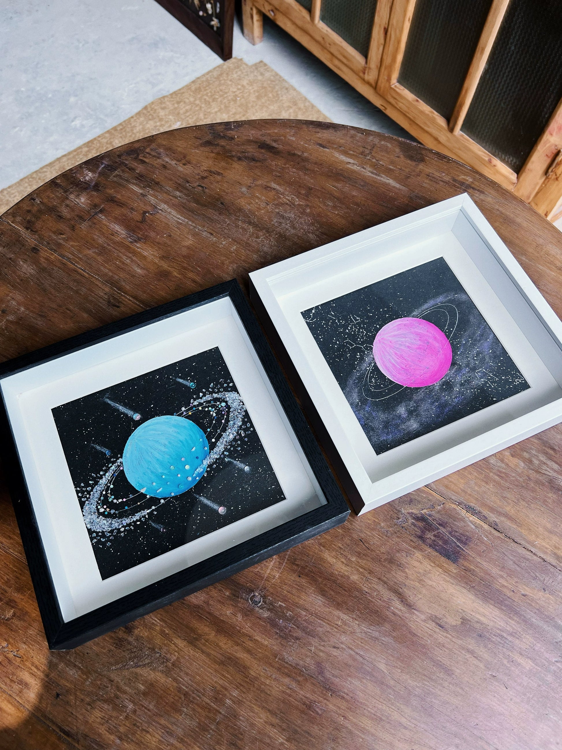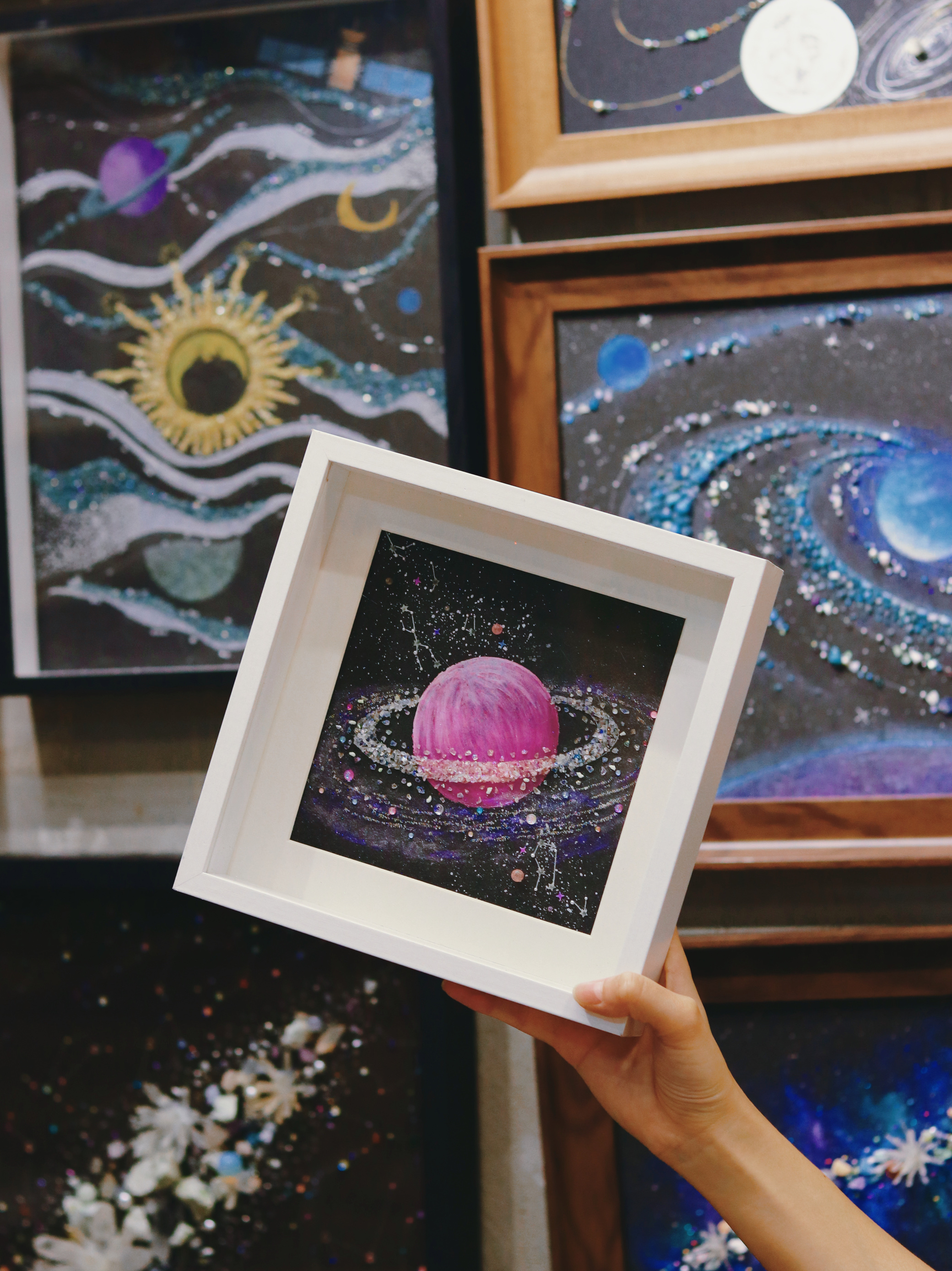 迷你粉色小行星相框玻璃防尘闺蜜礼物女朋友礼物推荐办公桌面摆件