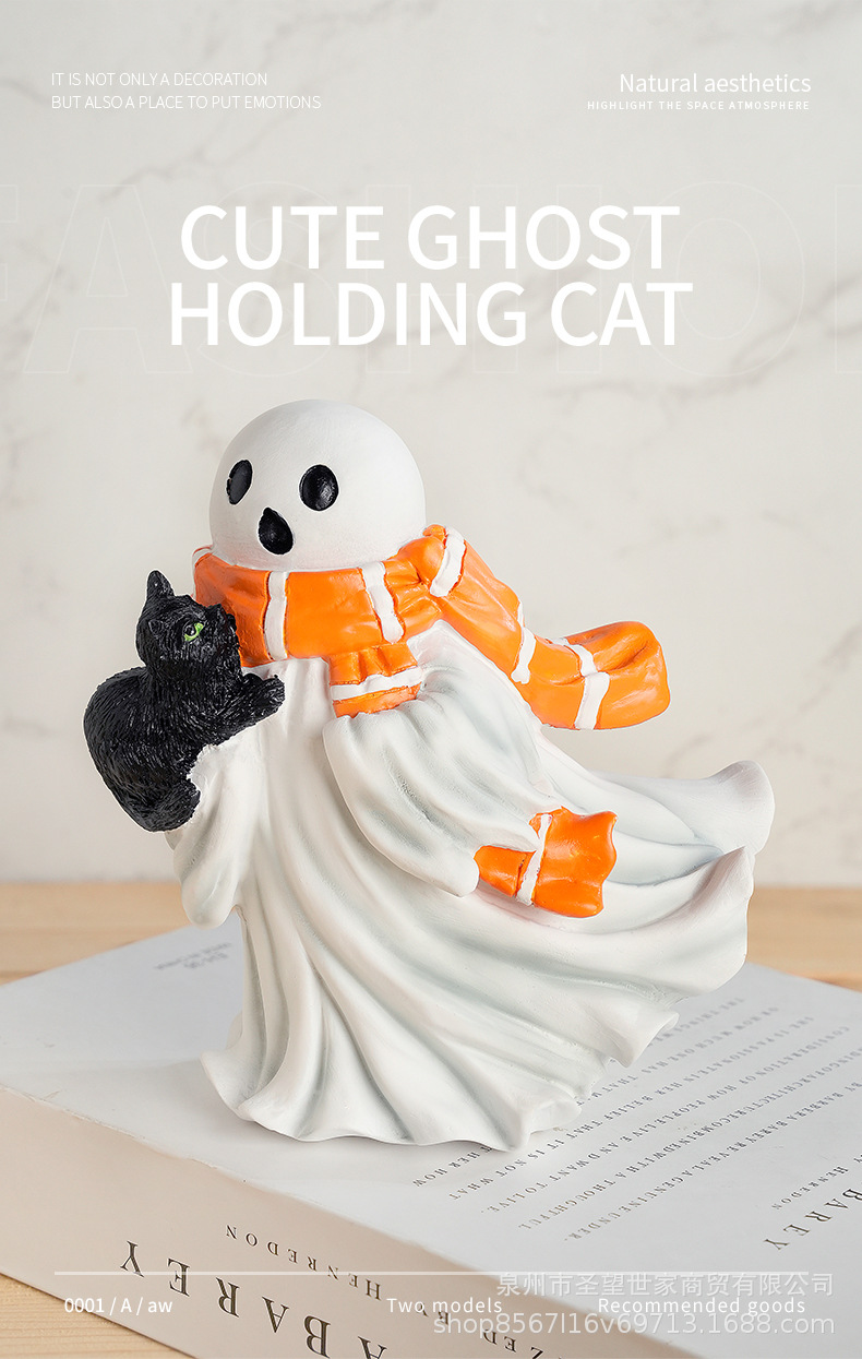 2025跨境新品万圣节节日装饰品摆件卡通幽灵黑猫家居桌面氛围装饰