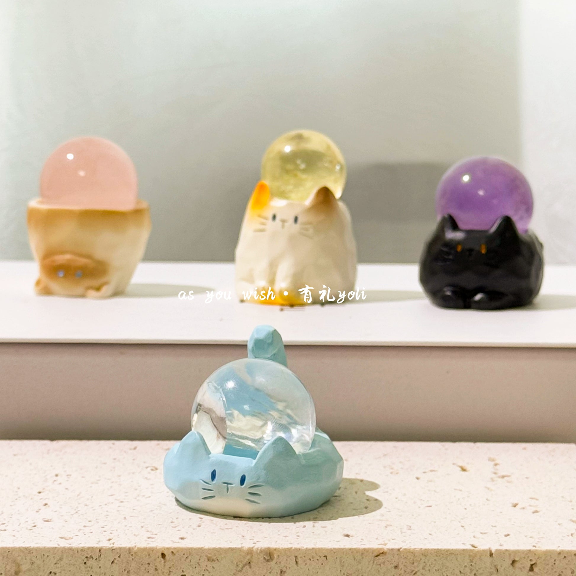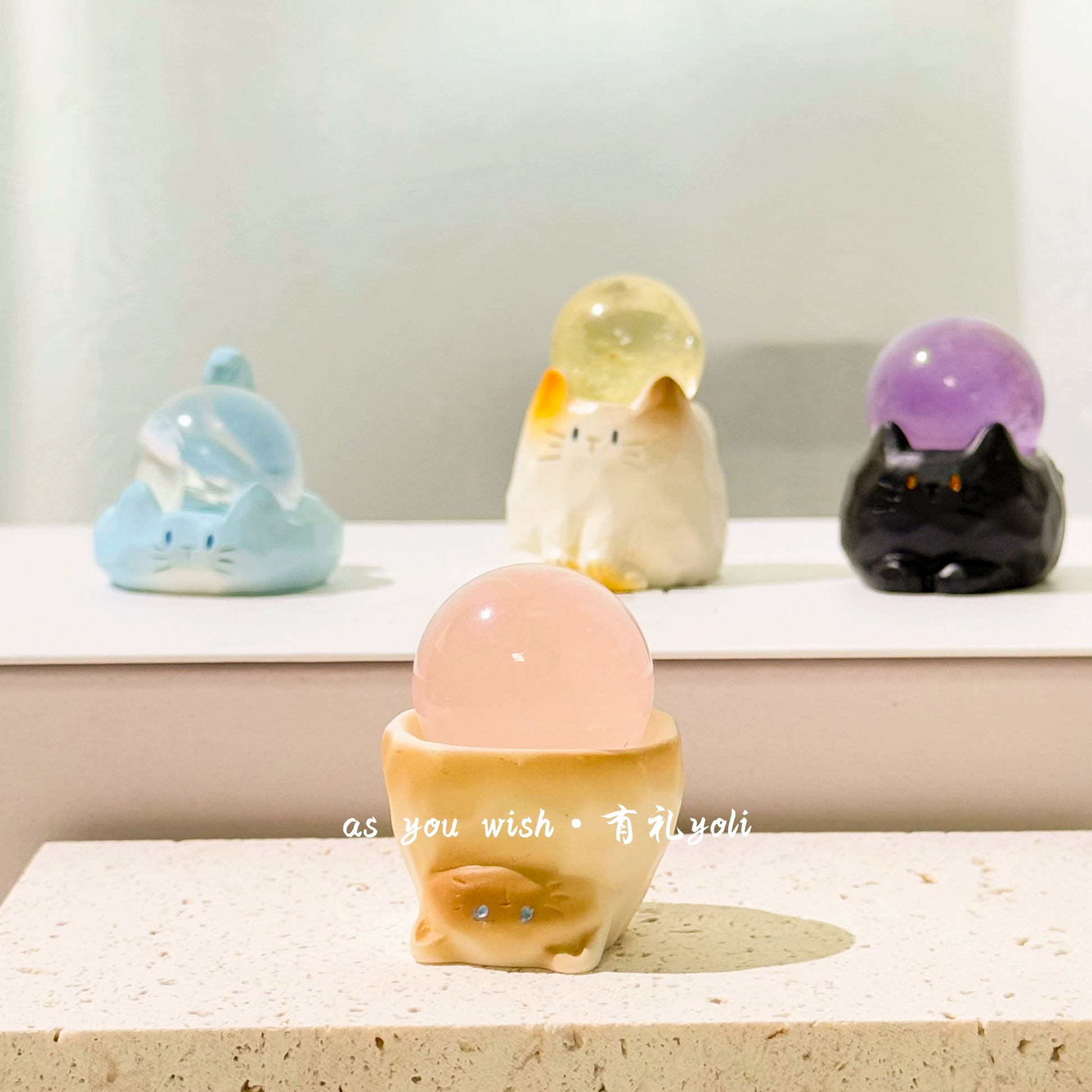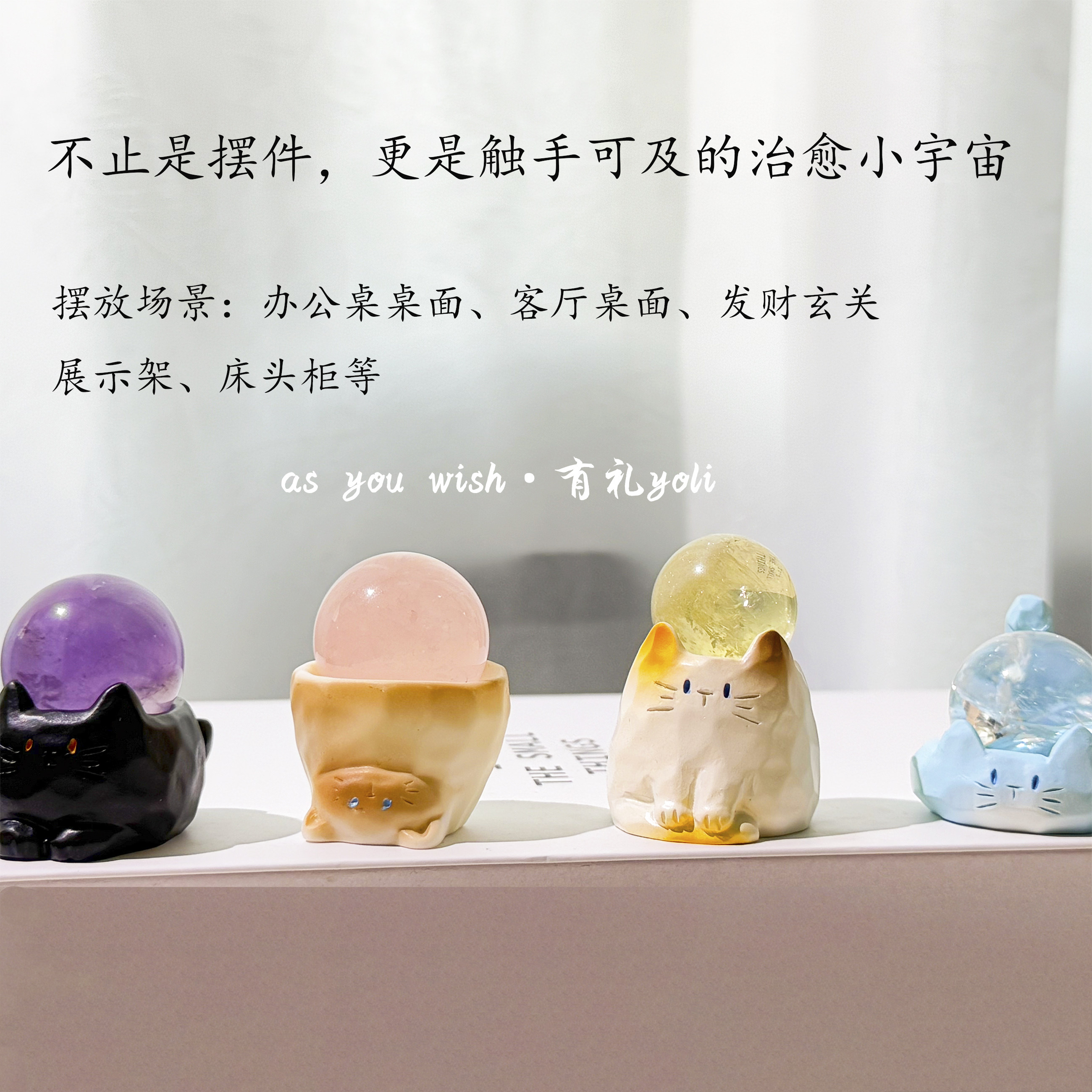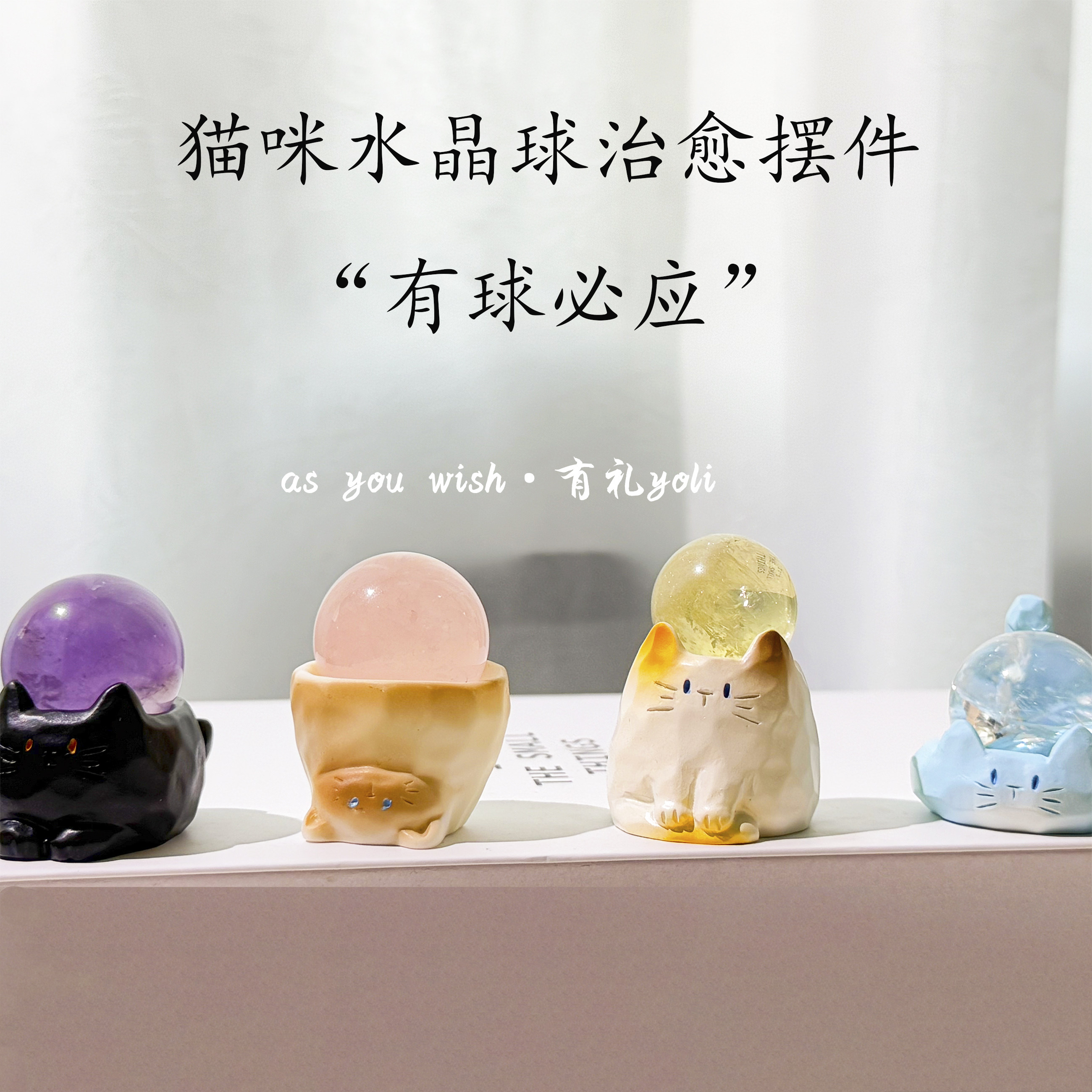 yoli有礼水晶球摆件猫咪治愈黄紫白粉水晶球办公桌面摆件节日礼物
