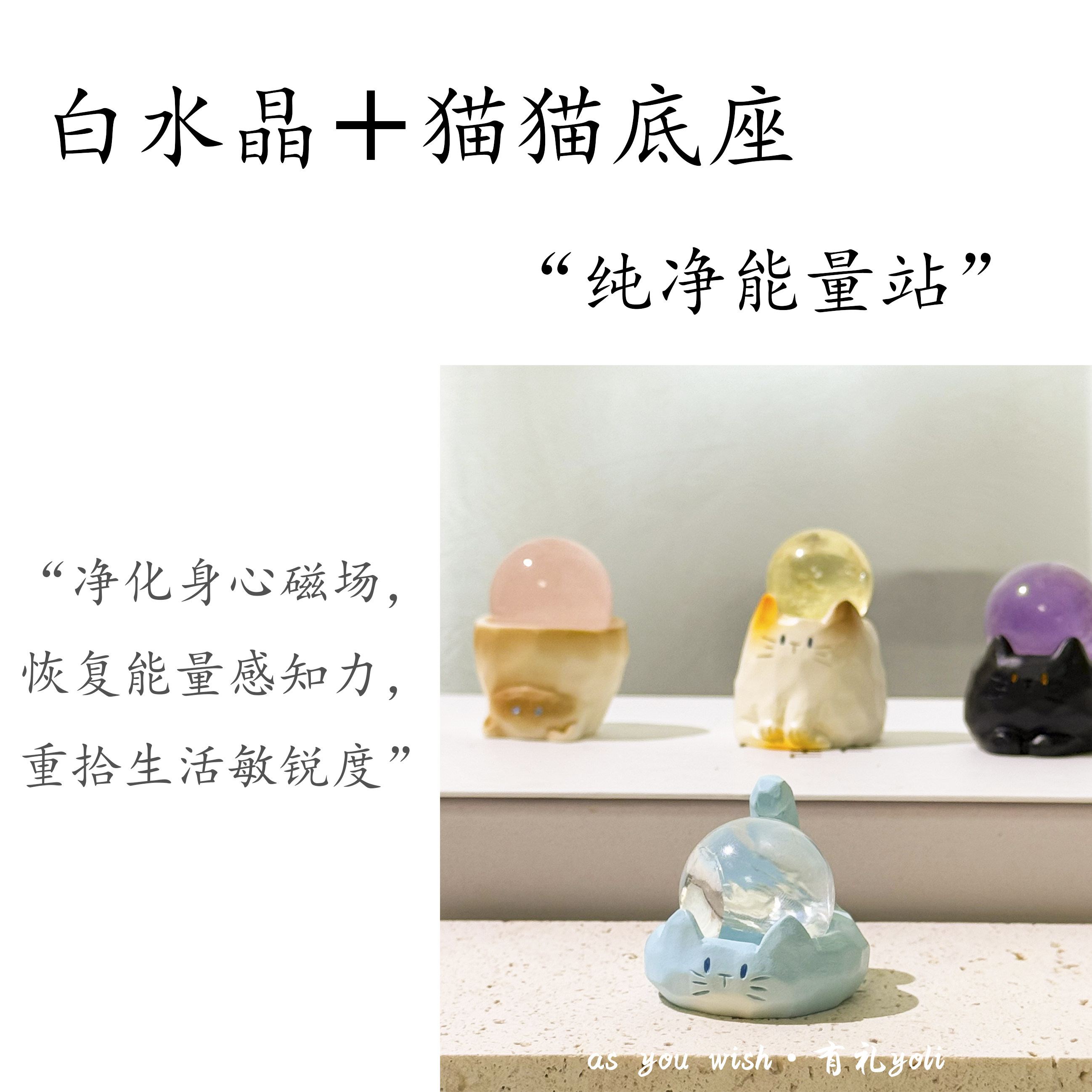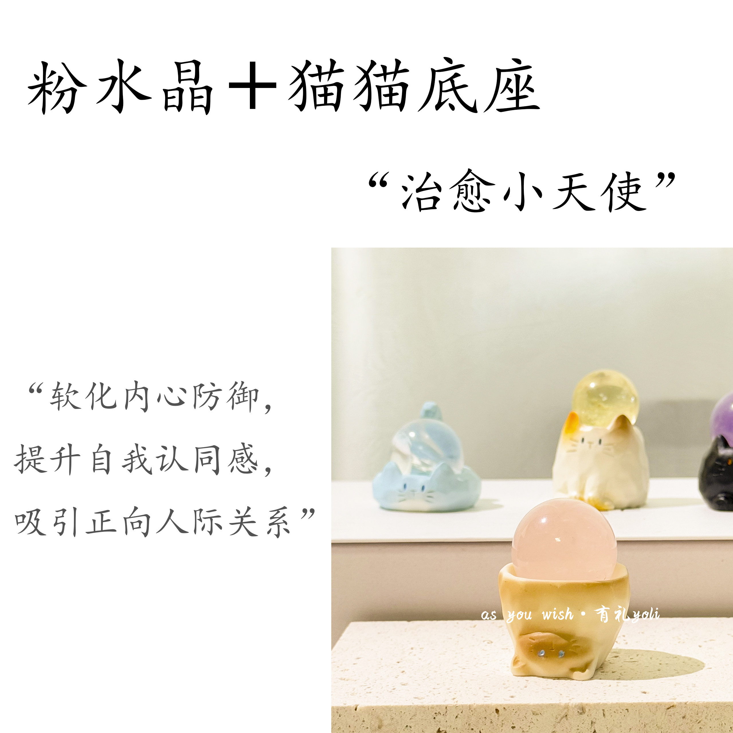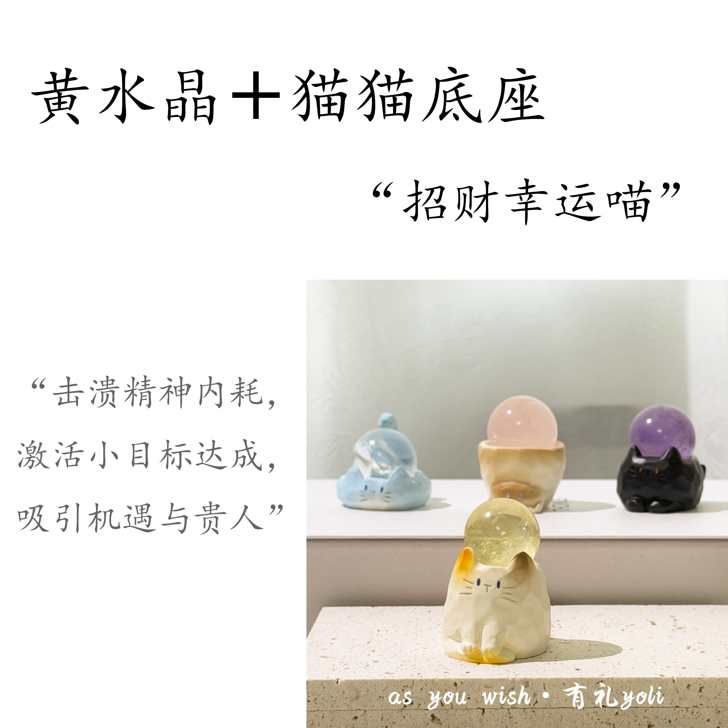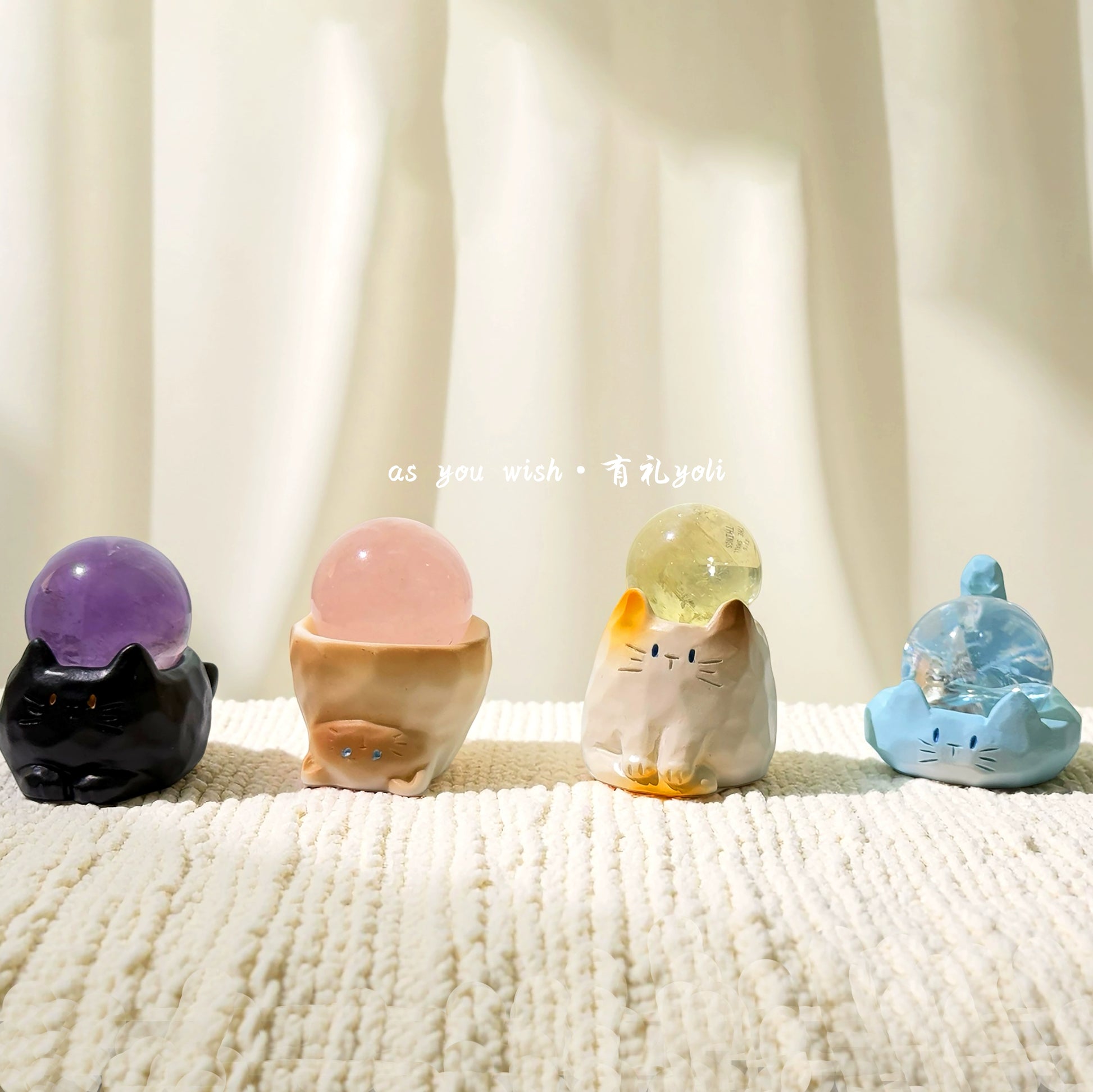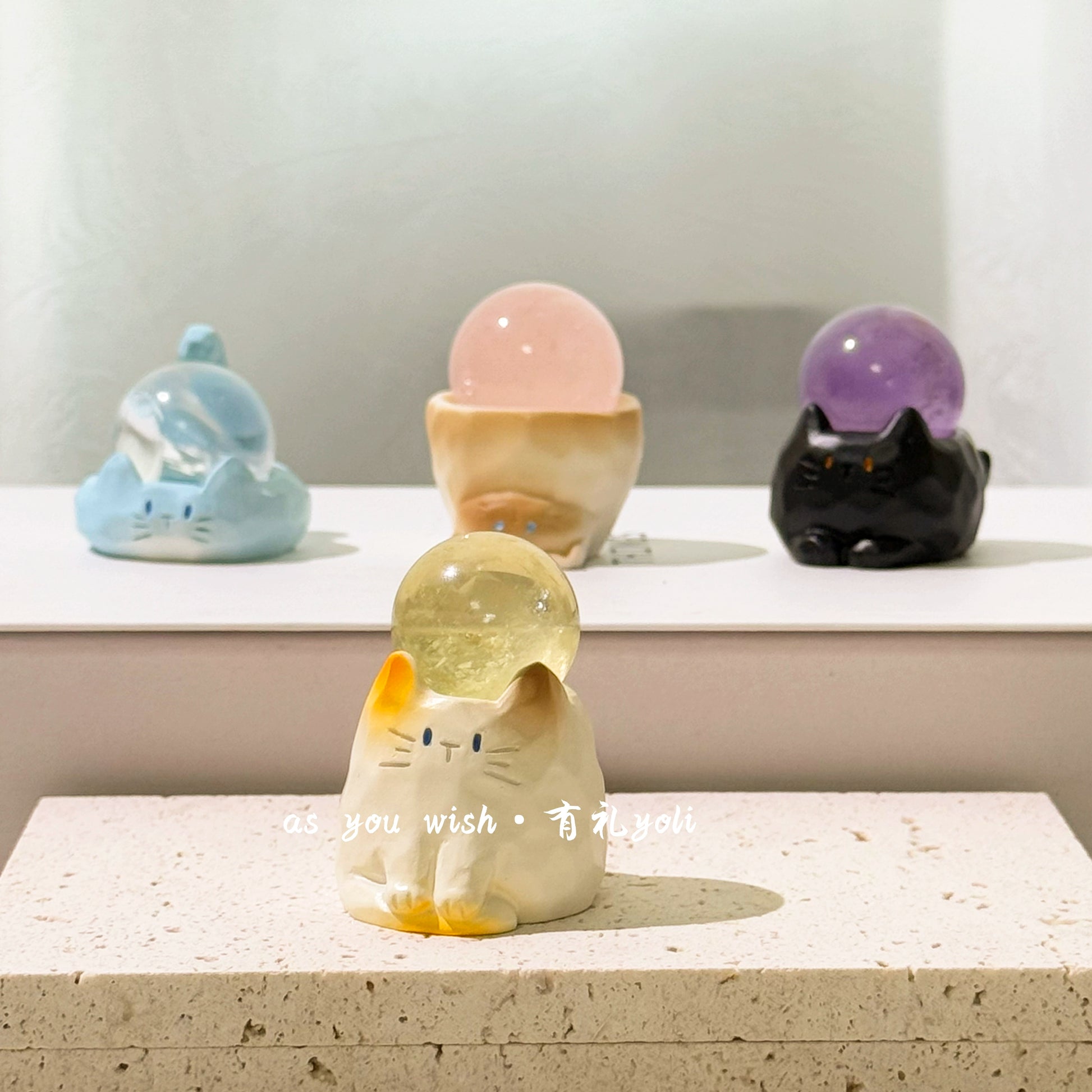 yoli有礼水晶球摆件猫咪治愈黄紫白粉水晶球办公桌面摆件节日礼物
